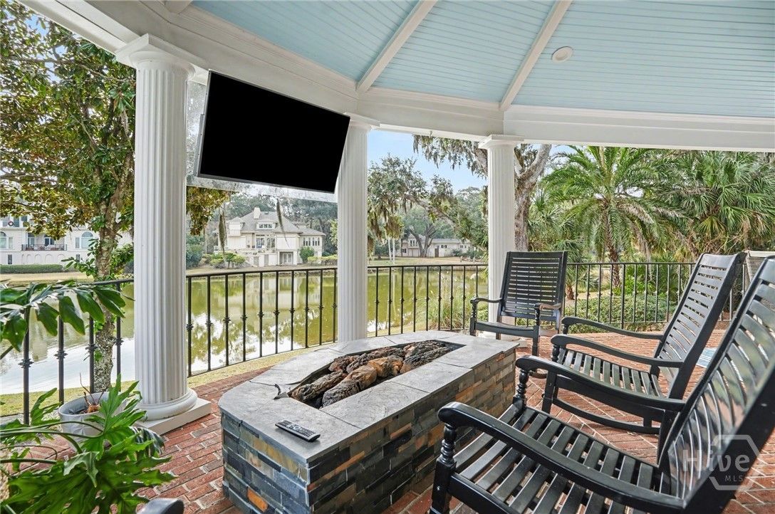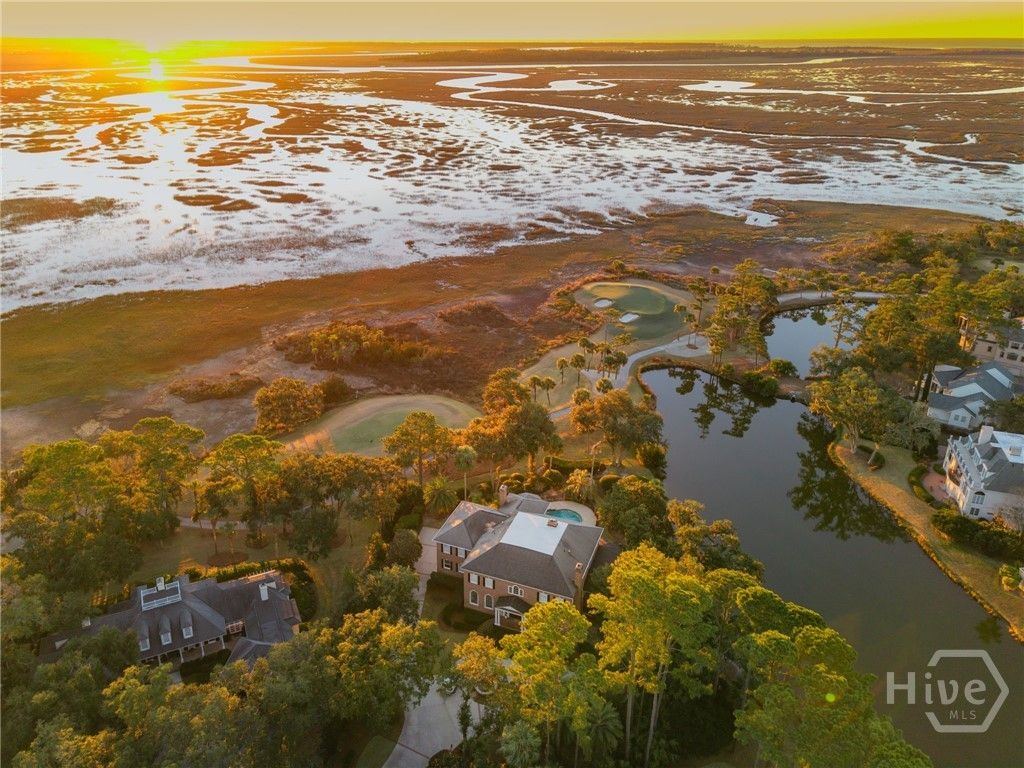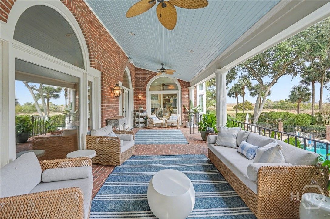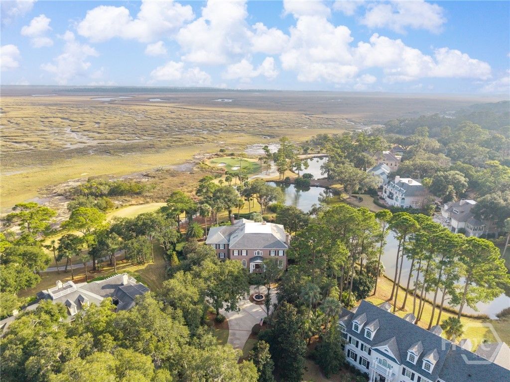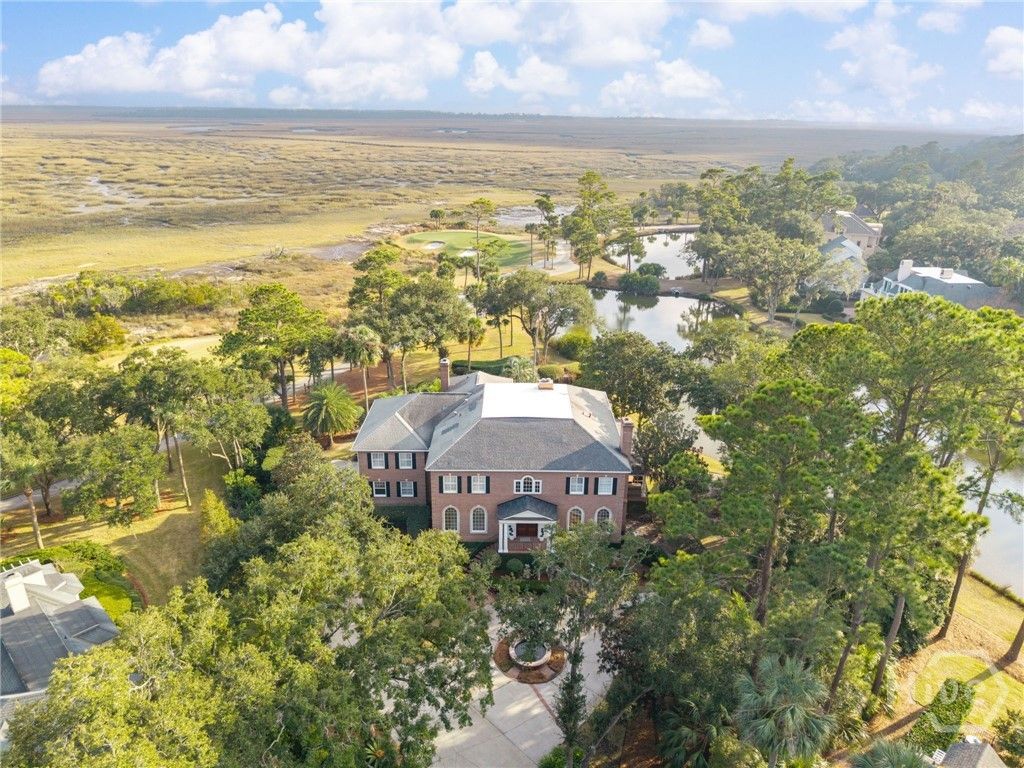 Midpoint Masterpiece — where mornings begin on the porch and evenings linger under the stars. This Georgian-style manor in Midpoint at The Landings blends timeless Olde Savannah charm with the ease of modern coastal living. Completely reimagined in 2023–2024 by respected builder Chris Koncul, the home reflects exceptional craftsmanship, comfort, and thoughtful design. A sweeping wraparound porch provides front-row views of Wassaw Island, Romerly Marsh, Palmetto Golf Course, and a peaceful lagoon—an inspiring backdrop for slow mornings, meaningful conversations, and golden-hour views. Outdoor living is central to the experience, featuring a heated private pool, gas fire pit for relaxed evenings and game nights, and an outdoor kitchen with grill and pizza oven, ideal for effortless entertaining. Inside, the home feels warm, refined, and beautifully curated. Designer details include a custom Julia McGahee mural, Philip Jeffries wallpaper, statement lighting from Urban Electric Charleston, European white oak floors, and a chef’s kitchen equipped with Wolf and Sub-Zero appliances—spaces equally suited for daily living and memorable gatherings. The primary suite is a private retreat with fireplace, serene views, a spa-inspired bath, and an oversized hidden closet with center island. Four additional guest bedrooms, a bonus room, and generous living spaces provide flexibility, comfort, and privacy. Recent upgrades include new windows and front door, epoxied garage floors with new openers, and a new pool pump and heater, allowing you to move in and simply begin living. More than a home, this is an unhurried, welcoming lifestyle—unmistakably Savannah.