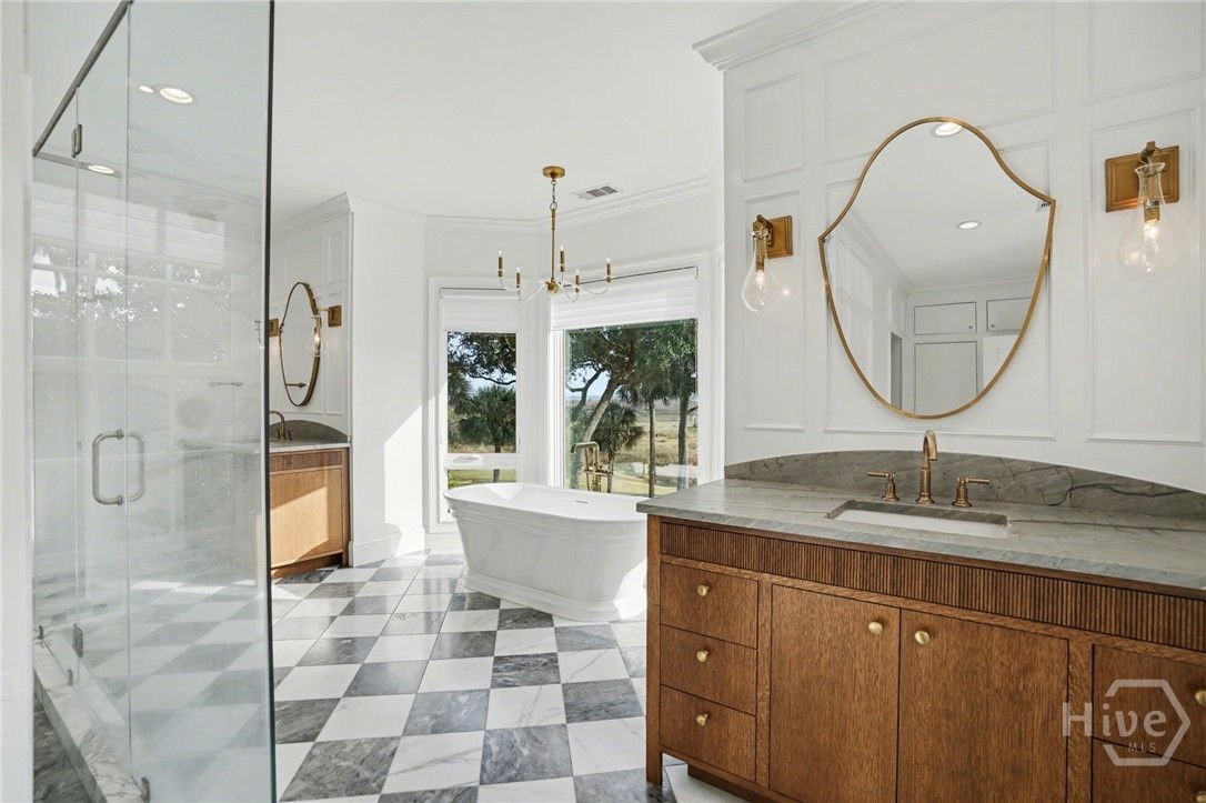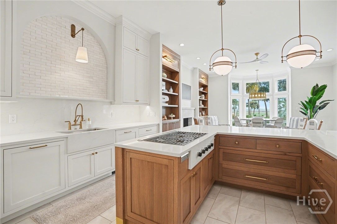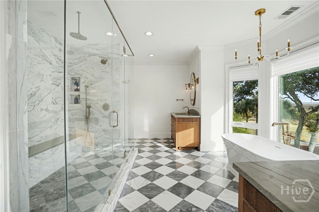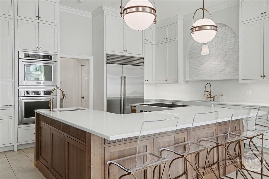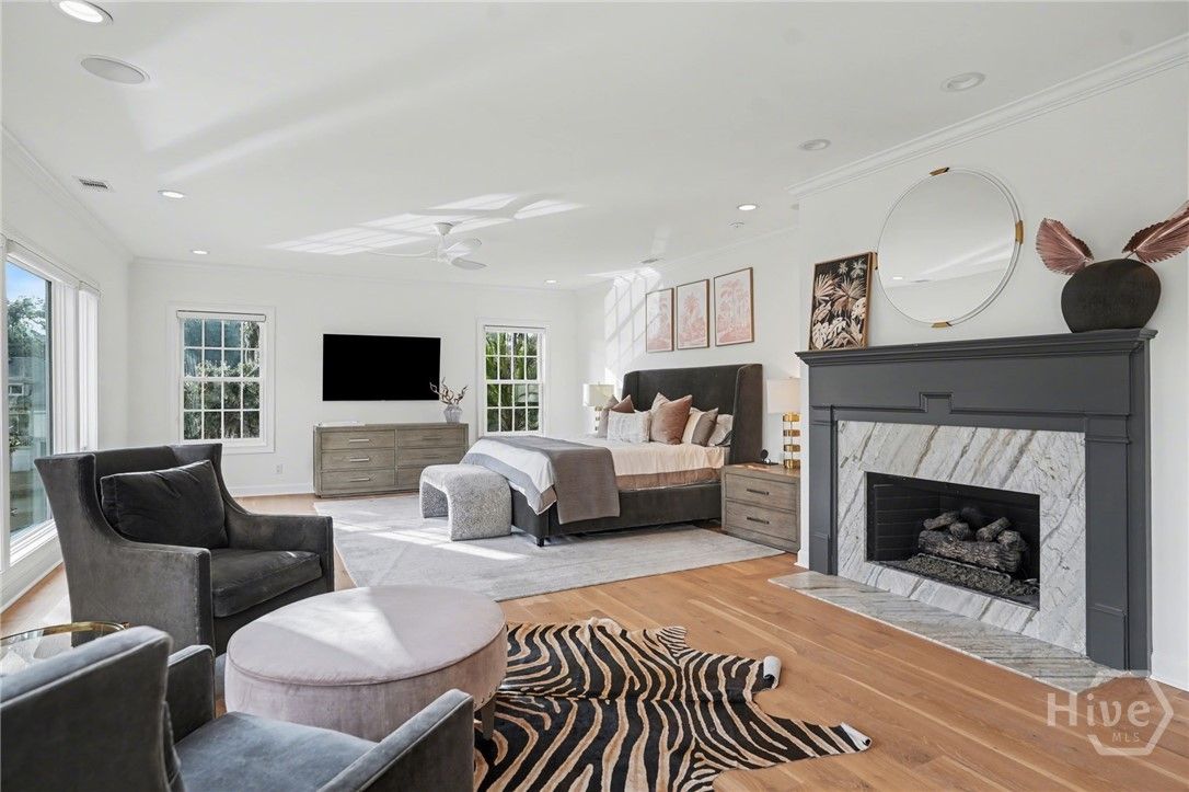 Midpoint Masterpiece — where mornings begin on the porch and evenings linger under the stars. This Georgian-style manor in Midpoint at The Landings blends timeless Olde Savannah charm with the ease of modern coastal living. Completely reimagined in 2023–2024 by respected builder Chris Koncul, the home reflects exceptional craftsmanship, comfort, and thoughtful design. A sweeping wraparound porch provides front-row views of Wassaw Island, Romerly Marsh, Palmetto Golf Course, and a peaceful lagoon—an inspiring backdrop for slow mornings, meaningful conversations, and golden-hour views. Outdoor living is central to the experience, featuring a heated private pool, gas fire pit for relaxed evenings and game nights, and an outdoor kitchen with grill and pizza oven, ideal for effortless entertaining. Inside, the home feels warm, refined, and beautifully curated. Designer details include a custom Julia McGahee mural, Philip Jeffries wallpaper, statement lighting from Urban Electric Charleston, European white oak floors, and a chef’s kitchen equipped with Wolf and Sub-Zero appliances—spaces equally suited for daily living and memorable gatherings. The primary suite is a private retreat with fireplace, serene views, a spa-inspired bath, and an oversized hidden closet with center island. Four additional guest bedrooms, a bonus room, and generous living spaces provide flexibility, comfort, and privacy. Recent upgrades include new windows and front door, epoxied garage floors with new openers, and a new pool pump and heater, allowing you to move in and simply begin living. More than a home, this is an unhurried, welcoming lifestyle—unmistakably Savannah.