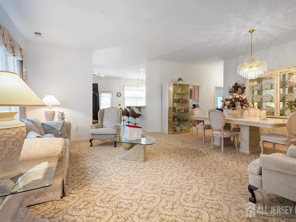 Elegant Del Mar ranch home in the desirable 55+ Adult Community of Spinnaker Pointe in the Parlin section of Sayreville. Original homeowners since 2005 this 3 bedroom 2 full bath home has been meticulously maintained. This spacious 2117' home offers a welcoming grand foyer with double coat closet, large formal dining room, living room, family room with gas fireplace. Open concept eat-in kitchen with breakfast bar, oak cabinetry, walk-in pantry, tile flooring, recessed lighting, glass display cabinet, gas range, dishwasher & refrigerator. Patio with electric awning to allow enjoyment of the serene wooded setting. Primary bedroom has 2 walk-in closets and ensuite full bathroom with double sinks, jetted tub and walk-in shower. Laundry room with washer/dryer included. 2 car garage with stairs to attic for storage. Gas forced hot air, Central Air Conditioning,Gas Hot Water heater. Professionally landscaped. The Adult Community offers a clubhouse with card/game room, conference room with kitchen, pool, shuffleboard & other activities. Conveniently located near the Morgan Marina, shopping, parks and all major transportation. This pristine home could be yours - call today! Showings begin Sat 9/27 at 12pm