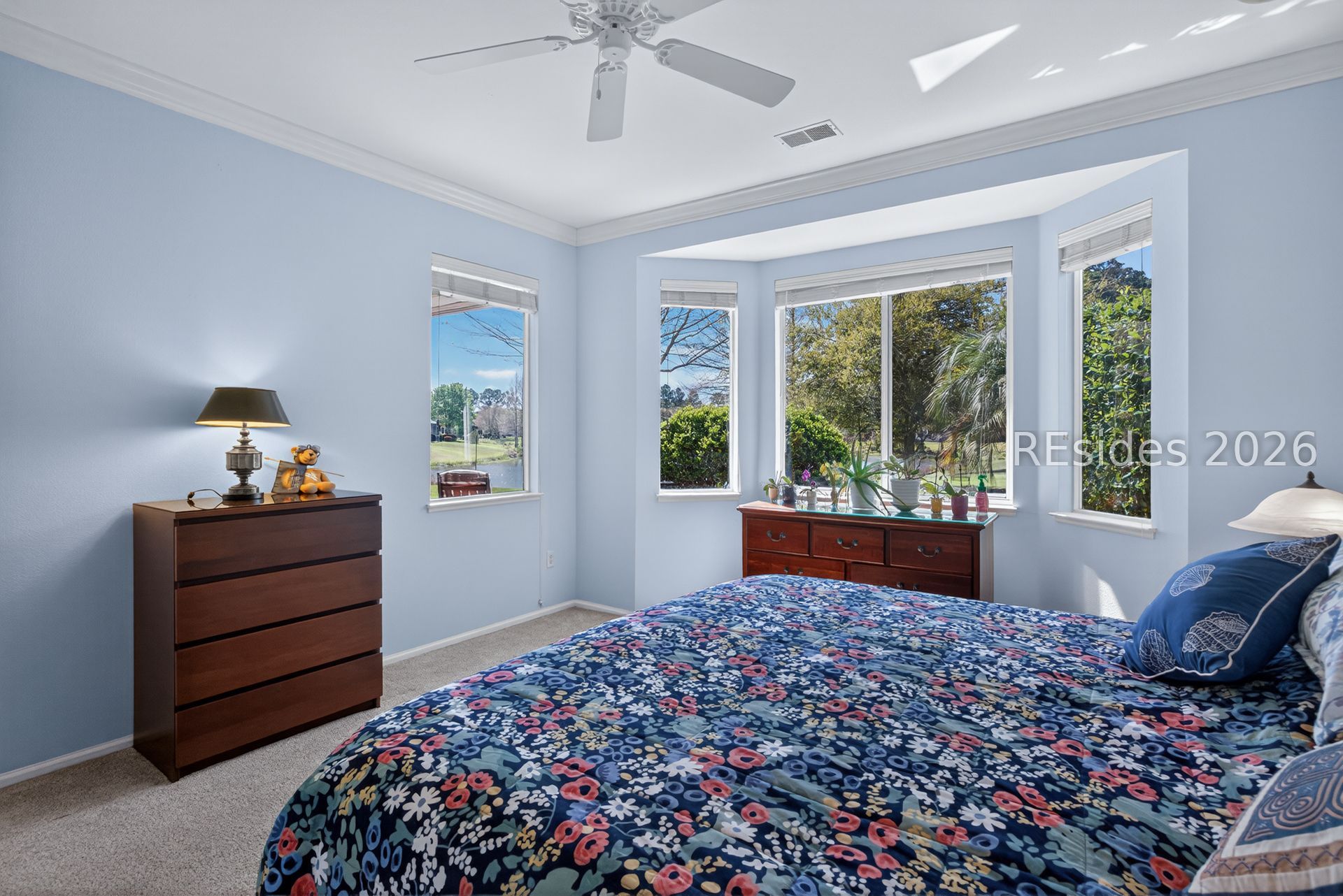 Welcome to this charming Cape Cod model in Sun City Hilton Head, offering 2 bedrooms and 2 bathrooms with thoughtful upgrades throughout. Enjoy serene lagoon views from the extended patio-perfect for relaxing or entertaining. Inside, natural light pours in through skylights, highlighting the elegant crown molding, integrated speaker system, and bright, open layout designed for easy living. The extended garage provides extra space for storage or hobbies, while the 2020 roof adds peace of mind. Experience the ideal blend of comfort, style, and low-maintenance living in one of Bluffton's most sought-after active adult communities.