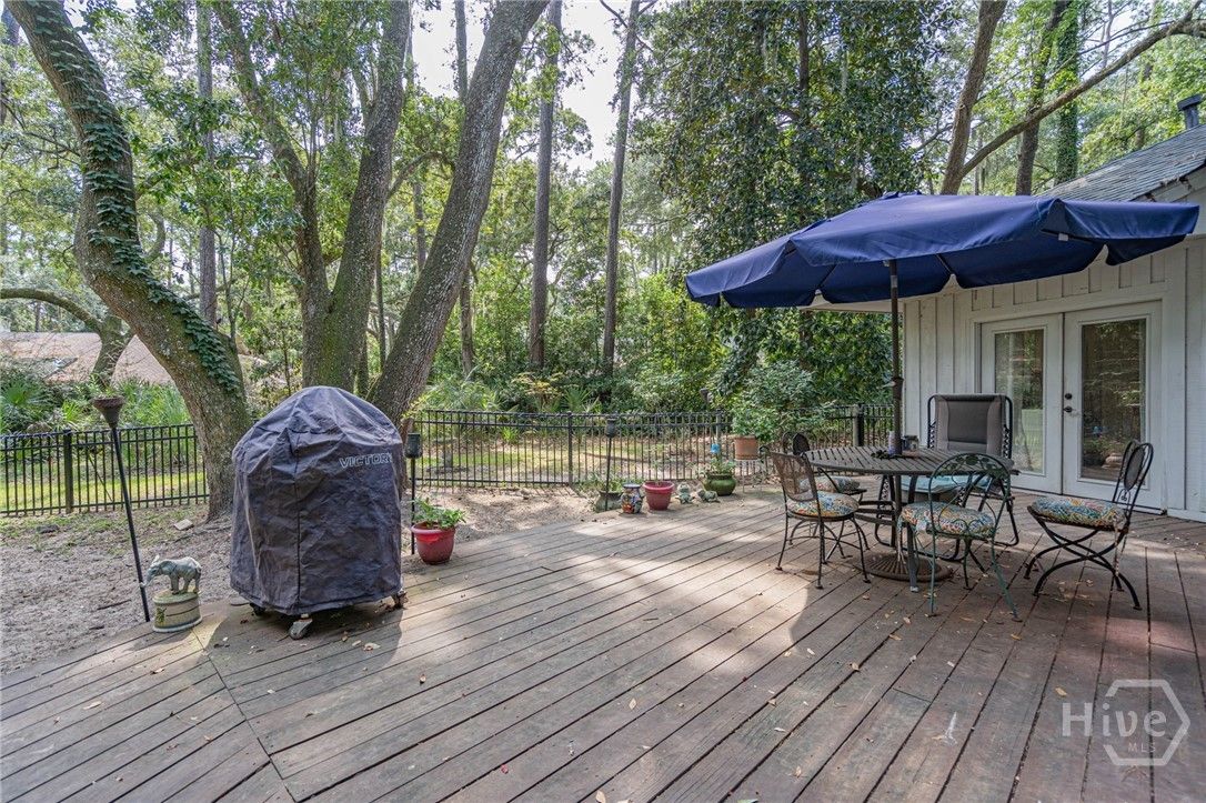 Discover Your Dream Home in The Landings Golf & Athletic Club! Nestled under a canopy of oaks in Marshwood, this move-in-ready home blends timeless charm with modern updates. A grand double-door entry opens to a bright foyer with a wall of windows overlooking the private, fenced backyard. The open layout connects the living room, dining area, kitchen, and a flexible bonus room—ideal as a sunroom or office. Upgrades include travertine floors, granite counters, stainless appliances, and a cozy fireplace. Brand new hardwood floors throughput the home.Enjoy the outdoors from the spacious deck or new screened porch. Recent updates: garage door/opener, kitchen, windows, plantation shutters, and landscaping. The two-car garage includes a golf cart bay. Roof is under 5 years old. Located in Flood Zone X for peace of mind. The Landings offers 150+ lagoons, two marinas, a dog park, and miles of walking/biking trails. Optional memberships grant access to golf, tennis, fitness, dining, and more.