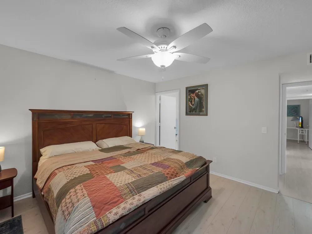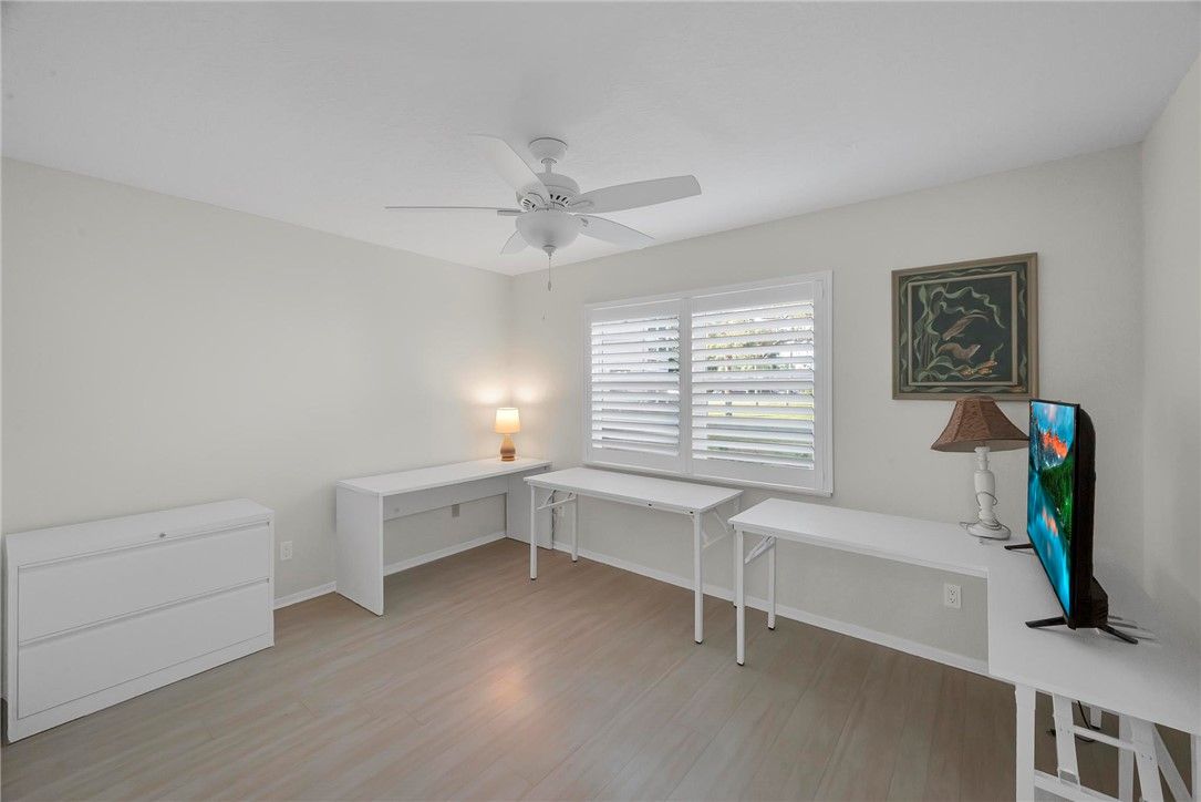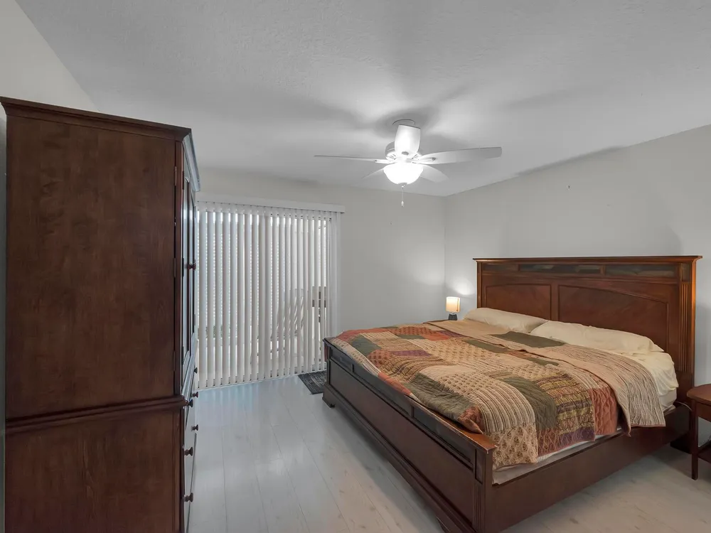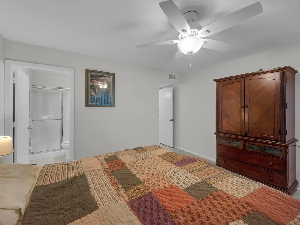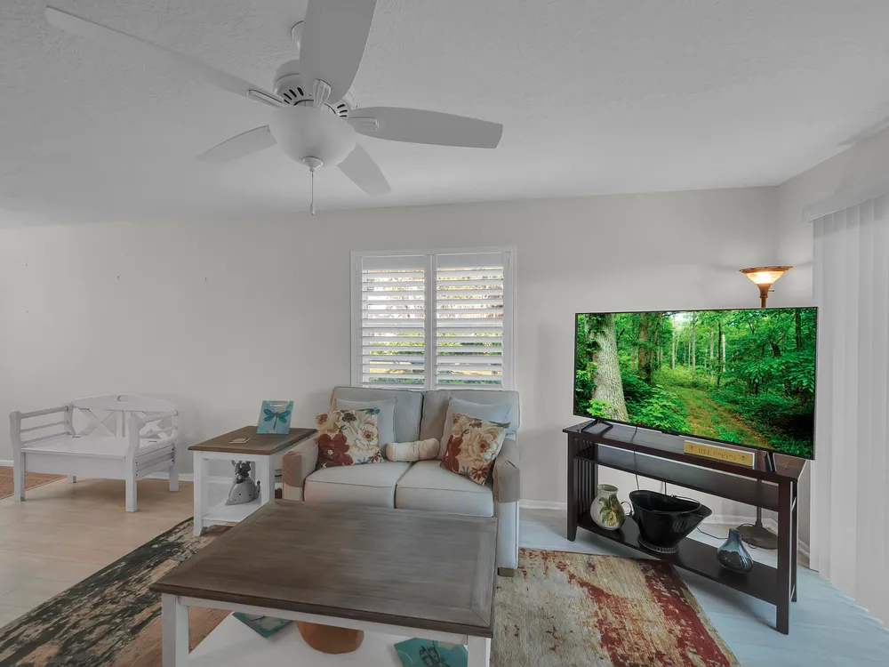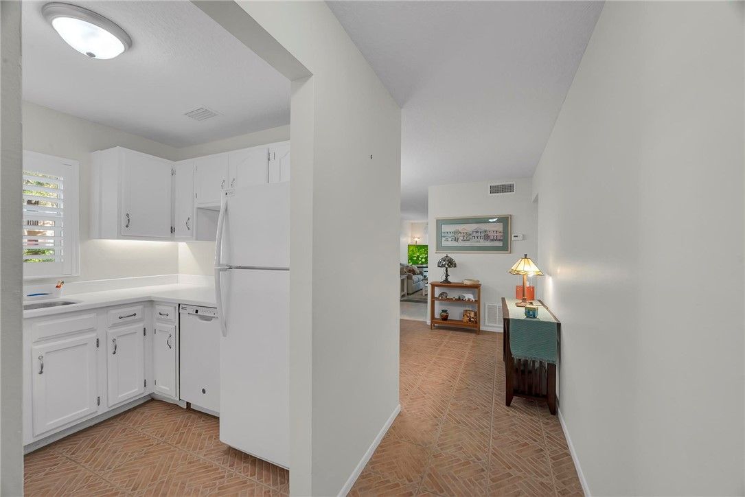 Move-in ready 2-bedroom, 2-bathroom condo featuring the popular Split Model Plan B for added privacy and comfort. This first-floor unit boasts durable tile and laminate flooring with some recent updates. There is plenty of natural light and privacy with stylish plantation shutters. Enjoy the peace of mind provided by impact windows throughout. The condo includes a washer and dryer for your convenience and is ideally located close to the entrance/exit on Indian River Blvd, just minutes from the beach and shopping. A perfect blend of comfort, convenience, and location!