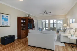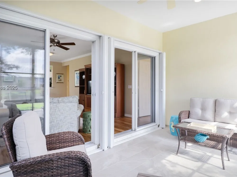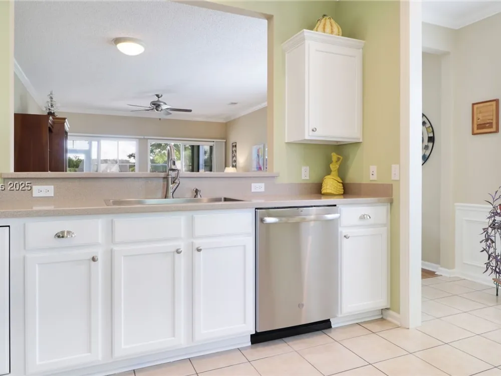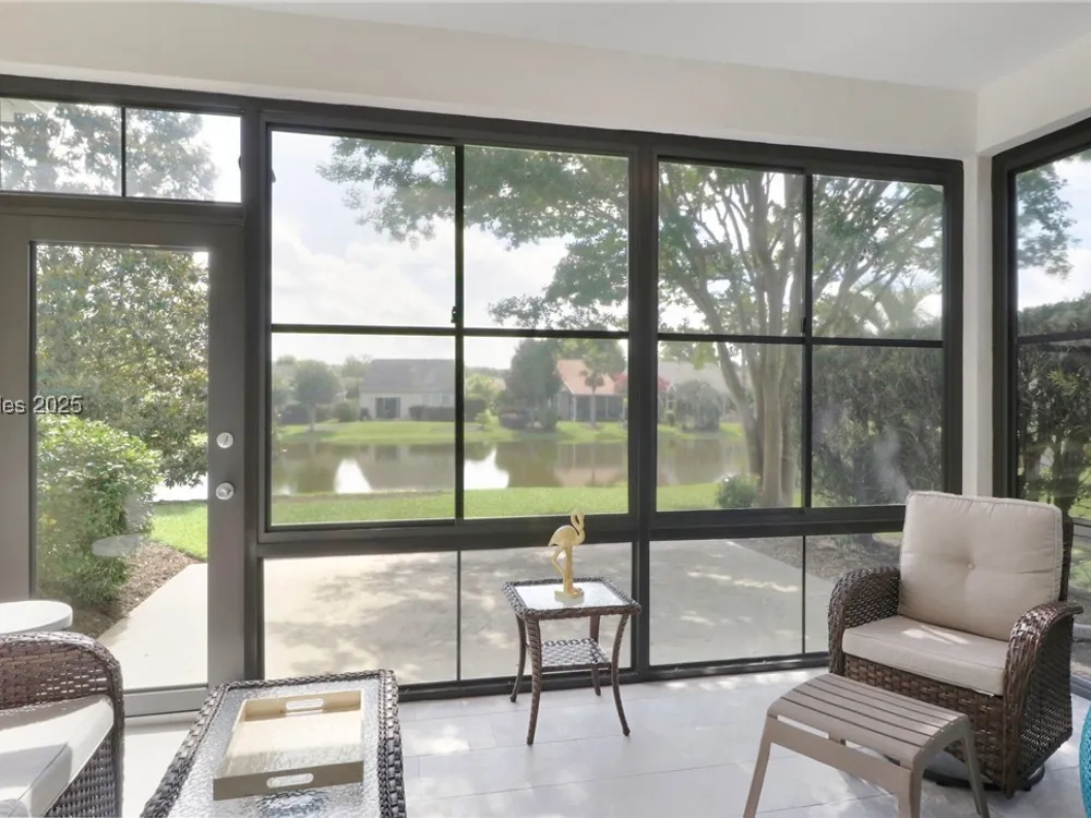 Beautiful Heather model with stunning lagoon views! This 2-bed, 2-bath home plus den features an enclosed porch with operable door, vinyl/screened windows, custom tile floor, and a rear patio perfect for relaxing. Updates include new roof (2022), gutters (2024), water heater (2022), & HVAC (2025). Owner’s suite has bay window, 4-ft garage extension, attic storage, & tech shield. Upgraded LVP throughout with tile in kitchen, baths, & foyer. Eat in Kitchen features Corian counters, SS appliances, gas stove, upgraded sink, & white cabinets. Crown molding & ceiling fans. One of the best lagoon views in Sun City—don’t miss this exceptional home!