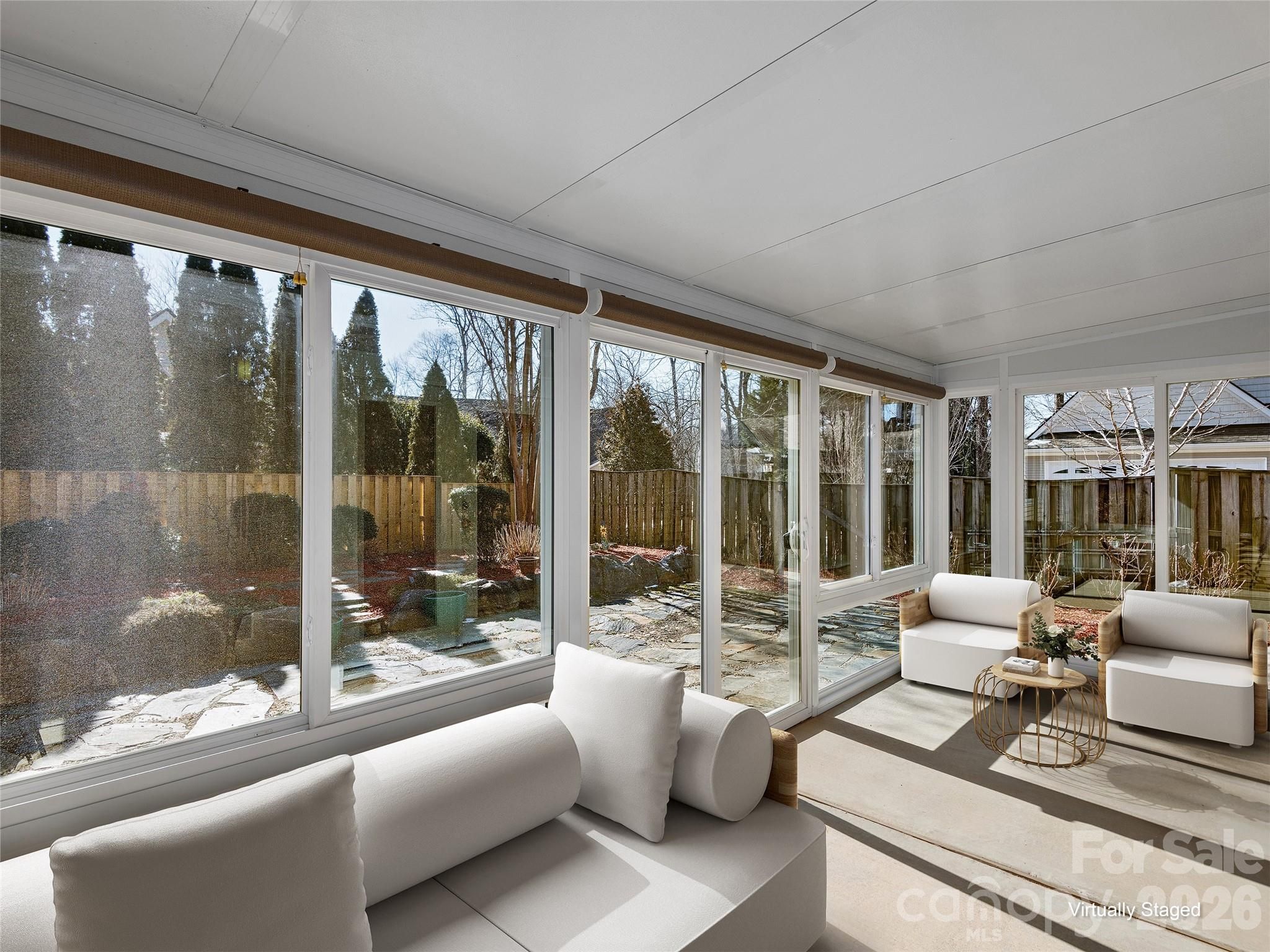 Impressive remodel with quality finishes throughout this 3 bedroom, 3 bath end-unit situated on a desirable corner lot. This beautifully updated home features a fenced backyard with mature perennials and a double garage with epoxy floors. Inside, you?ll find new wood flooring, fresh paint, skylights, and stylish updated lighting. The custom kitchen showcases quartz countertops, tile backsplash, under-cabinet lighting, soft-close cabinetry, and all new appliances. The sunroom, complete with heat and air, provides year-round enjoyment, while the new gas fireplace with a live-edge mantel adds warmth and character to the main living space.The main-level primary suite offers custom cabinetry and a stunning tiled shower. Upstairs, a second primary suite includes new carpet and LVP flooring, plus a versatile flex room ideal for a home office or den. Additional upgrades include a retractable patio awning and a tankless water heater.