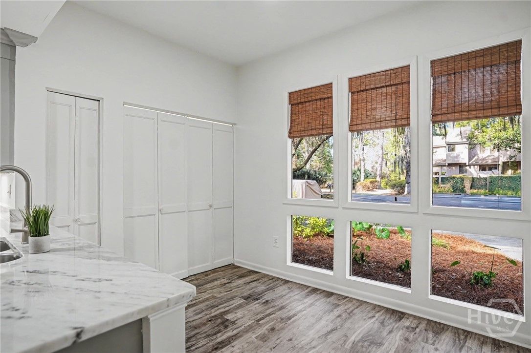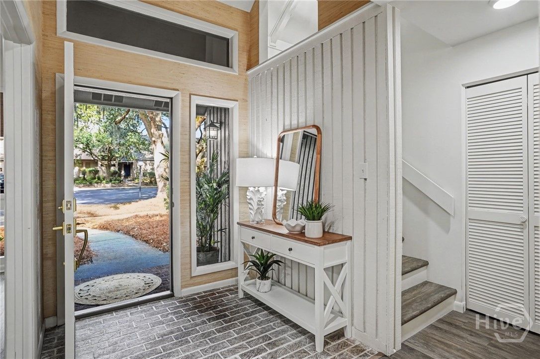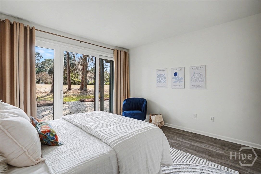 Welcome to effortless, maintenance-free living in The Landings on Skidaway Island, Savannah’s premier gated golf community. Perfectly situated on the 10th tee box of the Marshwood Golf Course, this updated townhome offers peaceful fairway views and exceptional convenience. Just steps from the front door, a golf cart path provides a quick shortcut to the Marshwood Club restaurant, golf course, and pool. Inside, the expansive sliding glass doors in both bedrooms and the main living area fill the home with natural light and showcase the lush green backdrop framed by live oaks and pines, making it a joy to relax or watch golfers tee off from your own backyard. The vaulted great room feels warm, refined, and inviting. This 2-bedroom, 2-bath residence features two spacious primary-sized suites, each with its own ensuite bath. The townhome offers multiple generously sized closets throughout, all enhanced with upgraded lighting and custom-designed shelving to maximize functionality and organization. Additionally, a substantial upstairs flex room provides the perfect space for storage, a private office, or a creative studio. The home has been thoughtfully refreshed with meaningful updates, including two new glass sliding doors downstairs, HVAC systems approximately five years old, a washer and dryer just two years old, and fresh interior paint. All appliances convey, including the mounted television in the living room. Located within its own HOA enclave inside The Landings, the association provides property, liability, and flood insurance, along with exterior maintenance, roof repair and replacement, and yard care—creating a lifestyle of ease. The community also offers scenic walking trails along the marsh, and the Landings Harbor Marina is just minutes away. The Landings offers access to six golf courses, a fitness center, and multiple pools, all within a private coastal community just minutes from historic Savannah. Peaceful, refined, and genuinely move-in ready.