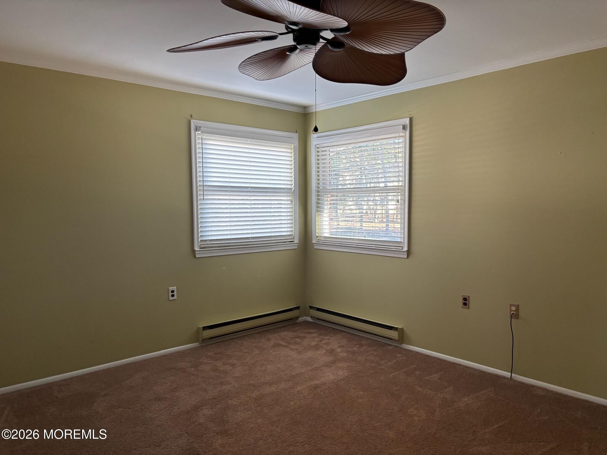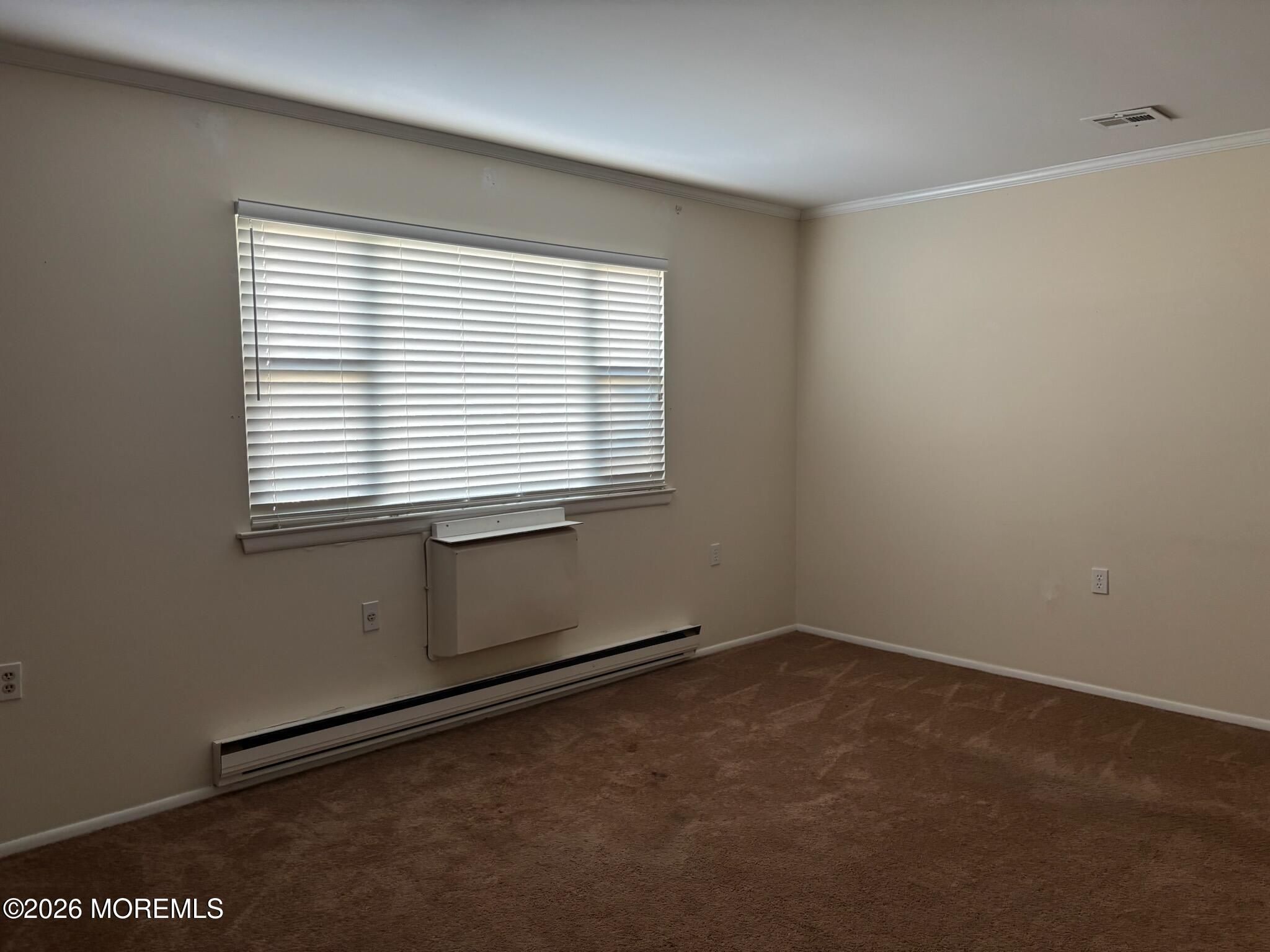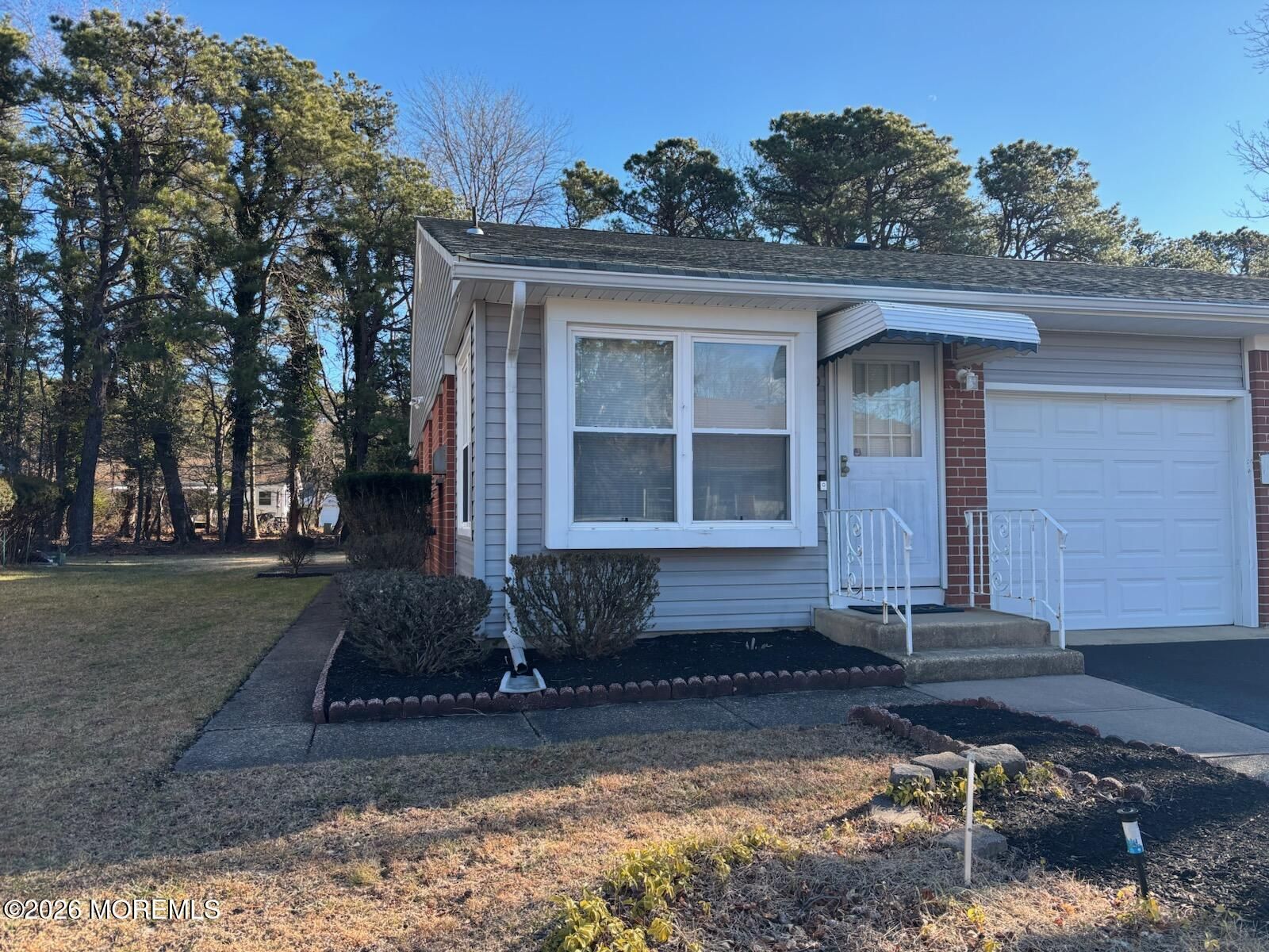 Welcome to this 55+ adult community in the highly active Crestwood Village Two. This well-maintained residence offers comfort, convenience, and privacy. The home features newer central air and an inviting sunroom, perfect for enjoying year-round natural light. Inside, you'll find an updated bathroom with a large walk-in shower stall and modern vanity. The eat-in kitchen offers plenty of cabinet space and is accented by beautiful, wooded shutters, creating a warm and welcoming atmosphere. Step outside to your private wooded backyard, an ideal setting to relax and enjoy the outdoors. Conveniently located close to shopping and the clubhouse, this home has been lovingly cared for, and it truly shows. The maintenance fee includes taxes, roof and more. Come see your new home today!