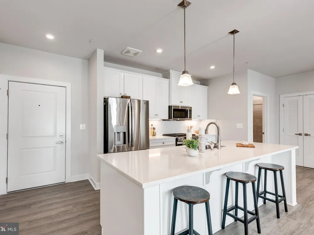*Welcome to this like-new 2-bedroom, 2 full bath top-level condo in the rarely available 55+ community of Liberty Place*This immaculate home offers the perfect blend of modern updates, privacy, & low-maintenance living—all just minutes from Eldersburg's best shopping, dining, & conveniences*Step inside to discover a spacious open-concept layout designed for today’s lifestyle*The gourmet kitchen features quartz countertops, natural gas cooking, a custom tile backsplash, large center island, brand-new stainless steel appliances, & wide-plank luxury vinyl flooring that continues throughout the main living areas*The kitchen flows seamlessly into the bright living & dining spaces—perfect for entertaining or everyday comfort*Enjoy peaceful mornings or relaxing evenings from your private balcony, offering scenic views & a tranquil setting*The primary suite is a true retreat with a luxurious en-suite bath featuring dual sinks, ceramic tile flooring, a tub/shower combo, & a generous walk-in closet*A second carpeted bedroom is ideal for guests, a home office, or hobby space, with an adjacent full bath that also includes quartz countertops & a full tub/shower*Additional highlights include in-unit front-loading laundry, recessed lighting, multiple storage closets, energy-efficient systems, & dedicated parking with guest spots nearby.*The building features a secure entrance, elevator access, & beautifully maintained common areas*Enjoy worry-free living with an HOA that covers exterior maintenance, snow removal, water, trash, & more*Liberty Place is the perfect choice for those seeking a move-in ready, low-maintenance lifestyle in a new vibrant 55+ community*