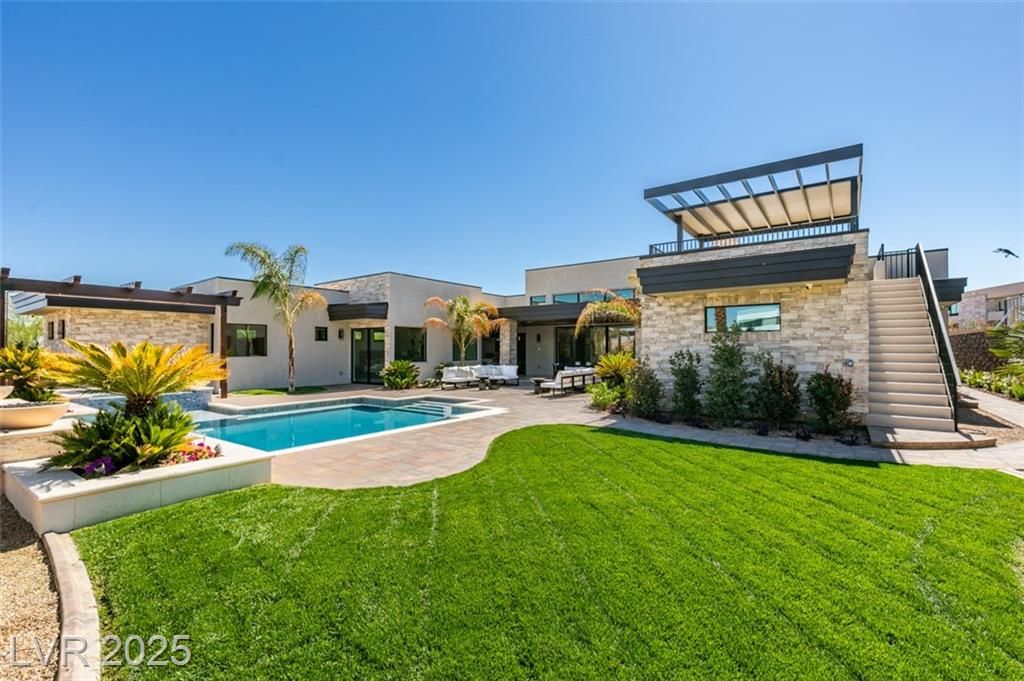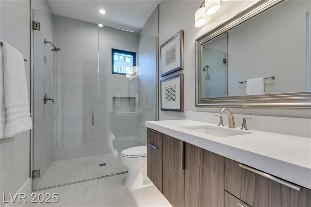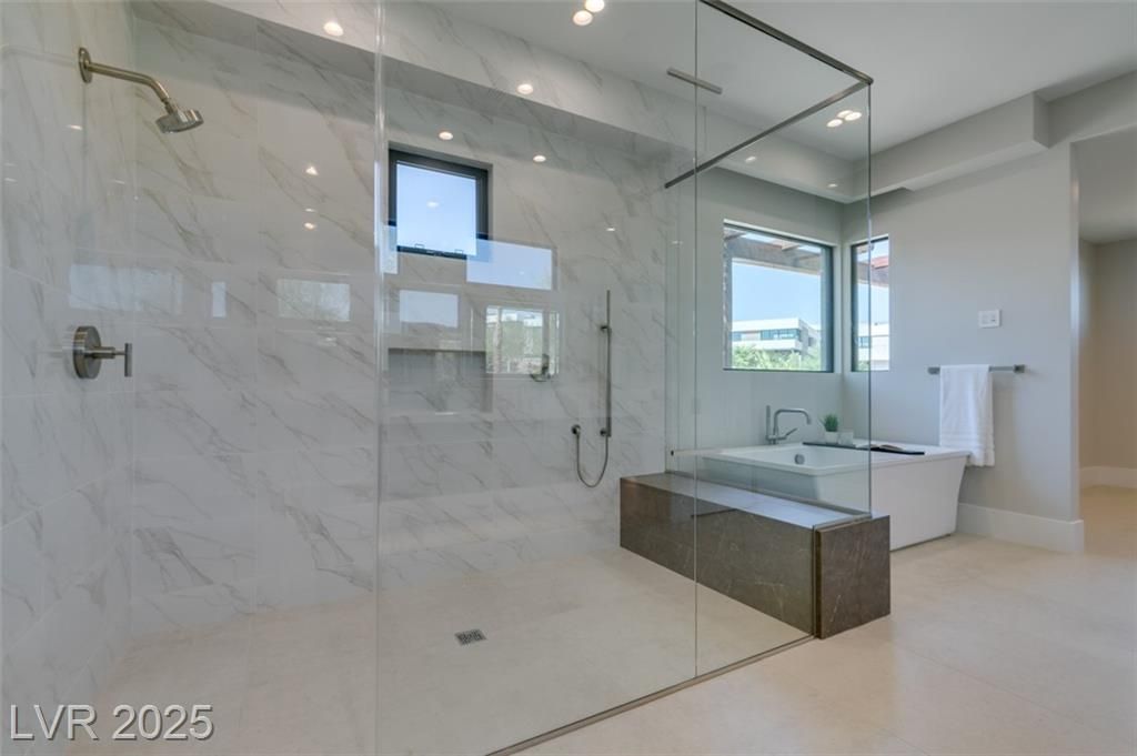 Discover the perfect blend of luxury and wellness in this exquisite 4-bedroom, 4.5-bath home in the gated North Shore community of Lake Las Vegas. Designed for healthy living, it features a private gym/health room off the primary suite and an outdoor shower, plus plumbing for a refreshing cold plunge. Unwind in the primary suite's spa-inspired bath with a large shower, free-standing tub, and his-and-hers toilet rooms. The chef's kitchen is equipped with premium LG Signature appliances. Enjoy the rooftop deck with mountain and partial lake views, or relax by the pool/spa with a handcrafted waterfall. The 4-car garage comes complete with electric vehicle plugs and epoxy floors, while the casita offers its own private garage access. Live in luxury and embrace wellness in this exceptional home!
