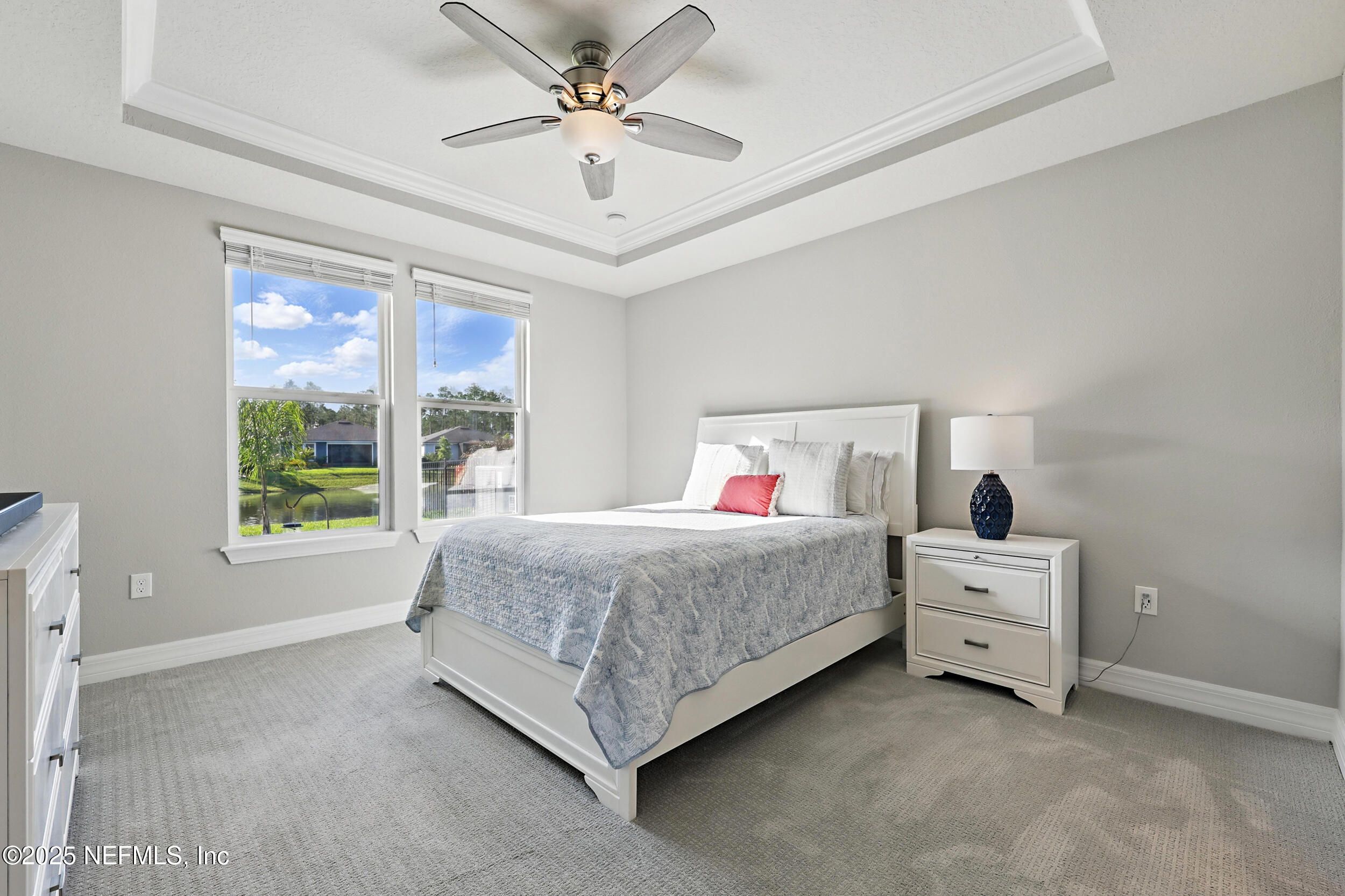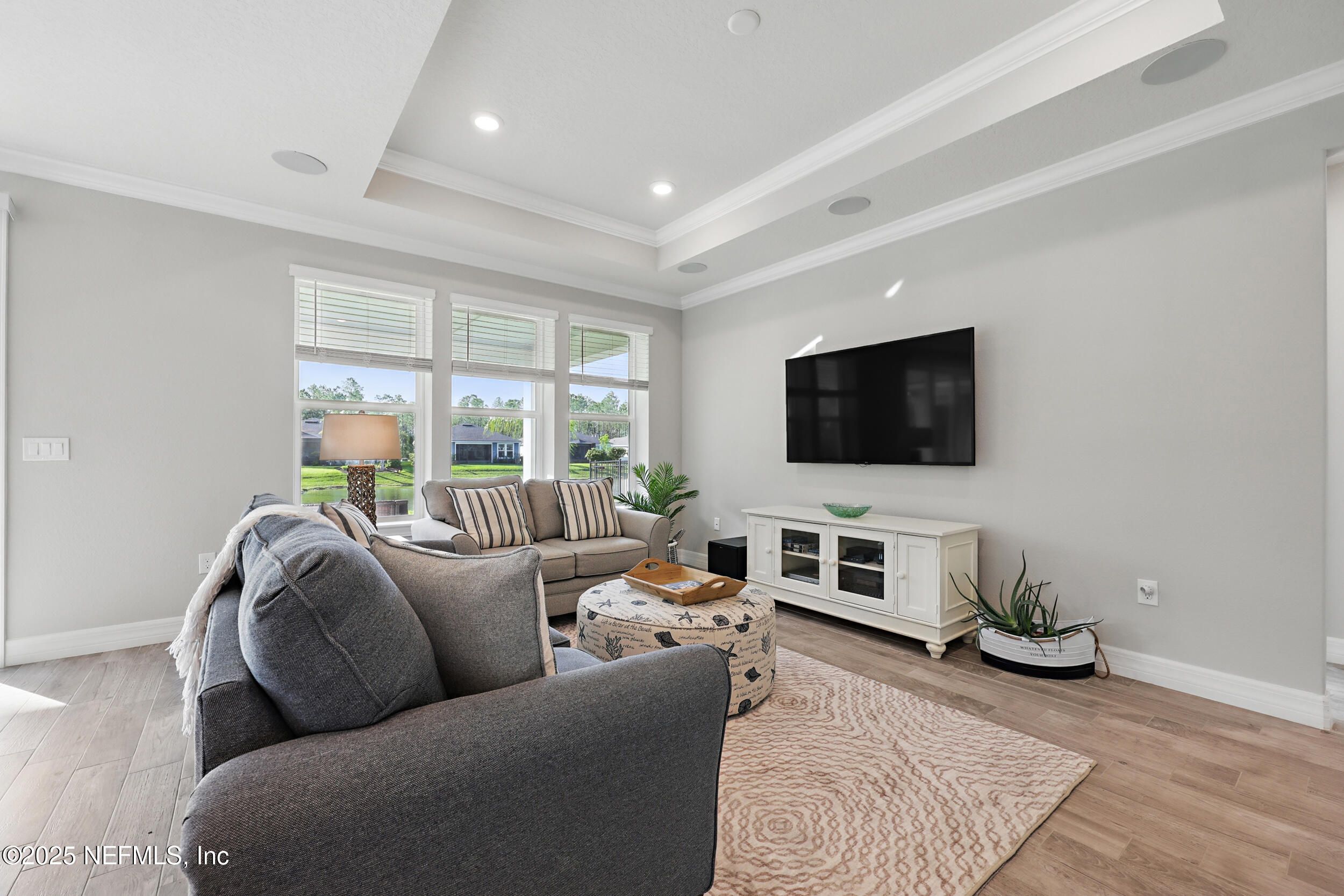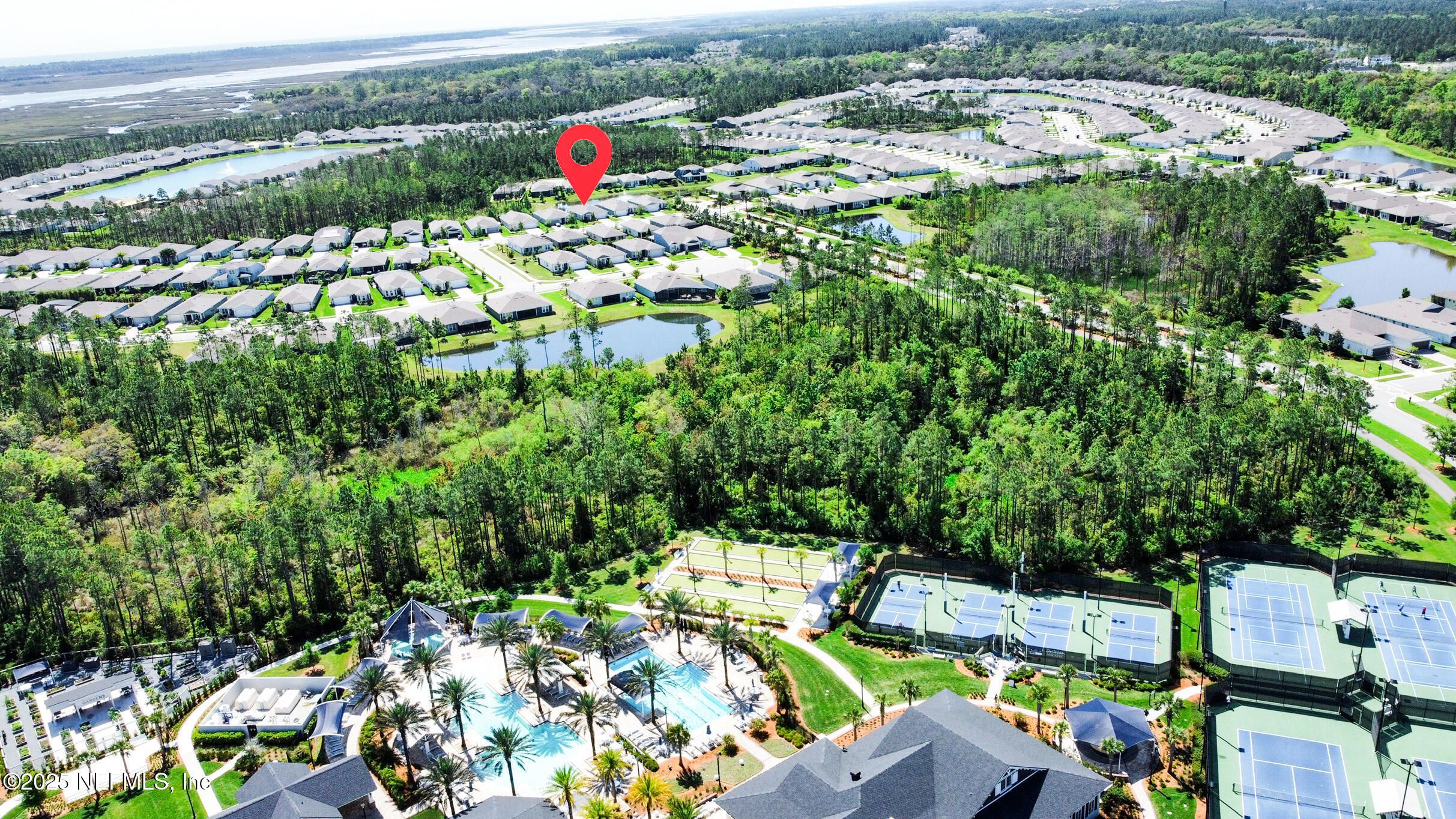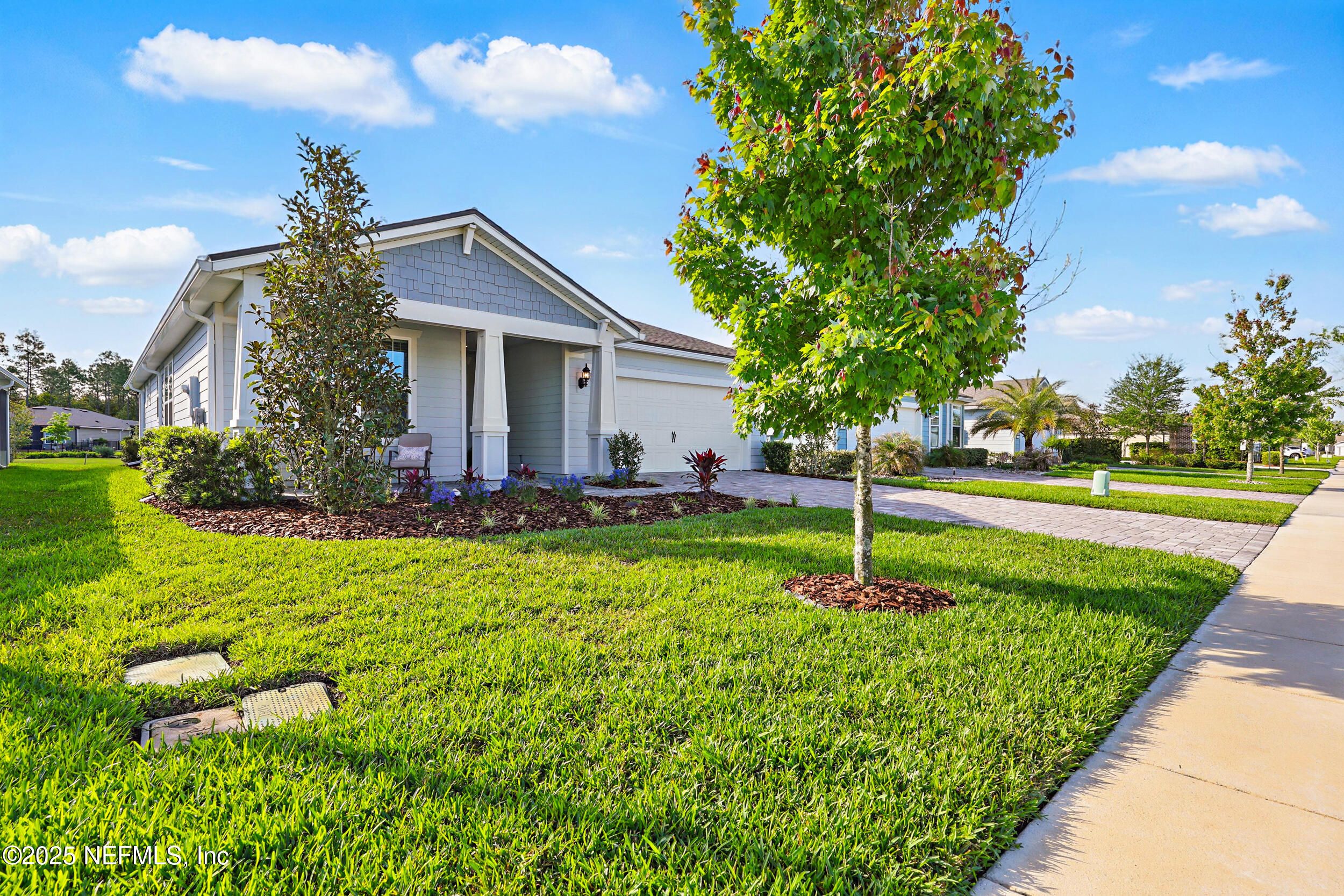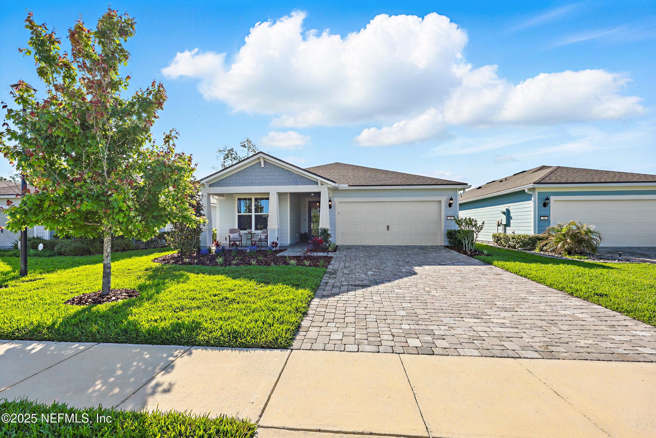 Welcome to Del Webb Nocatee and this beautifully upgraded 2-bedroom, 2-bathroom, 1,670 square foot home. Located walking distance to the Canopy Club, this home offers a serene water view and the perfect blend of comfort and elegance. As you enter, you'll be greeted by a bright and spacious open floor plan, with a stunning office that provides a peaceful space for work or relaxation. The upgraded kitchen is a chef's dream, featuring high-end finishes, modern appliances, and ample counter space. The Synergy Surround Sound System functions not only through the living area, but also on the back lanai. The inviting front porch provides a charming space to enjoy your morning coffee or relax with a good book while the back lanai looks over a beautiful pond and preserve. The Master Suite has been thoughtfully designed to overlook the water and offers a spa-like experience with luxurious frameless shower and sleek finishes. Live the lifestyle you've always dreamed of in the highly sought-after Del Webb community, offering resort-style pools and amenities and an active, vibrant atmosphere. There is a 24 hour guarded gate and a full activities calendar for both Del Webb and Nocatee. As a Nocatee resident, the community includes two waterparks, four other neighborhood pools, numerous playgrounds and dog parks, greenway walking trails, a kayak launch, fitness center, pickleball, tennis, and basketball courts, a full activity calendar, and is fully golf cart accessible. Plus, you're only minutes away from the stunning beaches of Ponte Vedra, allowing you to enjoy the Florida sunshine whenever you wish.