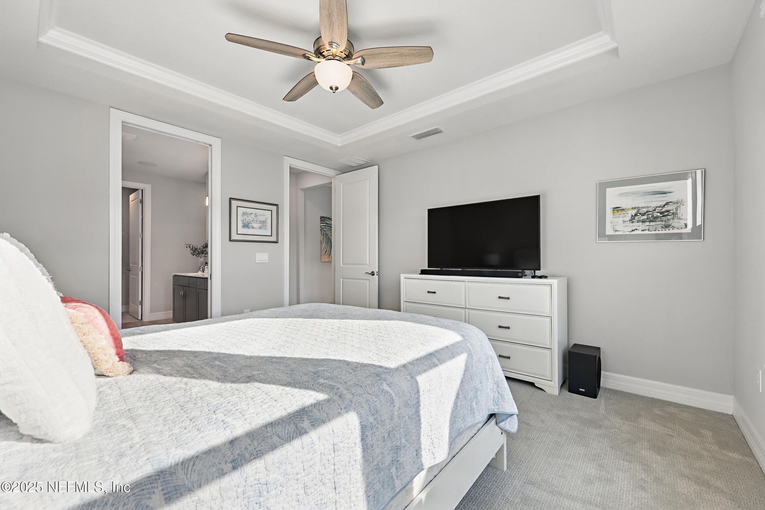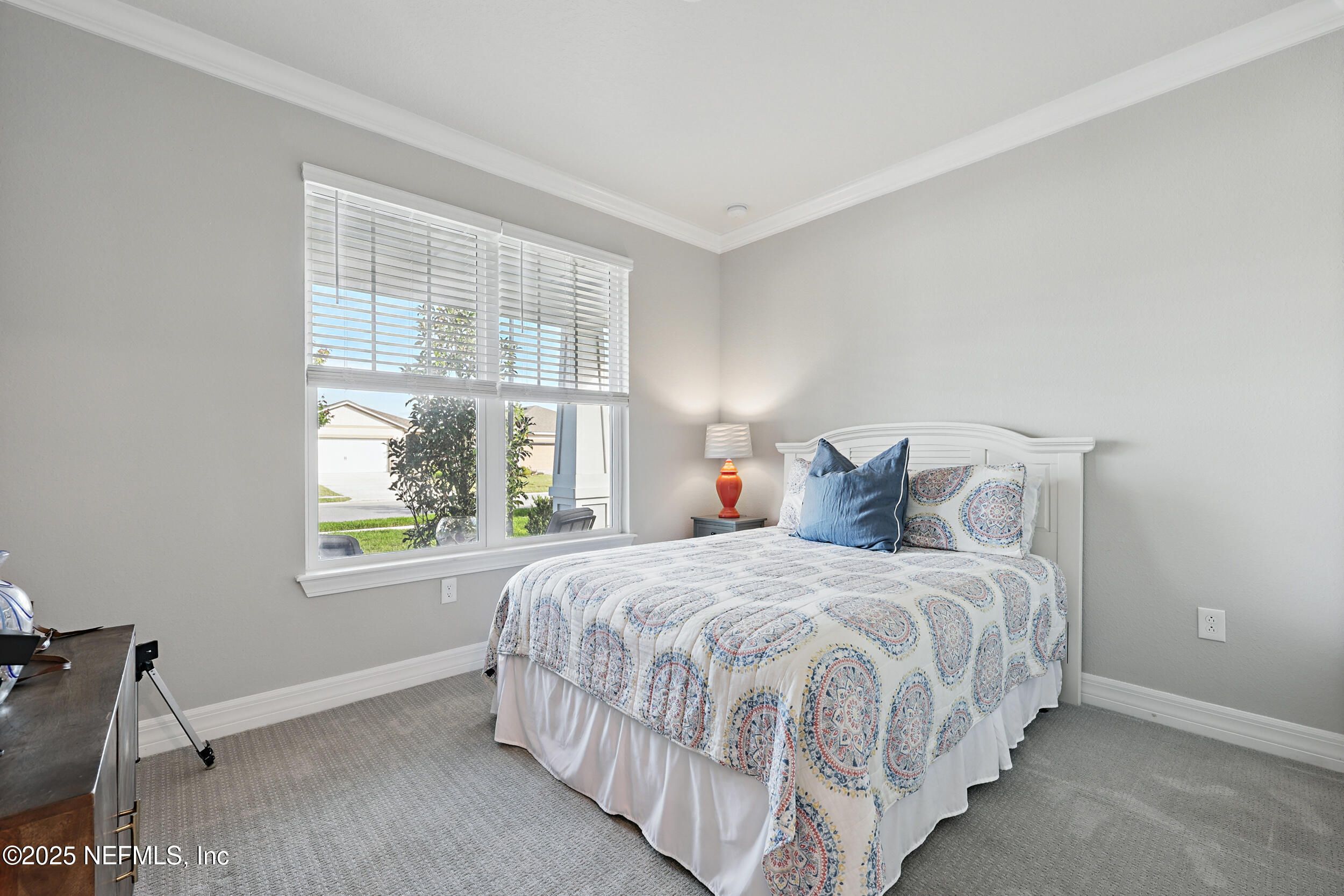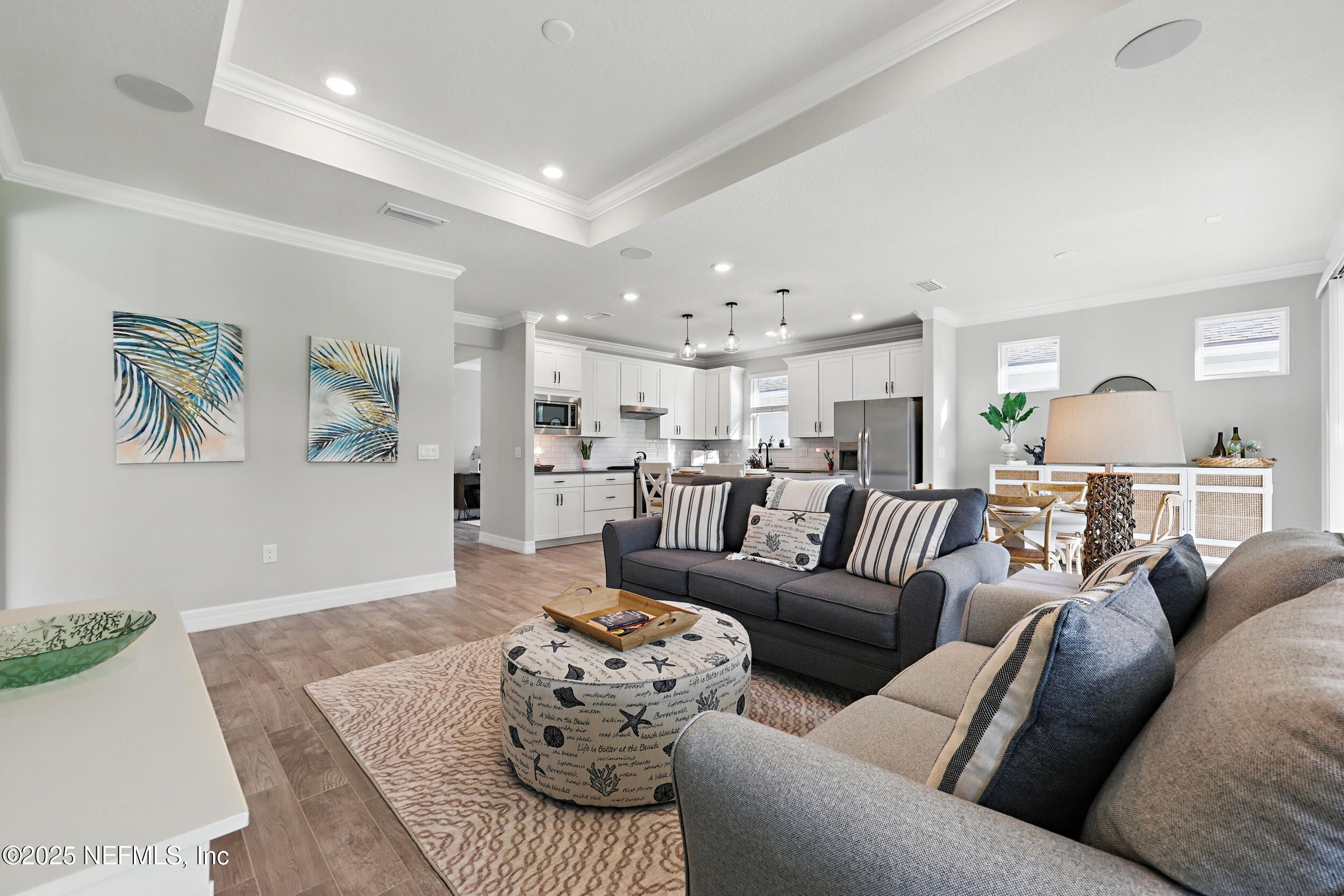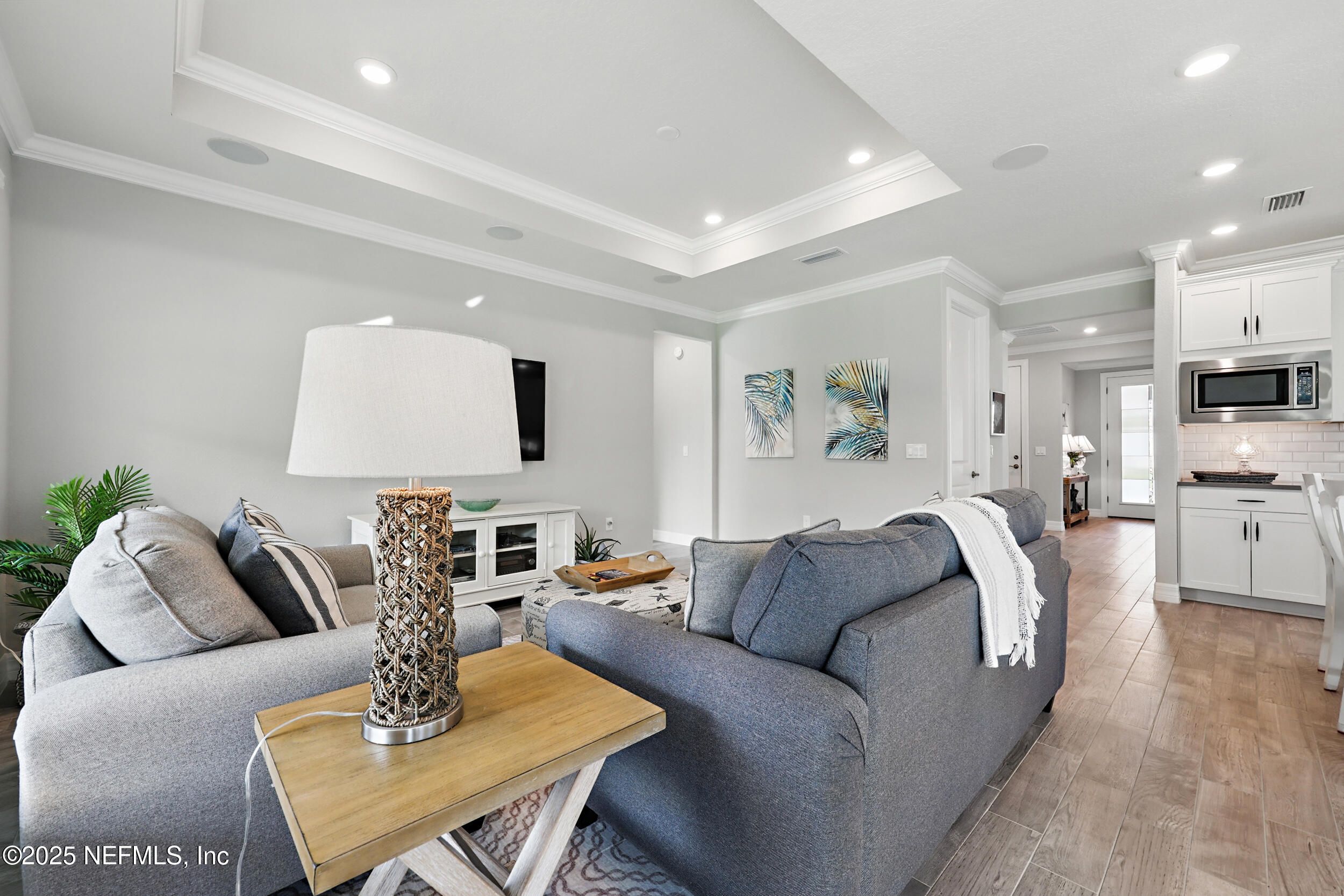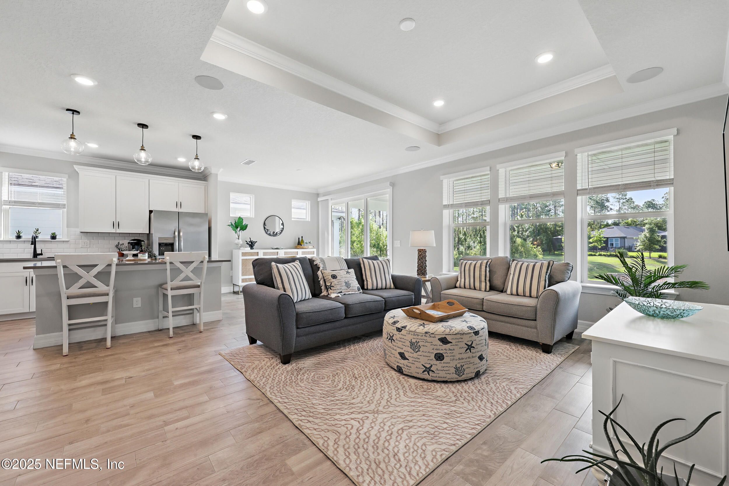Welcome to Del Webb Nocatee and this beautifully upgraded 2-bedroom, 2-bathroom, 1,670 square foot home. Located walking distance to the Canopy Club, this home offers a serene water view and the perfect blend of comfort and elegance. As you enter, you'll be greeted by a bright and spacious open floor plan, with a stunning office that provides a peaceful space for work or relaxation. The upgraded kitchen is a chef's dream, featuring high-end finishes, modern appliances, and ample counter space. The Synergy Surround Sound System functions not only through the living area, but also on the back lanai. The inviting front porch provides a charming space to enjoy your morning coffee or relax with a good book while the back lanai looks over a beautiful pond and preserve. The Master Suite has been thoughtfully designed to overlook the water and offers a spa-like experience with luxurious frameless shower and sleek finishes. Live the lifestyle you've always dreamed of in the highly sought-after Del Webb community, offering resort-style pools and amenities and an active, vibrant atmosphere. There is a 24 hour guarded gate and a full activities calendar for both Del Webb and Nocatee. As a Nocatee resident, the community includes two waterparks, four other neighborhood pools, numerous playgrounds and dog parks, greenway walking trails, a kayak launch, fitness center, pickleball, tennis, and basketball courts, a full activity calendar, and is fully golf cart accessible. Plus, you're only minutes away from the stunning beaches of Ponte Vedra, allowing you to enjoy the Florida sunshine whenever you wish.