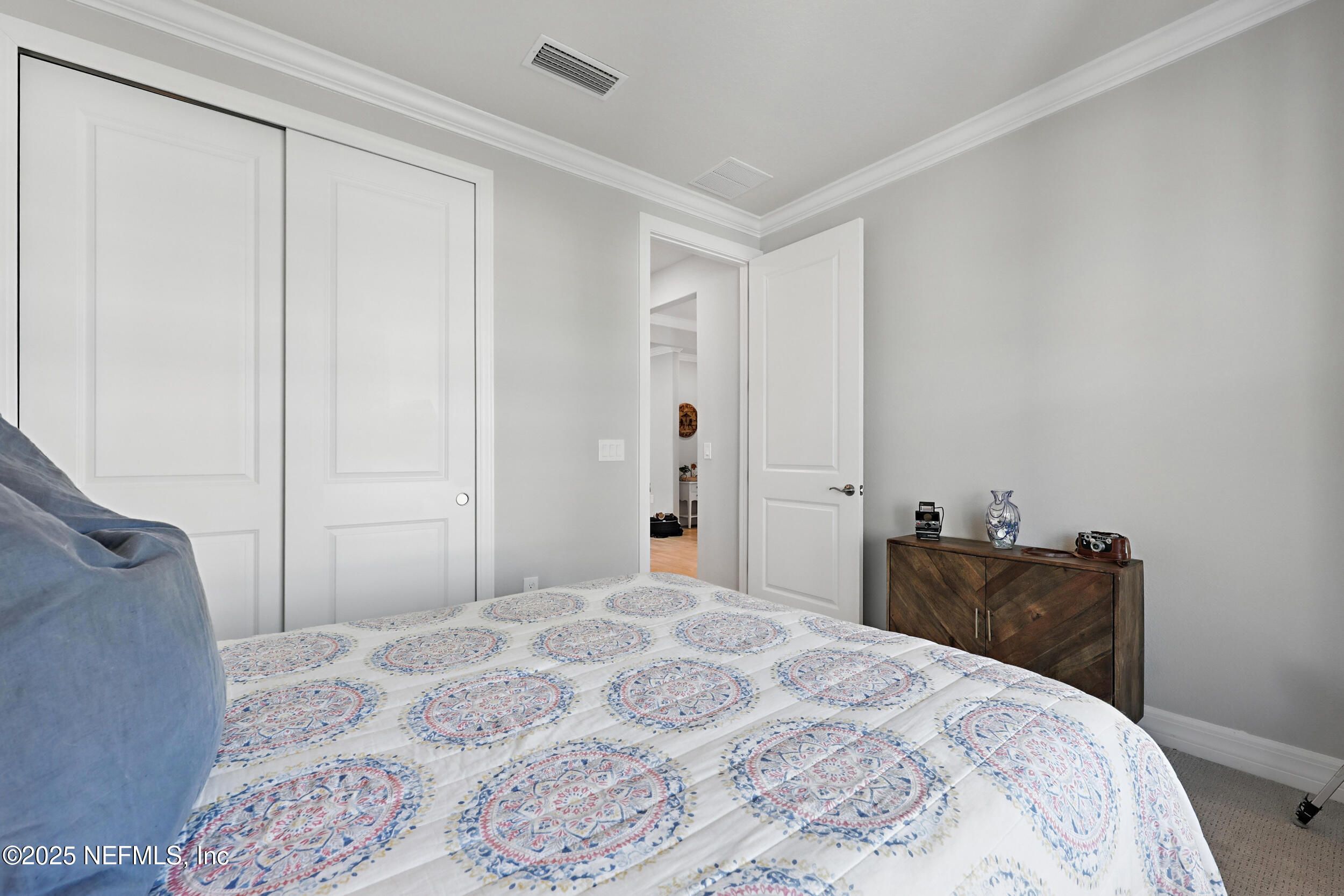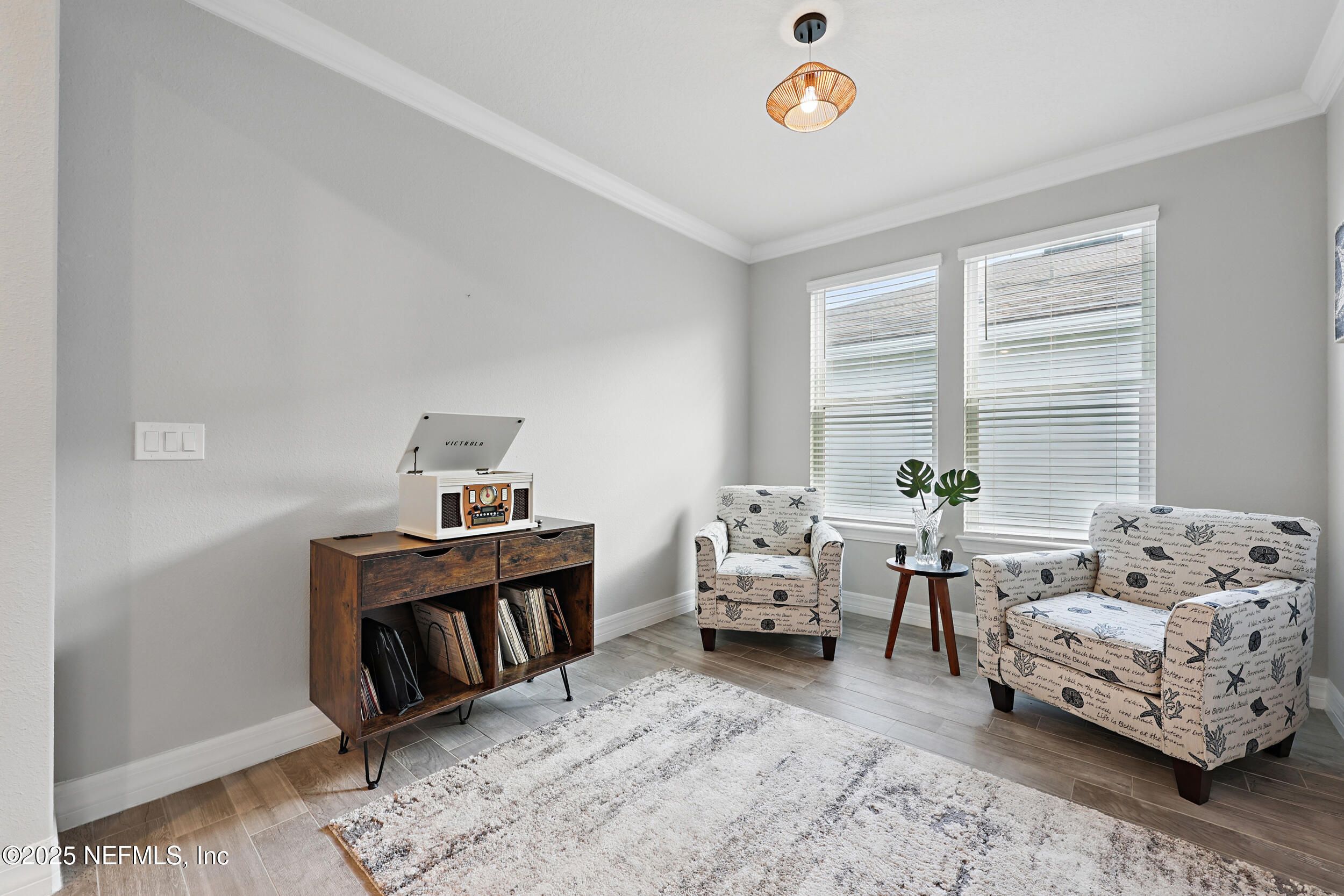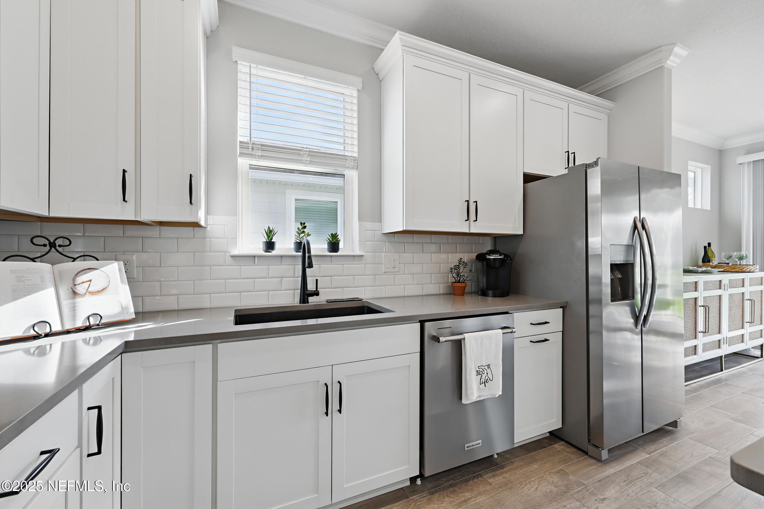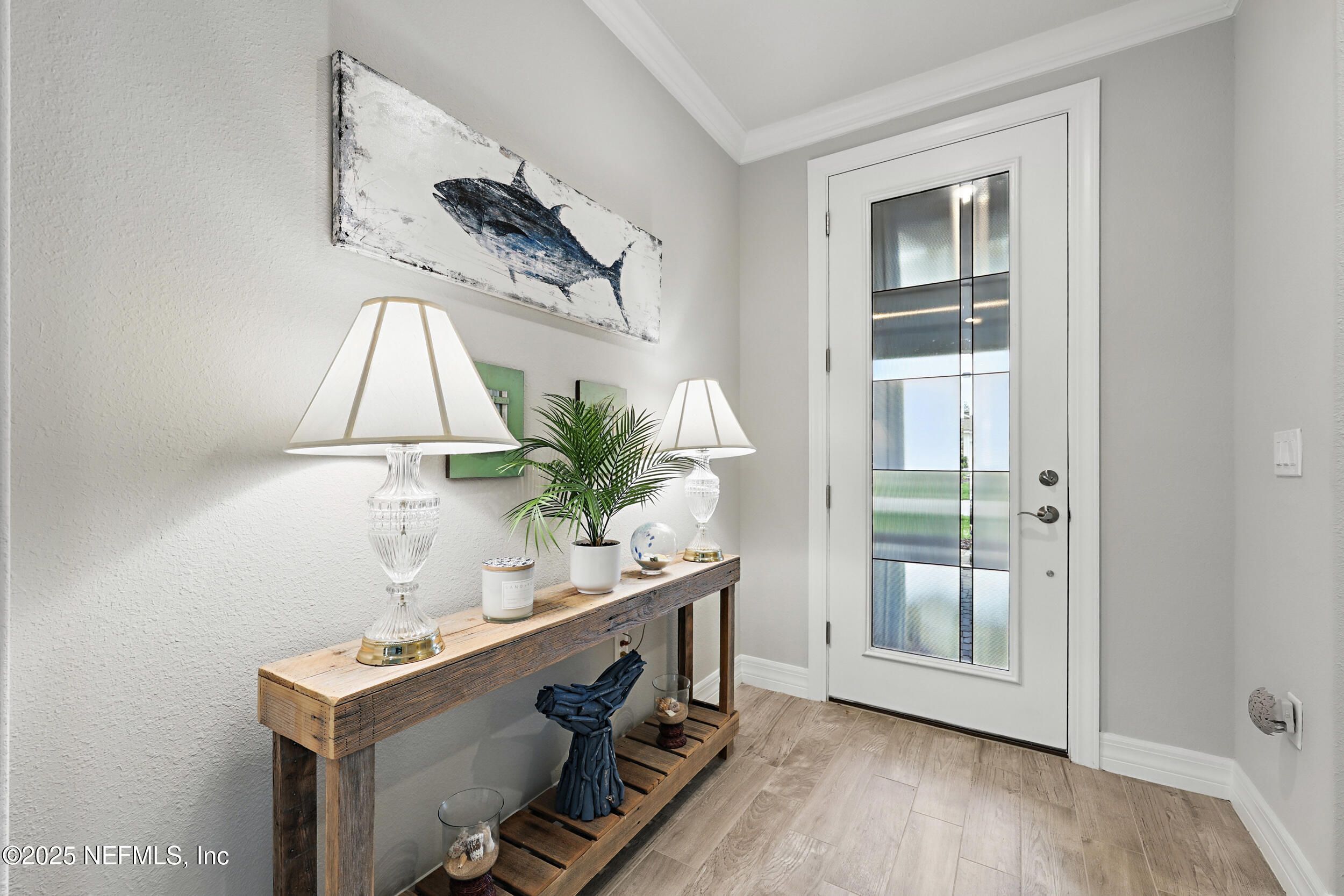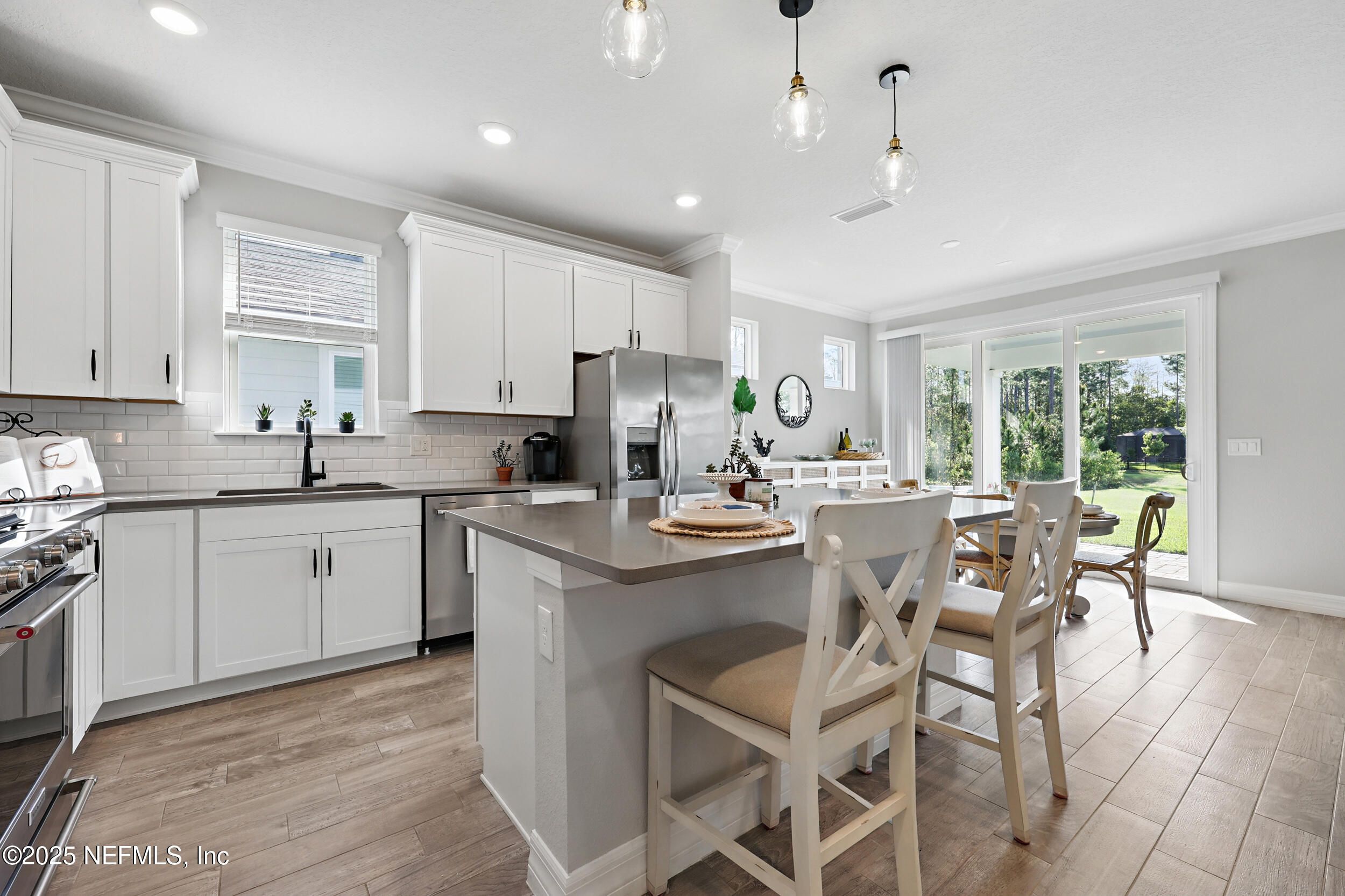 Welcome to Del Webb Nocatee and this beautifully upgraded 2-bedroom, 2-bathroom, 1,670 square foot home. Located walking distance to the Canopy Club, this home offers a serene water view and the perfect blend of comfort and elegance. As you enter, you'll be greeted by a bright and spacious open floor plan, with a stunning office that provides a peaceful space for work or relaxation. The upgraded kitchen is a chef's dream, featuring high-end finishes, modern appliances, and ample counter space. The Synergy Surround Sound System functions not only through the living area, but also on the back lanai. The inviting front porch provides a charming space to enjoy your morning coffee or relax with a good book while the back lanai looks over a beautiful pond and preserve. The Master Suite has been thoughtfully designed to overlook the water and offers a spa-like experience with luxurious frameless shower and sleek finishes. Live the lifestyle you've always dreamed of in the highly sought-after Del Webb community, offering resort-style pools and amenities and an active, vibrant atmosphere. There is a 24 hour guarded gate and a full activities calendar for both Del Webb and Nocatee. As a Nocatee resident, the community includes two waterparks, four other neighborhood pools, numerous playgrounds and dog parks, greenway walking trails, a kayak launch, fitness center, pickleball, tennis, and basketball courts, a full activity calendar, and is fully golf cart accessible. Plus, you're only minutes away from the stunning beaches of Ponte Vedra, allowing you to enjoy the Florida sunshine whenever you wish.