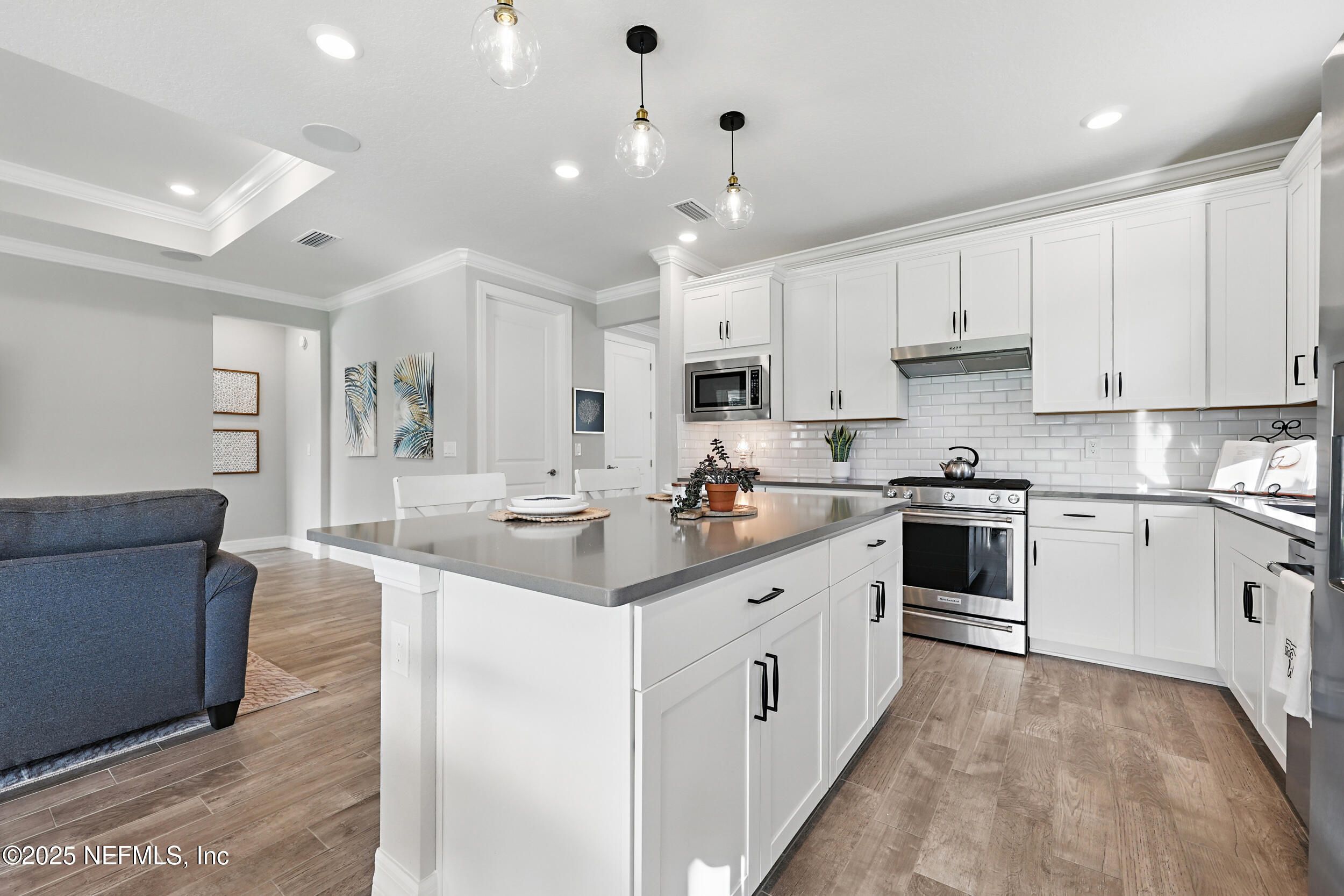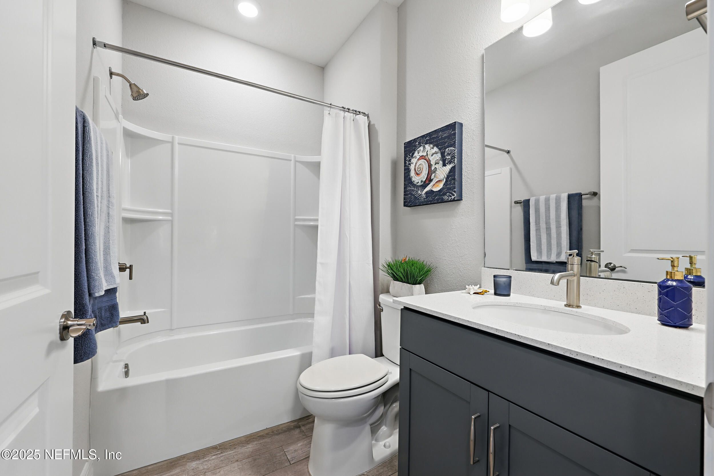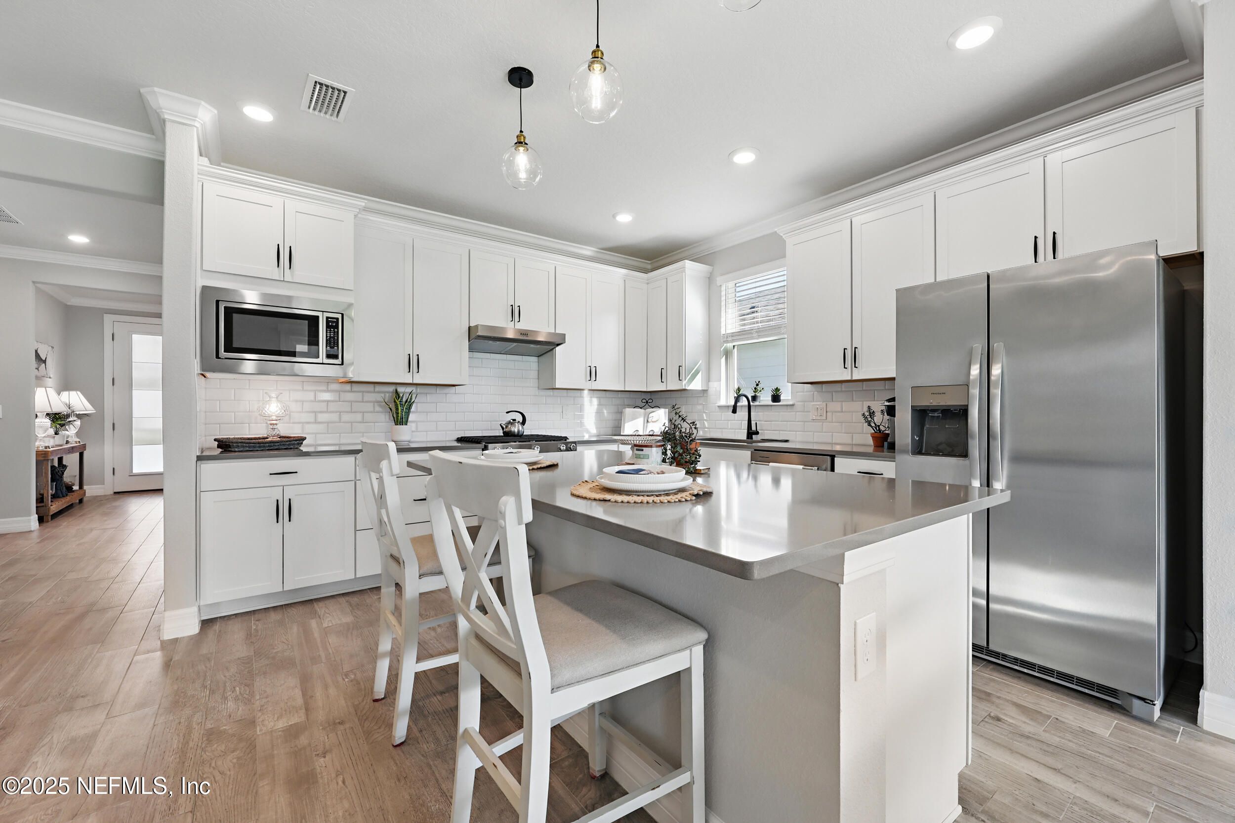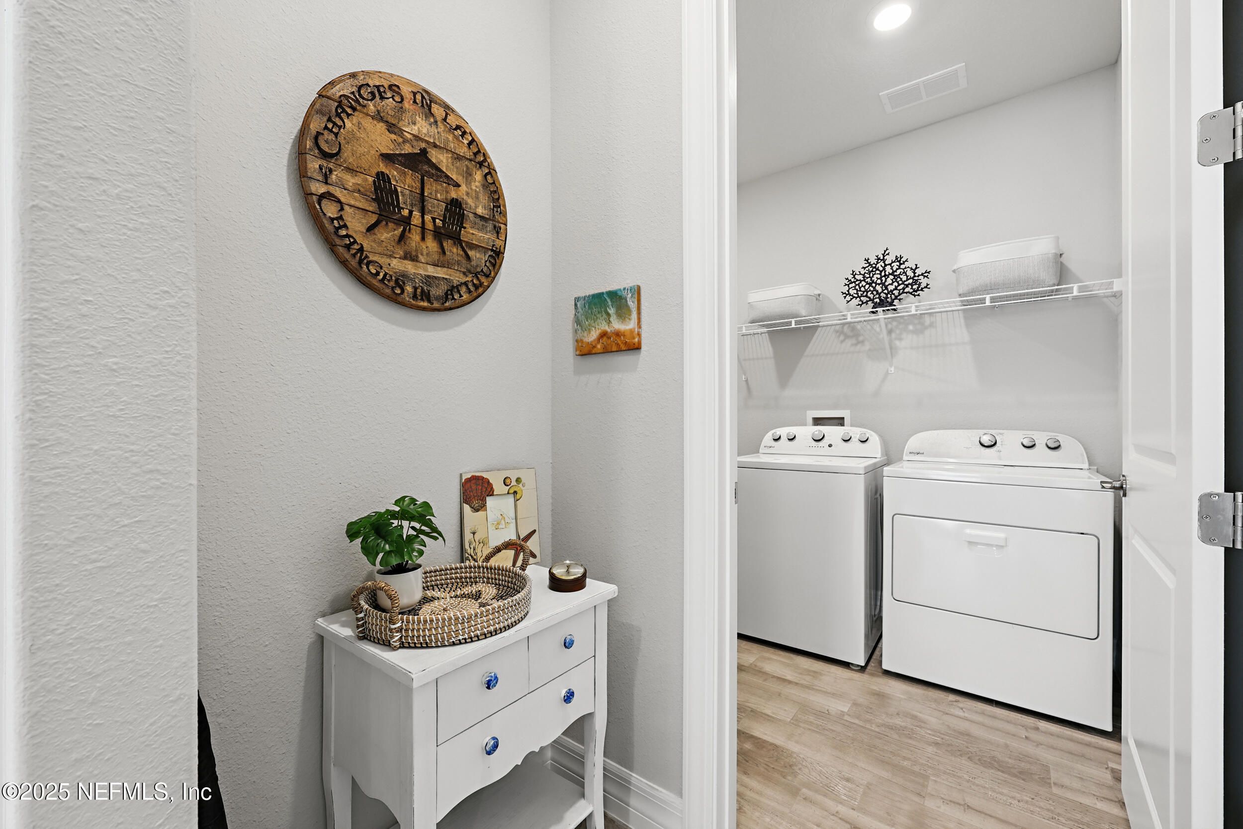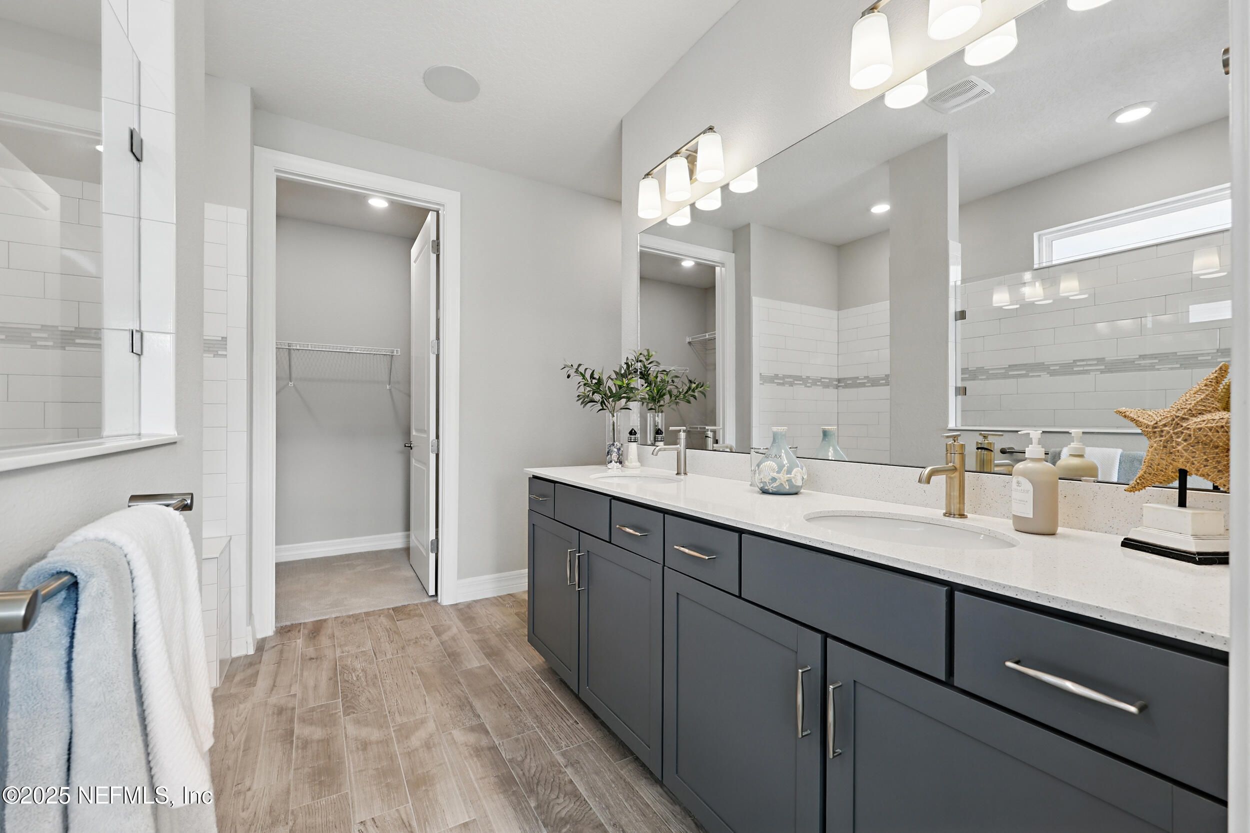 Welcome to Del Webb Nocatee and this beautifully upgraded 2-bedroom, 2-bathroom, 1,670 square foot home. Located walking distance to the Canopy Club, this home offers a serene water view and the perfect blend of comfort and elegance. As you enter, you'll be greeted by a bright and spacious open floor plan, with a stunning office that provides a peaceful space for work or relaxation. The upgraded kitchen is a chef's dream, featuring high-end finishes, modern appliances, and ample counter space. The Synergy Surround Sound System functions not only through the living area, but also on the back lanai. The inviting front porch provides a charming space to enjoy your morning coffee or relax with a good book while the back lanai looks over a beautiful pond and preserve. The Master Suite has been thoughtfully designed to overlook the water and offers a spa-like experience with luxurious frameless shower and sleek finishes. Live the lifestyle you've always dreamed of in the highly sought-after Del Webb community, offering resort-style pools and amenities and an active, vibrant atmosphere. There is a 24 hour guarded gate and a full activities calendar for both Del Webb and Nocatee. As a Nocatee resident, the community includes two waterparks, four other neighborhood pools, numerous playgrounds and dog parks, greenway walking trails, a kayak launch, fitness center, pickleball, tennis, and basketball courts, a full activity calendar, and is fully golf cart accessible. Plus, you're only minutes away from the stunning beaches of Ponte Vedra, allowing you to enjoy the Florida sunshine whenever you wish.