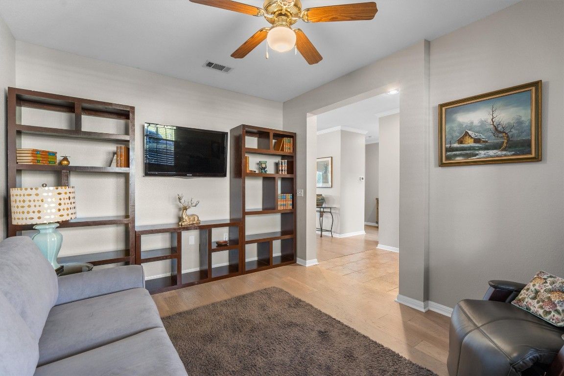 Although multiple licensed roofers confirmed the roof is in good condition, the buyer had a different perspective. The good news is we now have detailed information on the roof & are back on the market for the next buyer. Discover stylish living & exceptional comfort in this beautifully maintained home that backs to a peaceful greenbelt in the vibrant 55+ community of Sun City. With effortless curb appeal, the property features easy-to-maintain landscaping & mature trees. Step inside to the highly desirable Rayburn floor plan filled with natural light & beautiful wood flooring, where a spacious living area anchors the home with its cozy fireplace, built-in shelves, & cabinetry. The kitchen overlooks the dining room & showcases granite countertops, a breakfast bar, crisp white cabinetry with pull-out drawers, stainless steel appliances, and a pantry for added storage. Retreat to the spacious primary suite, complete with its own bay window. The ensuite bath offers a dual vanity, a walk-in shower, and an expansive walk-in closet with built-ins to keep everything organized. Two additional bedrooms, each with closets, provide flexibility for guests/hobbies while the front office offers an additional flex space. The enclosed patio serves as extended living space. Step outside to a spacious stone patio where you can unwind and enjoy peaceful greenbelt views, often with deer and other wonderful wildlife wandering by. Living in Sun City means enjoying an unmatched lifestyle with resort-style amenities, including two fitness centers, three golf courses, eight pools, tennis, pickleball, and bocce courts, a state-of-the-art computer center, and more. Engage with over 145 clubs, special-interest groups, & community activities designed to inspire connection and enrichment. Minutes from shopping, dining, recreation, medical facilities, and the airport, with easy access to TX-195 and I-35.
