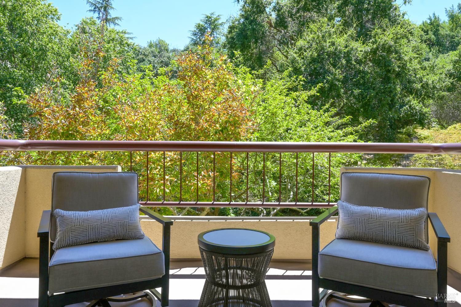 Rare Plan 5 at Smith Ranch Homes! This beautifully appointed residence is located in the highly sought-after 400 building offering convenient access to the parking structure, guest suites, and just a short stroll to the clubhouse. Enjoy serene hillside and treetop views with abundant natural light throughout. Smith Ranch is a premier 55+ gated community set on over 30 acres of manicured grounds with exceptional amenities: croquet, bocce, putting greens, year-round pond, and a heated lap pool and spa with fitness classes. Residents also enjoy a fully equipped gym, fine dining in both the main dining room and casual grill, lectures, piano concerts, movies, a well-stocked library, on-site hair and nail salon, game room, art studio and community garden. 24-hour security. A resort lifestyle in the heart of Marin! Monthly HOA is $3234 plus mandatory $1103/dining fee per person.