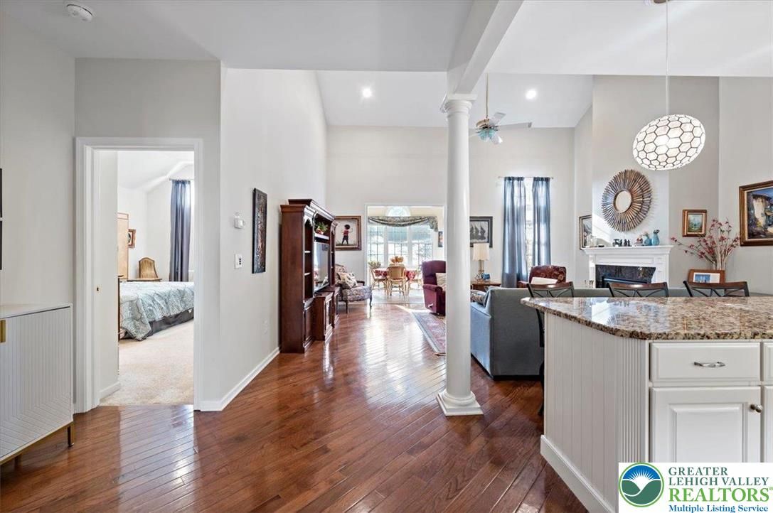- Cathedral Ceiling(s), Dining Area, Separate/Formal Dining Room, Entrance Foyer, Eat-in Kitchen, High Ceilings, Home Office, Kitchen Island, Loft, Family Room Main Level, Vaulted Ceiling(s), Walk-In Closet(s), Window Treatments