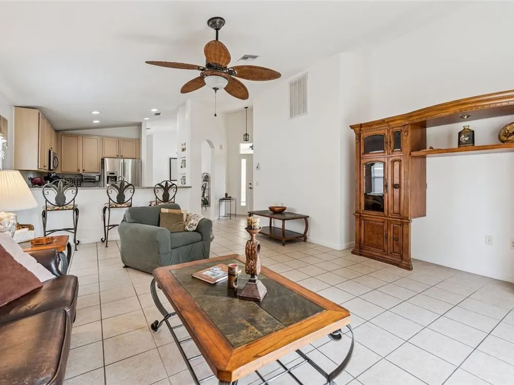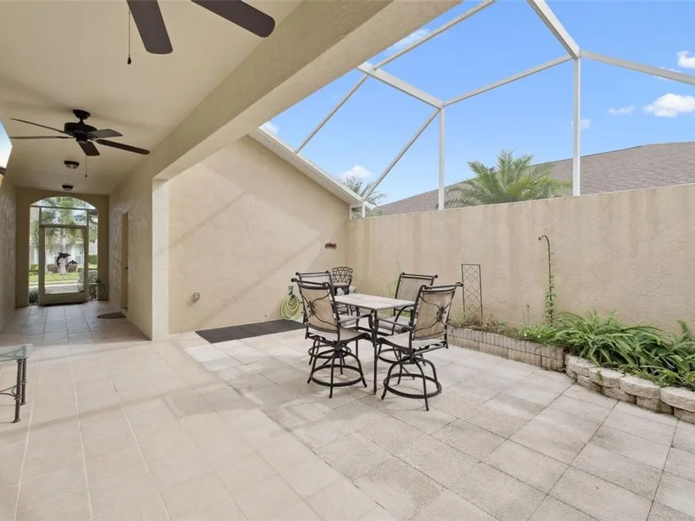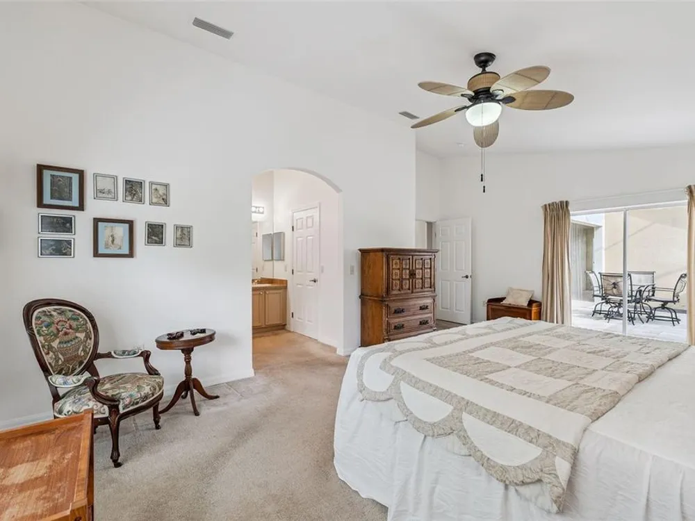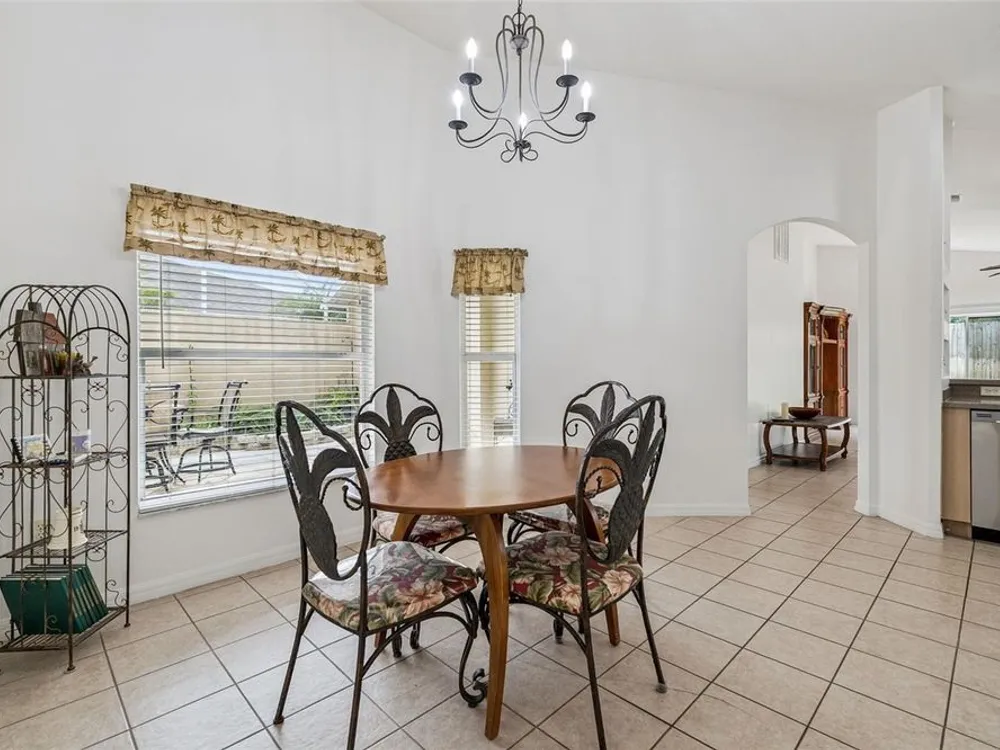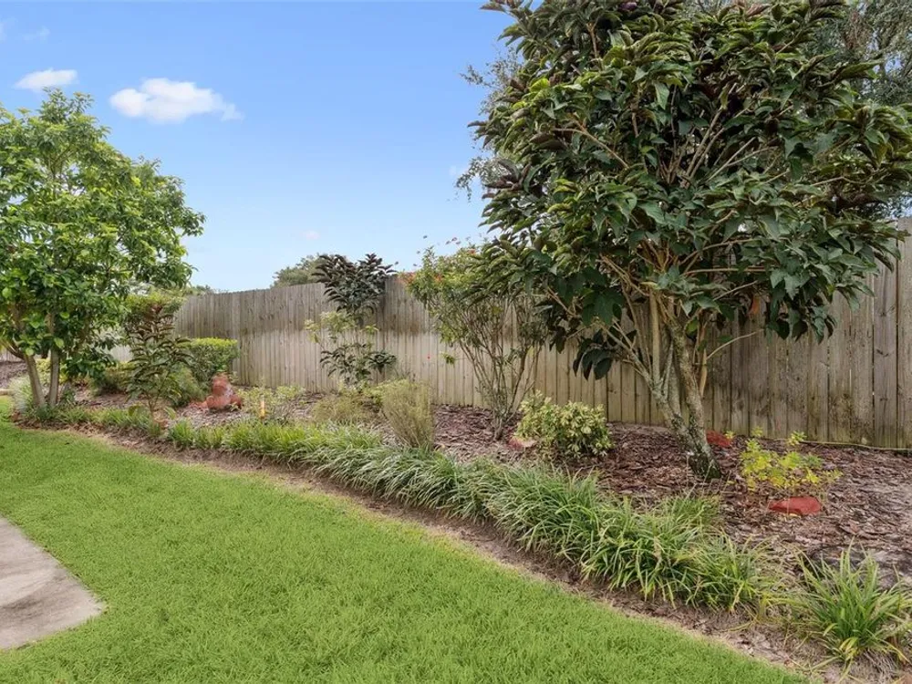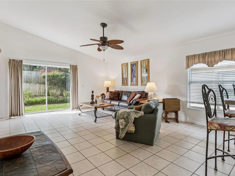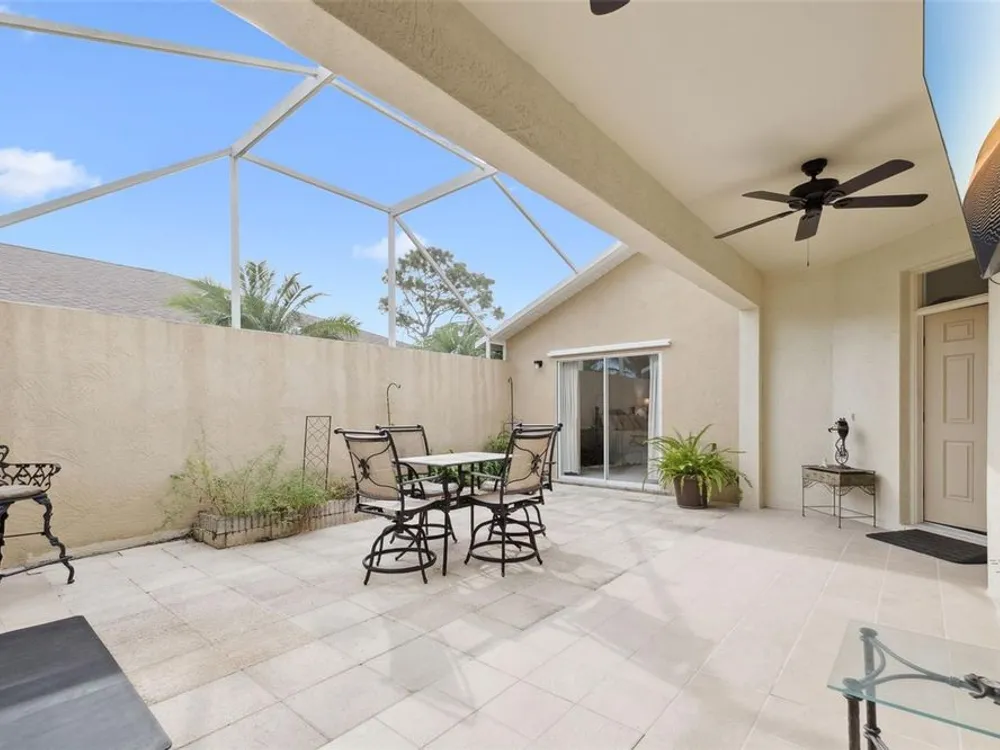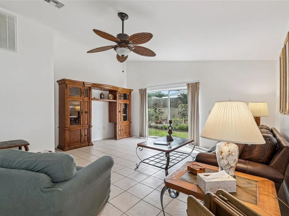 Lovely 3-bedroom, 3-bath home located in the active 55+ gated community of Chalet Estates on Lake Suzanne. This distinctive open floor plan includes a private mother-in-law suite with its own entrance—ideal for guests or extended family. The spacious great room features vaulted ceilings and sliding glass doors that open to the backyard garden, seamlessly blending indoor and outdoor living. The well-equipped kitchen offers a large breakfast bar, 42" upper cabinetry, stainless steel appliance package with gas range, closet pantry, stainless steel sink with gooseneck faucet, and ample counter space. The formal dining area flows easily from the kitchen, making entertaining simple. Freshly painted interiors create a neutral palette, while arched entryways add architectural charm. The generously sized primary suite provides space for a sitting area, a walk-in closet, and sliding glass doors that lead to the private courtyard. The en-suite bath includes dual sinks, a linen closet, and a seated walk-in shower with safety grab bars. Outdoor enjoyment awaits in the fully screened courtyard, adorned with a peaceful pond—perfect for relaxing or entertaining. Additional features include: Laundry room with washer & dryer, Architectural shingle roof (2023), Sentricon termite bait system, Irrigation system, AC system (2019), Gutters, Pull-down attic stairs, Hurricane shutters, 2-car garage with door opener Chalet Estates offers a vibrant retirement lifestyle with a waterfront clubhouse, heated pool, fitness center, patio area, and access to serene Lake Suzanne. The low monthly HOA fee includes lawn service, ensuring a worry-free lifestyle. Conveniently located near shopping, dining, medical facilities, major routes, Boc Towner and Legoland, this home is the perfect place to enjoy retirement living at its finest. Home is being sold partially furnished.