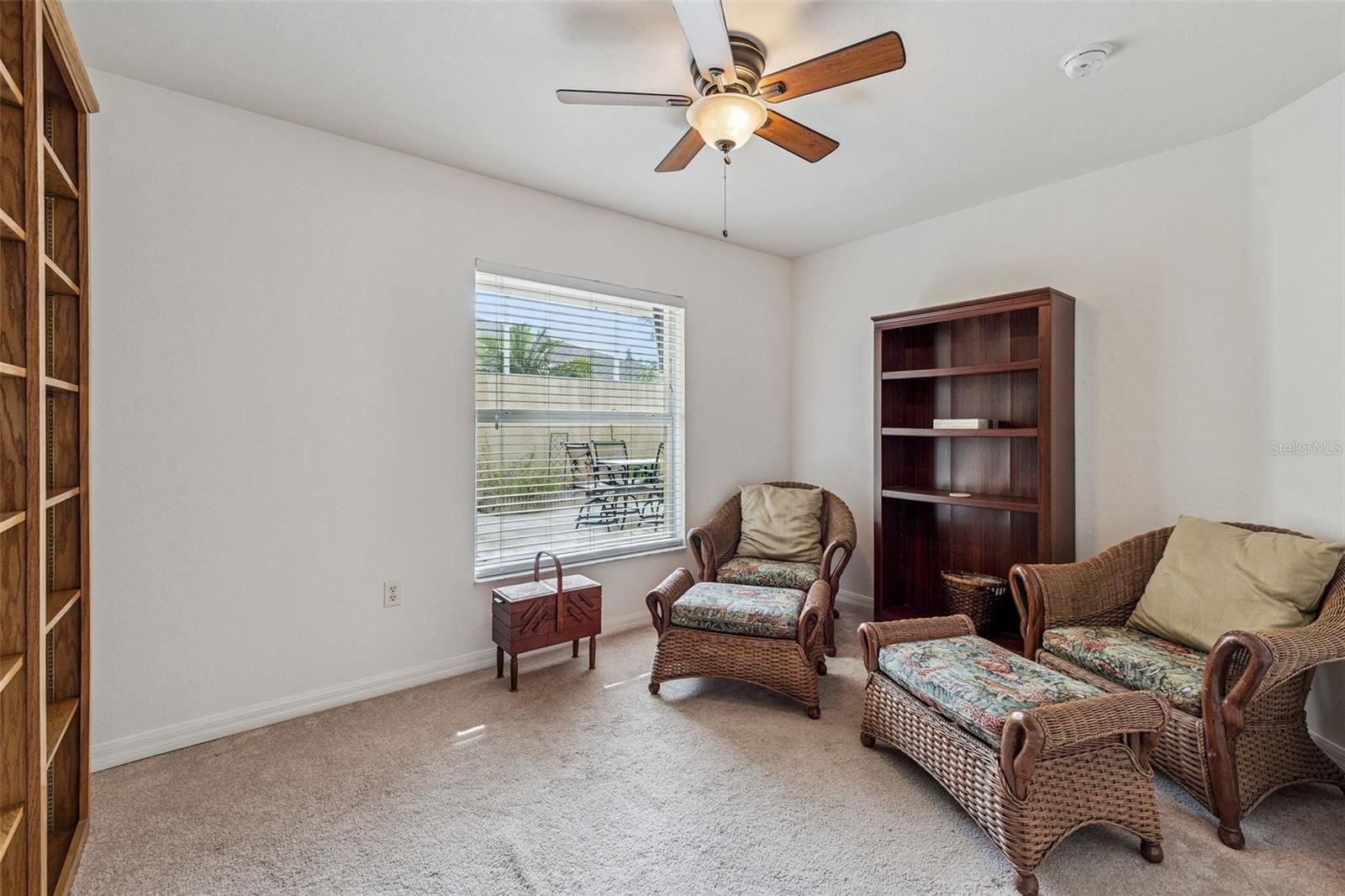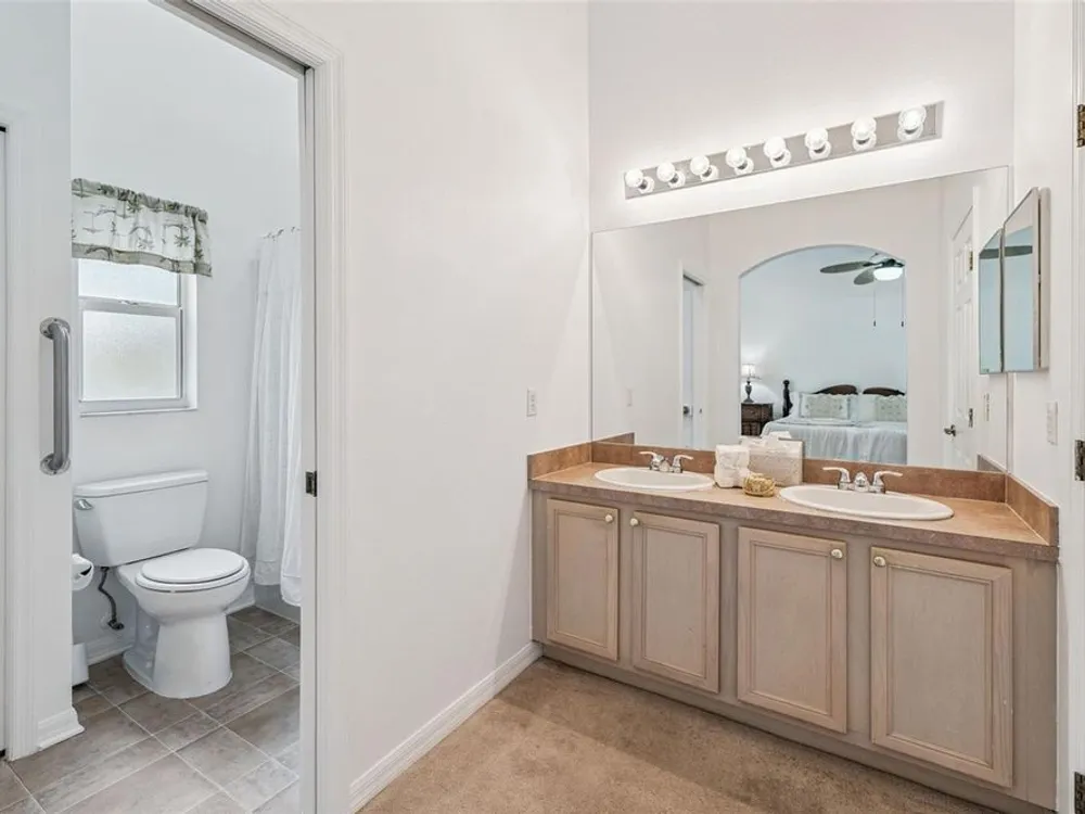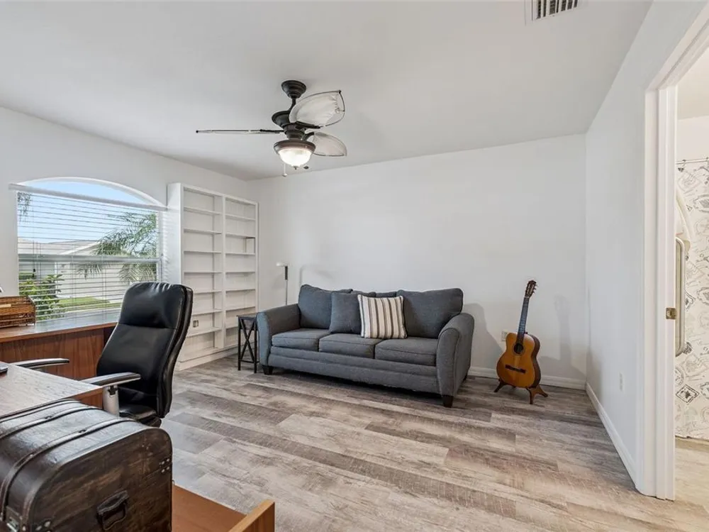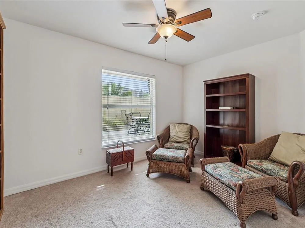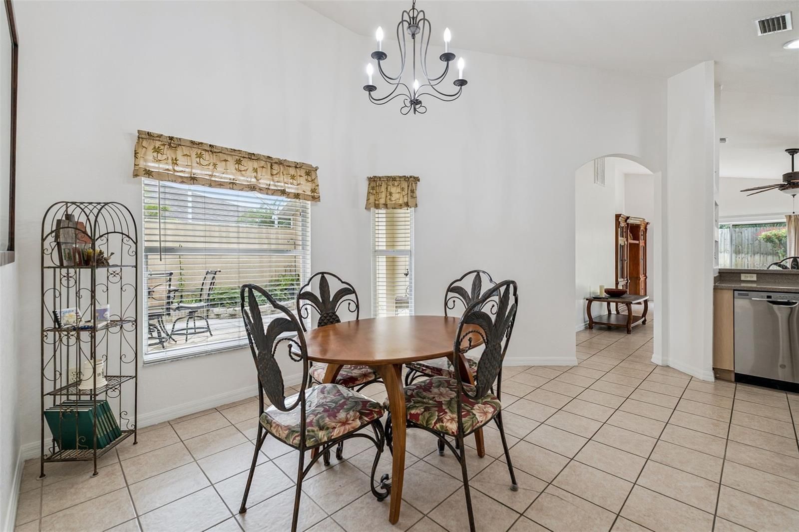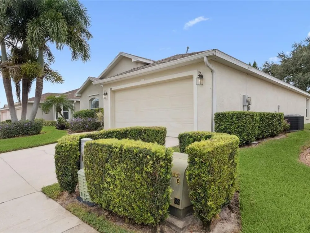 Lovely 3-bedroom, 3-bath home located in the active 55+ gated community of Chalet Estates on Lake Suzanne. This distinctive open floor plan includes a private mother-in-law suite with its own entrance—ideal for guests or extended family. The spacious great room features vaulted ceilings and sliding glass doors that open to the backyard garden, seamlessly blending indoor and outdoor living. The well-equipped kitchen offers a large breakfast bar, 42" upper cabinetry, stainless steel appliance package with gas range, closet pantry, stainless steel sink with gooseneck faucet, and ample counter space. The formal dining area flows easily from the kitchen, making entertaining simple. Freshly painted interiors create a neutral palette, while arched entryways add architectural charm. The generously sized primary suite provides space for a sitting area, a walk-in closet, and sliding glass doors that lead to the private courtyard. The en-suite bath includes dual sinks, a linen closet, and a seated walk-in shower with safety grab bars. Outdoor enjoyment awaits in the fully screened courtyard, adorned with a peaceful pond—perfect for relaxing or entertaining. Additional features include: Laundry room with washer & dryer, Architectural shingle roof (2023), Sentricon termite bait system, Irrigation system, AC system (2019), Gutters, Pull-down attic stairs, Hurricane shutters, 2-car garage with door opener Chalet Estates offers a vibrant retirement lifestyle with a waterfront clubhouse, heated pool, fitness center, patio area, and access to serene Lake Suzanne. The low monthly HOA fee includes lawn service, ensuring a worry-free lifestyle. Conveniently located near shopping, dining, medical facilities, major routes, Boc Towner and Legoland, this home is the perfect place to enjoy retirement living at its finest. Home is being sold partially furnished.