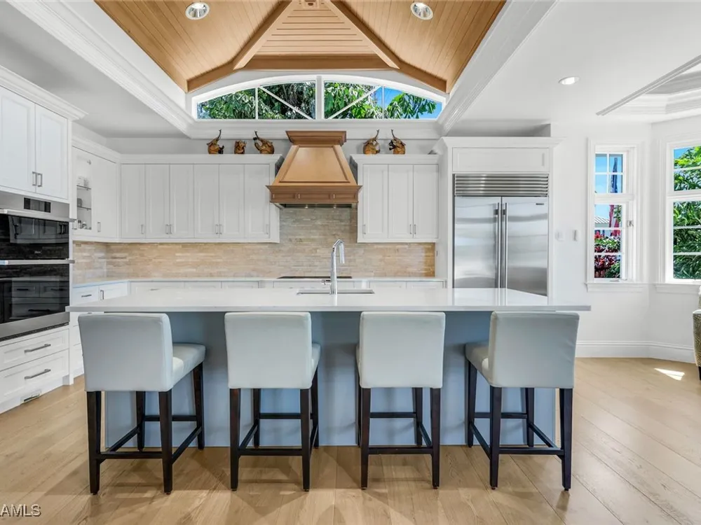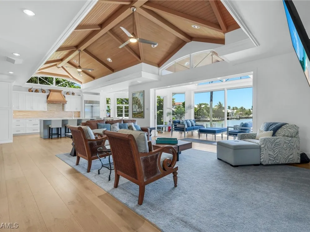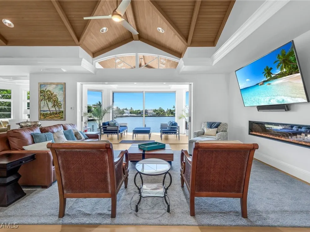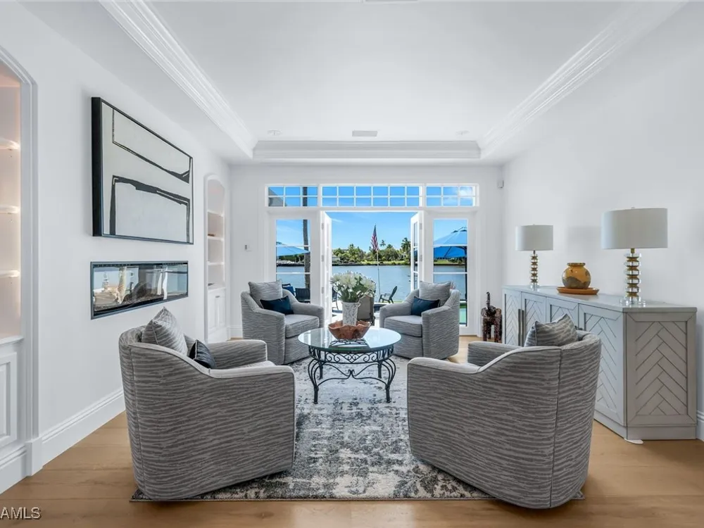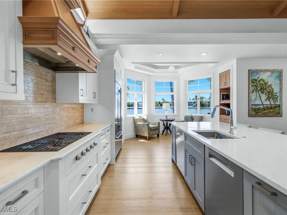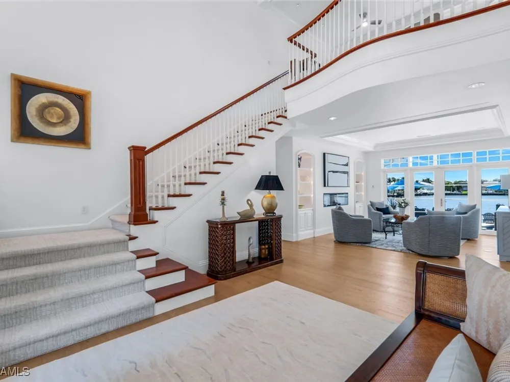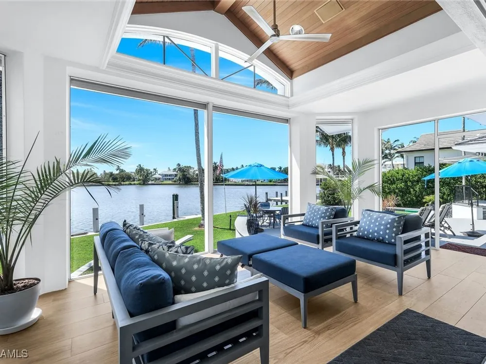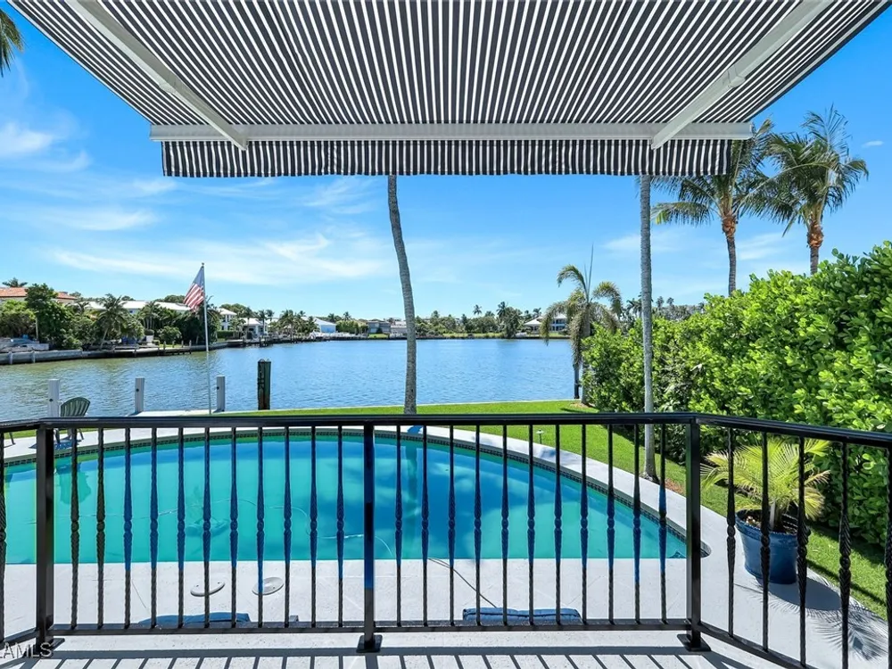 Gorgeous waterfront home on Hurricane Harbor in The Moorings - less than a mile to the private Moorings Beach. Enjoy the delightful wide bay southern exposure views from every room & breathtaking sunset every evening. Open floor plan providing one level living on the first floor & plenty of room for guests. 20’ vaulted ceiling foyer with a grand staircase and balcony, opening to unobstructed water views. This home is a seamless blend of elegance, tropical warmth, and traditional touches. A mix fine wood trim craftsmanship and modern Florida living. Entertaining and cooking is a pleasure in the updated kitchen with large island, bar, wine cellar & walk in pantry. Wolf, Subzero and Decor appliances. This home has been extensively upgraded. Secured with electric storm shutters. New roof. The seawall has been replaced in 2021. Three car garage/one temperature controlled. Take your choice to sip morning coffee from the breakfast nook, lanai or pool deck as you overlook the bay and swaying palms! This is truly your own self-contained resort and yet super close to all amenities. Short boat ride to the Gulf via Doctors Pass. Come see this amazing home and make it yours.