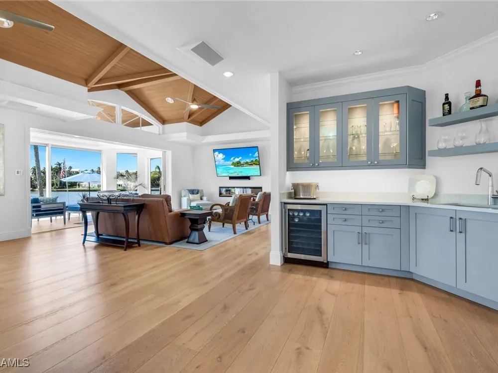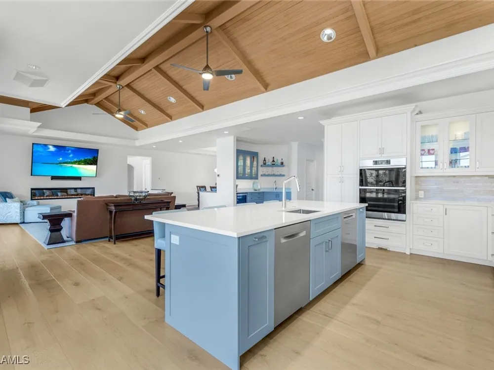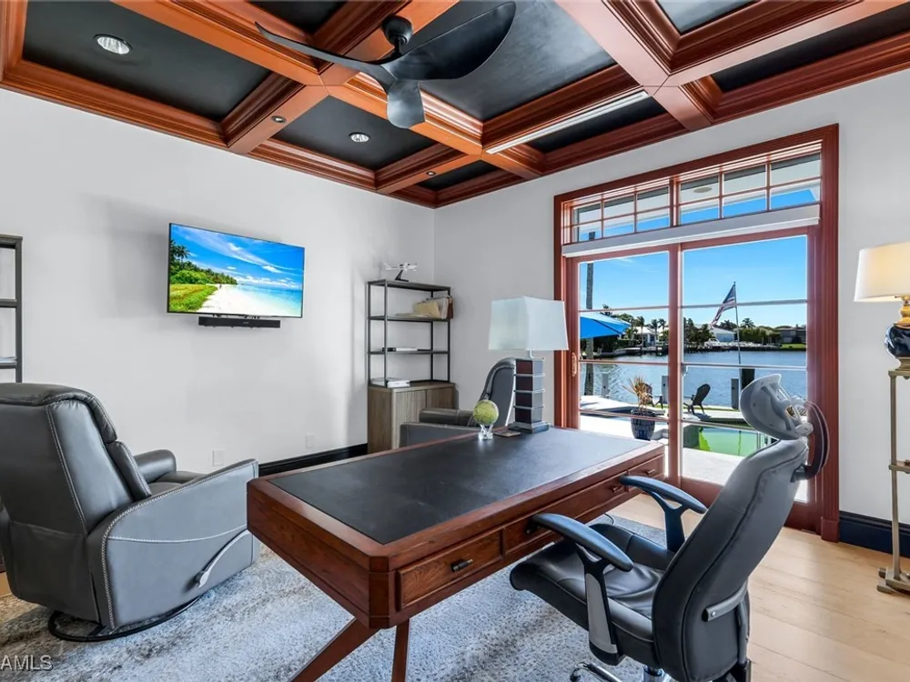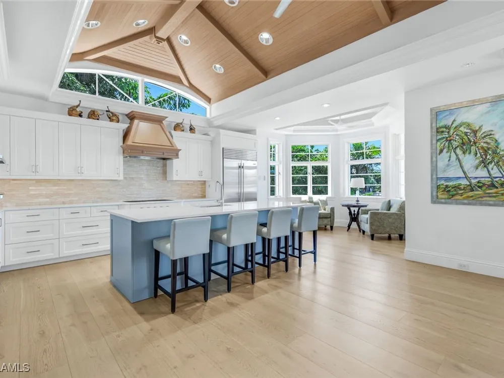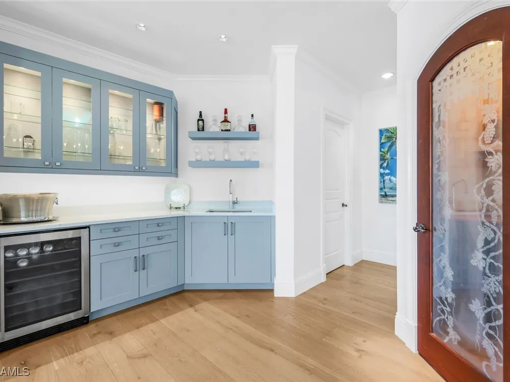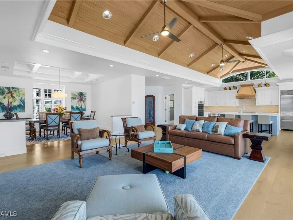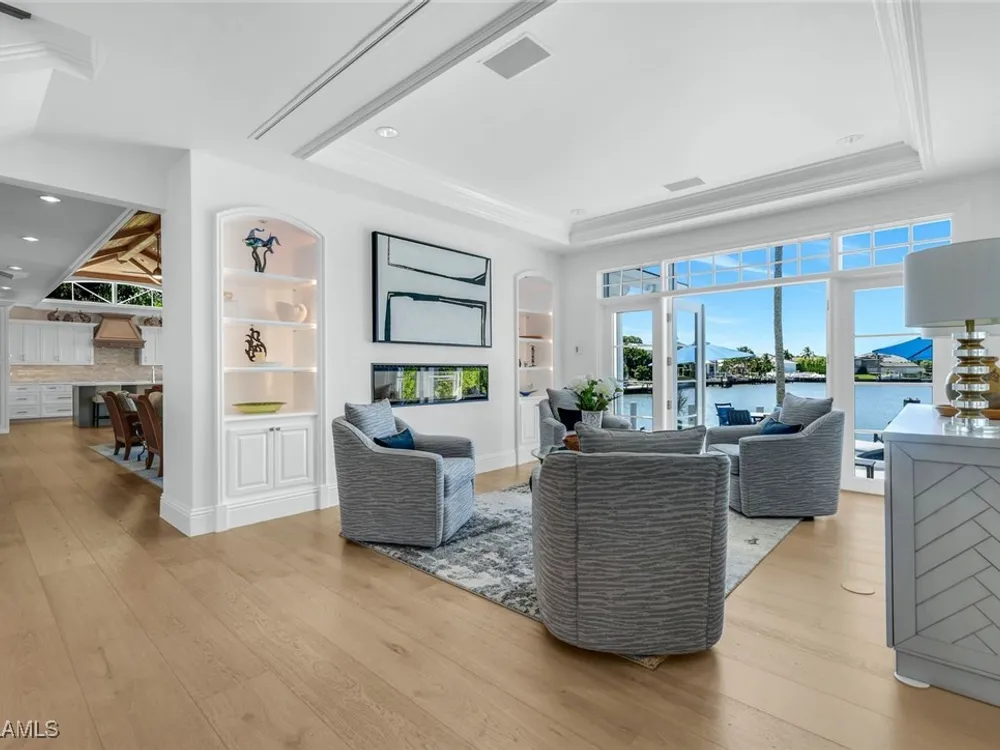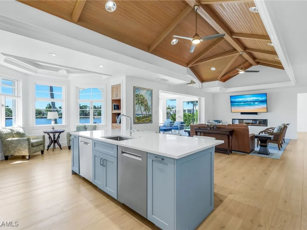 Gorgeous waterfront home on Hurricane Harbor in The Moorings - less than a mile to the private Moorings Beach. Enjoy the delightful wide bay southern exposure views from every room & breathtaking sunset every evening. Open floor plan providing one level living on the first floor & plenty of room for guests. 20’ vaulted ceiling foyer with a grand staircase and balcony, opening to unobstructed water views. This home is a seamless blend of elegance, tropical warmth, and traditional touches. A mix fine wood trim craftsmanship and modern Florida living. Entertaining and cooking is a pleasure in the updated kitchen with large island, bar, wine cellar & walk in pantry. Wolf, Subzero and Decor appliances. This home has been extensively upgraded. Secured with electric storm shutters. New roof. The seawall has been replaced in 2021. Three car garage/one temperature controlled. Take your choice to sip morning coffee from the breakfast nook, lanai or pool deck as you overlook the bay and swaying palms! This is truly your own self-contained resort and yet super close to all amenities. Short boat ride to the Gulf via Doctors Pass. Come see this amazing home and make it yours.