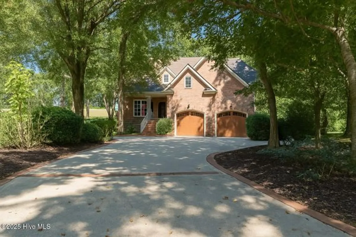 Privately nestled among mature trees with pond views and views of the 2nd green and 3rd fairway, this custom-built 4-bedroom, 4.5-bath brick home offers exceptional privacy and timeless design in the sought-after Porters Neck Plantation. Spanning over 3,700 sq ft, the thoughtfully designed floor plan features a primary suite on the main level and three bedrooms with three full baths upstairs, providing excellent separation of space. Elegant architectural details and quality craftsmanship are evident throughout. A sunroom offering complete privacy and a deck off an upstairs bedroom enhance the home's connection to its natural surroundings. Expansive living areas flow seamlessly outdoors to a private backyard oasis framed by wooded tranquility and peaceful water and fairway views. Additional highlights include a whole-house generator, reverse osmosis system, encapsulated crawlspace with dehumidifier, and an active termite bond for added peace of mind. Residents enjoy an exceptional lifestyle with access to optional golf, tennis, fitness, and swimming facilities, along with a vibrant clubhouse and community activities—just minutes from shopping, dining, and the Intracoastal Waterway.