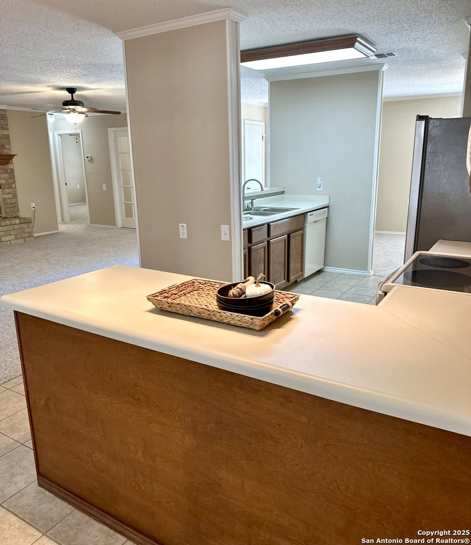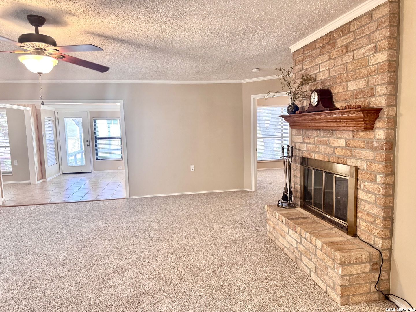 Seller is offering $5000 to the buyer. This home is a corner lot with beautiful mature trees An immaculate, single story, 2 bedroom, 1.5-bathroom located in the 55+ retirement community. Features a one car garage, brick exterior with a covered porch and and patio. Living room has a fireplace with an electric insert box that blows out heat to keep warm. There is an office and a Florida room for extra space an 2nd living space. Updates brand new carpet, disposal and kitchen sink. Kitchen has a walk in pantry and microwave, range, and refrigerator. Bathrooms are updated and has a large tiled shower. Bedrooms have a large walk in closet with built ins. A must see home in a community that has a Lodge with activities everyday for residents. Has a guard entry to community.