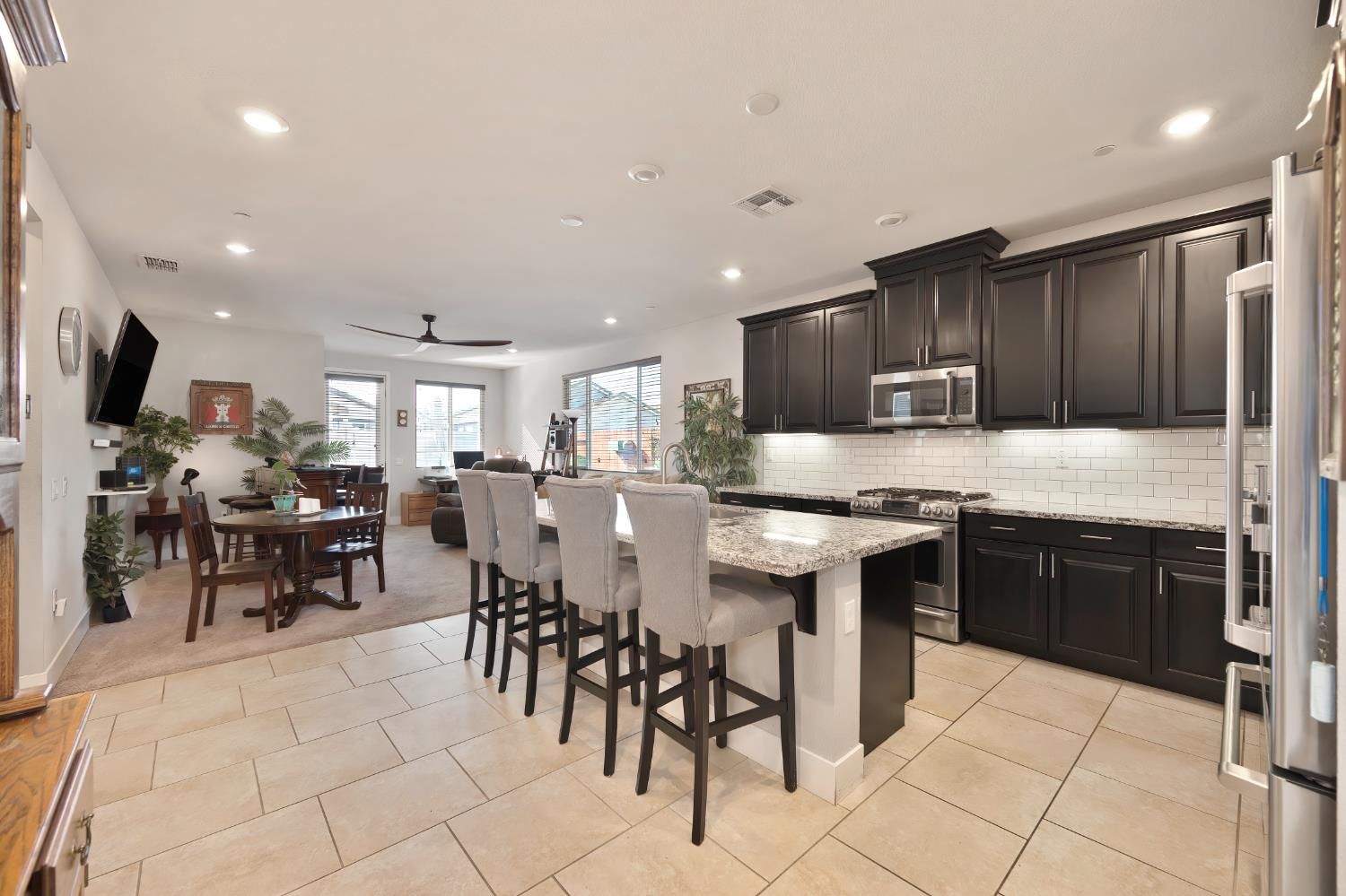 Your destination awaits for your retirement years in the wonderful community of Four Seasons at Westshore for the active adult of 55 Plus. Within this great community you will discover this stunning two bedroom, two bathroom single story abode that includes an attached two car garage; Offering 1,531 sq. ft. of thoughtfully designed living space, blending comfort and upscale style. Walking up to this residence you will enter upon the oversized covered porch which enters into the home. The entry flows to the flex room that can be an office, formal dining room or den which includes a large sliding glass door opening to the large porch. There is separate bedroom wings for your privacy, tons of storage and a well thought out floor-plan. This home features numerous upgrades throughout, including upgraded tile flooring in the entry, halls, baths and kitchen. The grand kitchen offers quality cabinetry with a rich espresso stain, Stainless steel appliances, sleek granite countertops with a full subway tiled backsplash. the large family/great room has tons of windows flooding in the natural light which flows into the kitchen area, along with having convenient access to the quaint backyard that provides outdoor space and seclusion. The primary bedroom is private and offers a large bath highlighted by two vanity sink areas, an enormous zero threshold shower with bench seat and a big walk-in closet. Additional highlights include leased solar to help reduce monthly electric costs, tile roof and easy maintenance stucco exterior. Enjoy an active lifestyle with easy walking access to the clubhouse, gym and resort-style pool - perfect for warm summer days. Spend time walking around the lake or socializing with neighbors and joining many functions or clubs. Four Seasons at Westshore is a highly desirable 55+ active adult community. This home and community is just 10 minutes from downtown Sacramento and 10 minutes from the airport, offering both convenience and tranquility. This move-in-ready home truly has it all - luxury, location, and lifestyle.