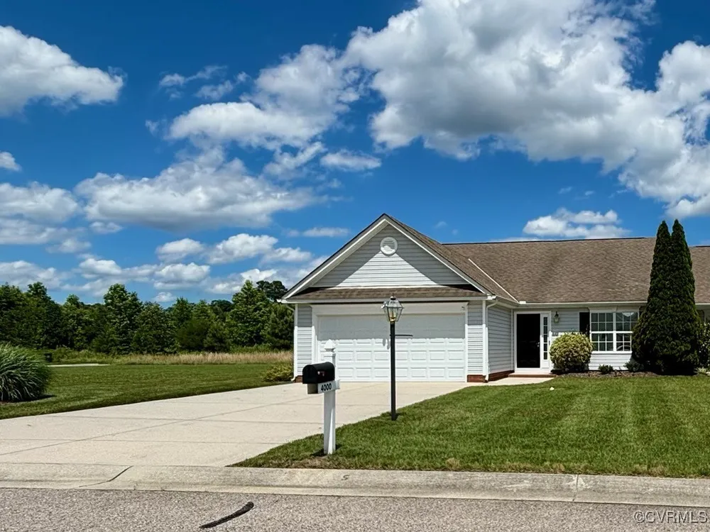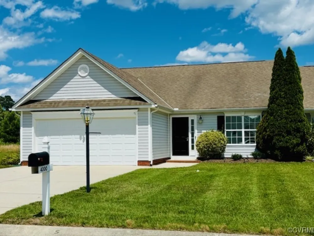 This 2-bedroom home in the age-restricted community of Tinsley Charter is a gem nestled in the heart of Prince George, VA. This single-family, ranch-style home boasts a double-width paved driveway leading to a 2-car attached garage with an automatic door opener. Step inside to discover a large living room with a cozy fireplace, perfect for those chilly evenings. The home features new paint and carpet throughout, enhancing the fresh and modern feel. The master suite includes a walk-in closet and a private bathroom with double sinks, and a tiled walk-in shower that has a built-in seat. An additional bedroom and a second full bathroom provide ample space for guests or hobbies. The home also features a dining room and a foyer with beautiful hardwood floors, adding to its charm. Enjoy the outdoors from the privacy of your own rear screened-in porch. As part of the Tinsley Charter community, you'll have access to a clubhouse, exercise room, putting green, and community pool. The community is gated for added security. Landscaping is included, courtesy of the Homeowners Association. This home is located in an age-restricted community with association restrictions. This is not just a house, it's a lifestyle. Welcome home to Tinsley Charter.