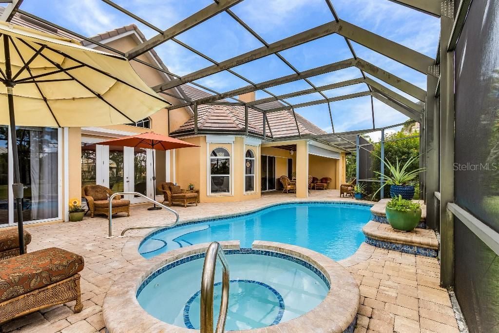 Fabulous estate home on golf course in Burnt Store Marina. Beautifully landscaped one acre corner lot. Three spacious bedrooms, 3 full baths, office/4 th bedroom. Vaulted ceilings. Custom wood shutters. The chef’s kitchen boasts light grey oak cabinetry with birch interiors, a 6 burner propane gas range with griddle, dual electric ovens. A stainless steel french door refrigerator/freezer with water/ice dispenser, a built in Dacor microwave drawer, a stainless steel dishwasher, commercial grade stainless steel exhaust hood. The countertops are Fantasy Brown granite in a leather finish with full backsplash. Large walk-in pantry. The master suite has 8 ft double french doors. The master bath is done in marble mosaic tile with walk-in shower, white cabinetry with elegant granite counters and vanity lighting. The living room with wood burning fireplace is open to the kitchen with16 ft tray ceilings. Maple cabinetry holds electronic equipment, wine storage, and a wet bar with stainless steel sink. Triple sliding doors pocket completely back. A wall mounted control panel can set all of the functions of the heated pool/spa from inside. Double French doors open from the den/billiard room to the lanai. The laundry room has a matched pair washer/dryer with stainless sink. The screen enclosed lanai area is finished with stone pavers and a copper soffit. The lighted, heated free-form pool with waterfall and spa was just completely re-surfaced. New glass tile borders the spa and pool. Guests can enter the pool bath from outside. A new variable speed pool pump was just installed. The rear yard is fully sprinklered controlled by an automated timer. An electric kevlar screen can be quickly lowered in inclement weather plus the windows are protected with roll down Kevlar screening. The whole house can be protected in 15 minutes. The three and one-half car garage has ample space for a workshop and has a charging station for your electric vehicle. Two electric panels total 400 amps. All house plumbing is routed through a Manabloc plumbing box enables the homeowner to control every plumbing line and fixtures from a central location. The garage floor has been finished in oil resistant epoxy and the long private circular driveway is fully paved. An 80 gallon hot water heater was recently installed. A new flat tile roof was just completed as was a new air conditioning system servicing the master bedroom wing. All new air conditioning ducts, a dust particle filtration system and additional attic insulation was added. Hardwired burglar alarm system. Mature clusia trees border both sides of the property to offer privacy. Best value in Burnt Store Marina. Sonos sound system, speakers, surround sound, televisions, and stained glass lamps in master bedroom are excluded from conveying with house.