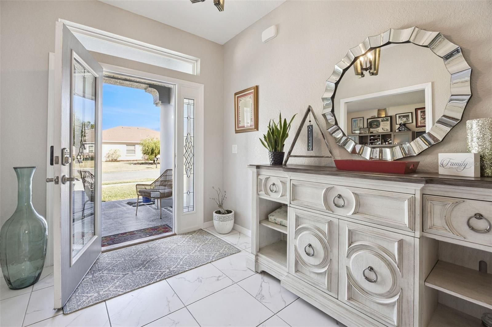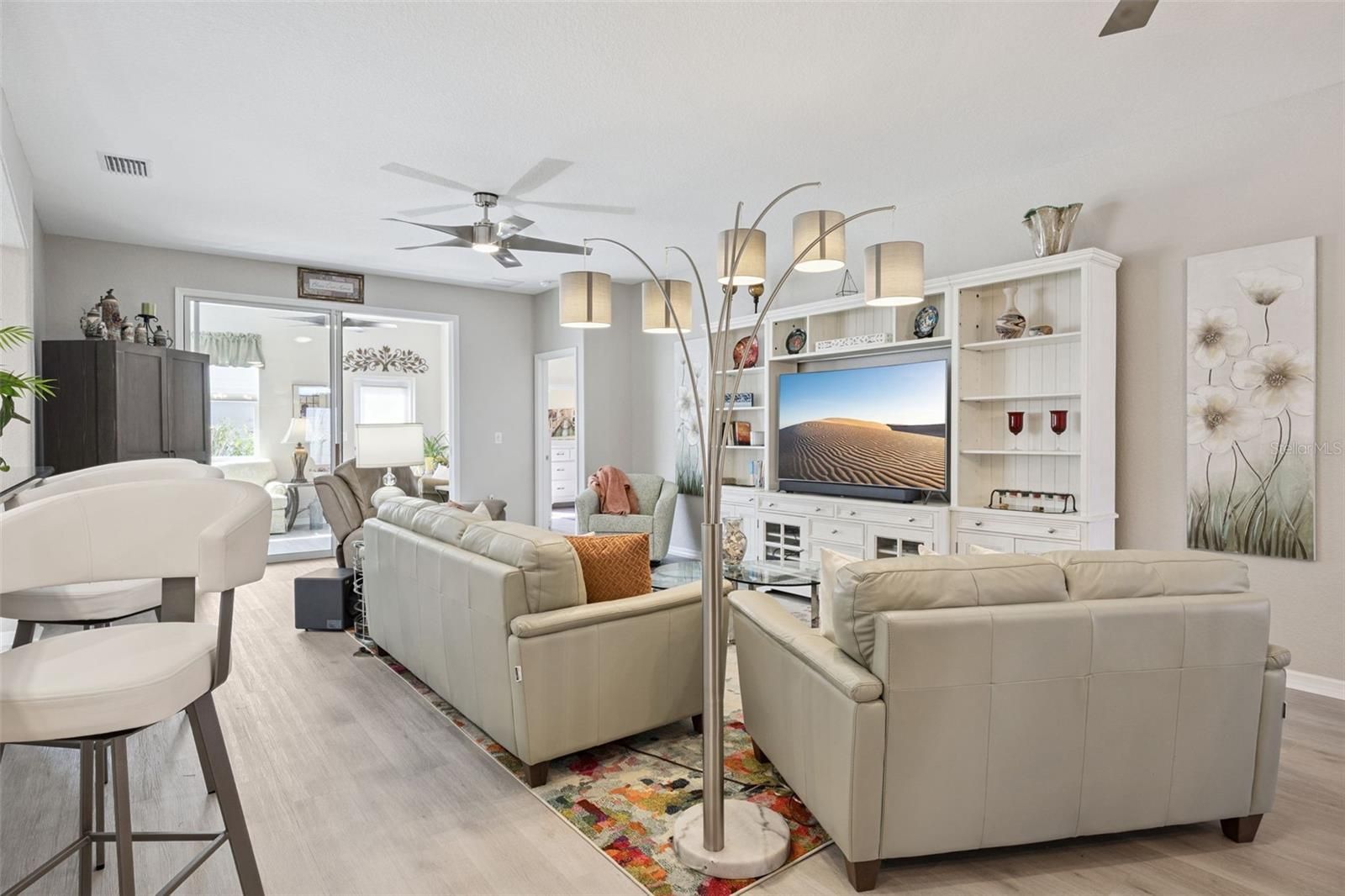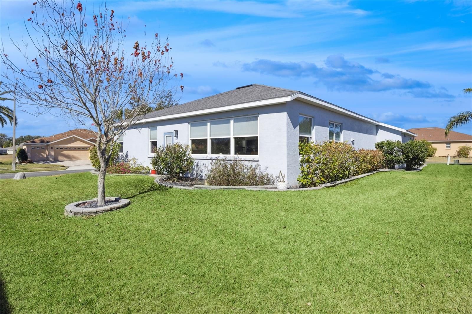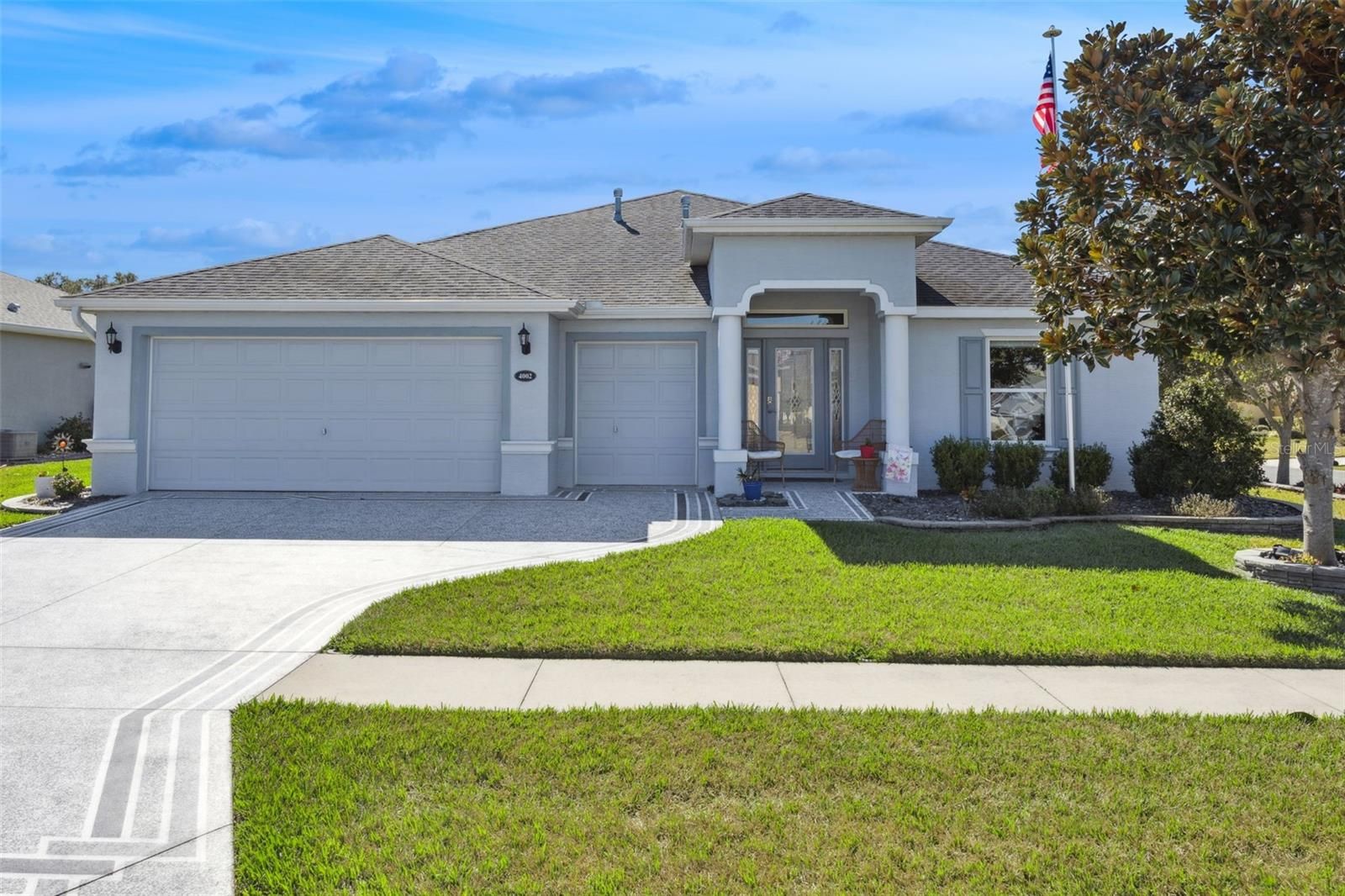 Offering a little under 2,200 sq ft of living space this updated Calla II floor plan has an impressive Florida room that can easily be used for separate living space if needed or to create one larger space. There is still room at the rear of the property to construct a screened lanai should you wish. The versatile bonus room at the front of the house is large enough to be used as a bedroom adding even more flexibility to the floor plan. There is no carpet in this home but what you will find is LVP flooring and ceramic tile for easy cleaning. Thoughtfully constructed for energy efficiency, the home offers exceptionally low utility costs, featuring spray foam insulation in exterior block walls, radiant barrier roofing, R-38 attic insulation and double-pane Low-E argon gas windows ensuring year-round comfort and peace of mind. A whole house water filtration system takes care of the quality of the water. The separate golf cart garage is the ideal place to park your golf cart when you return from playing the 18 hole championship course or it could also be used for additional storage. Located on the Manassas loop which is a very quiet area of the community with no through traffic. The updated mature landscaping on this corner lot enhances curb appeal. Living in Arlington Ridge means more than just a home—it’s a lifestyle. The community offers a restaurant, pub, movie-theater, coffee shop, and a wide variety of clubs and activities to enjoy year round. Located in South Leesburg, you’ll be close to grocery stores, pharmacies, medical facilities, and restaurants. Plus, you’re less than an hour from Orlando’s world-famous attractions and international airport, with both the East and West Coast beaches under two hours away. The low HOA fee includes grass cutting, cable TV and high speed internet. **Don’t miss this opportunity to live in one of Central Florida’s most sought after active adult communities!**