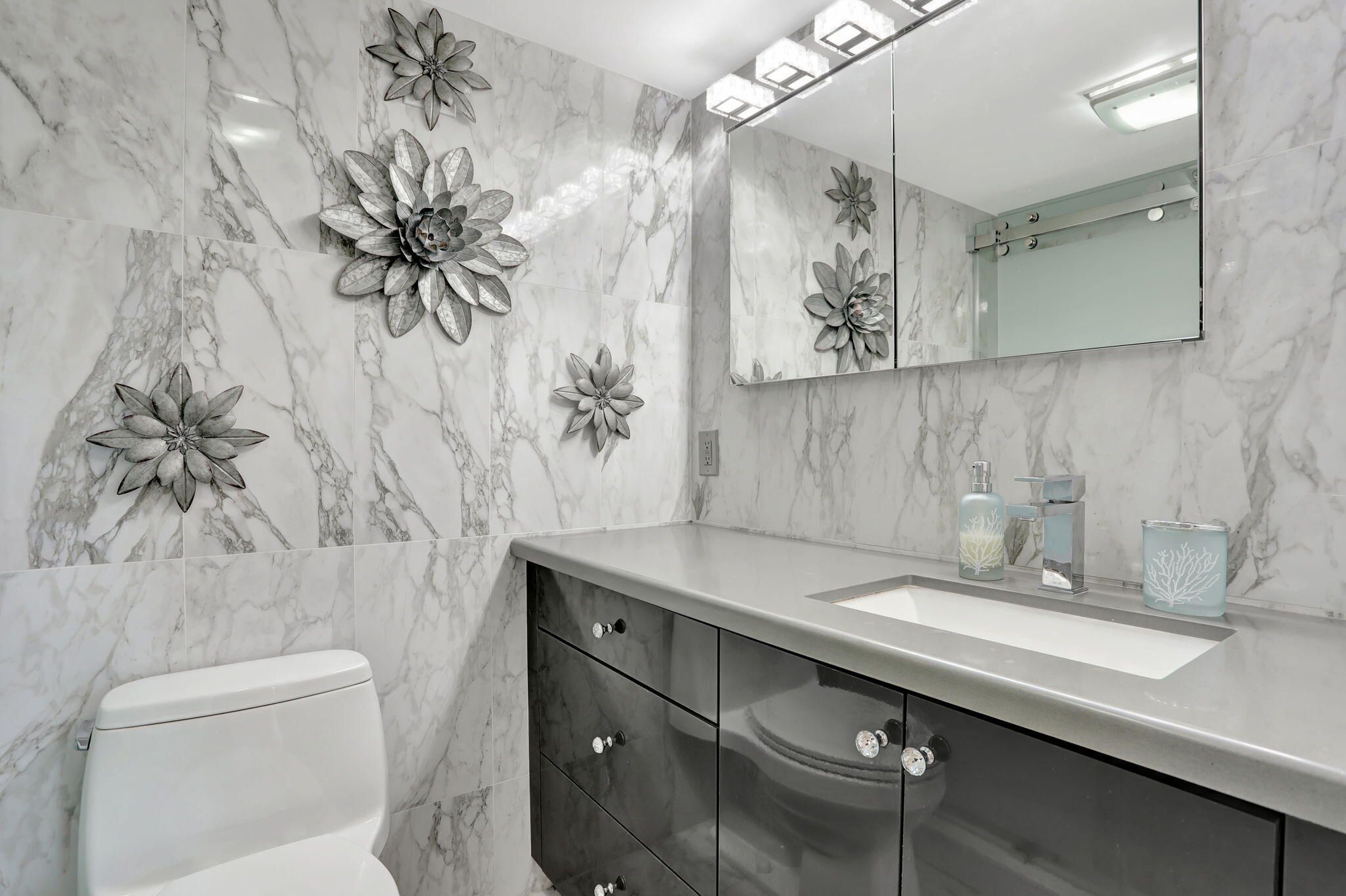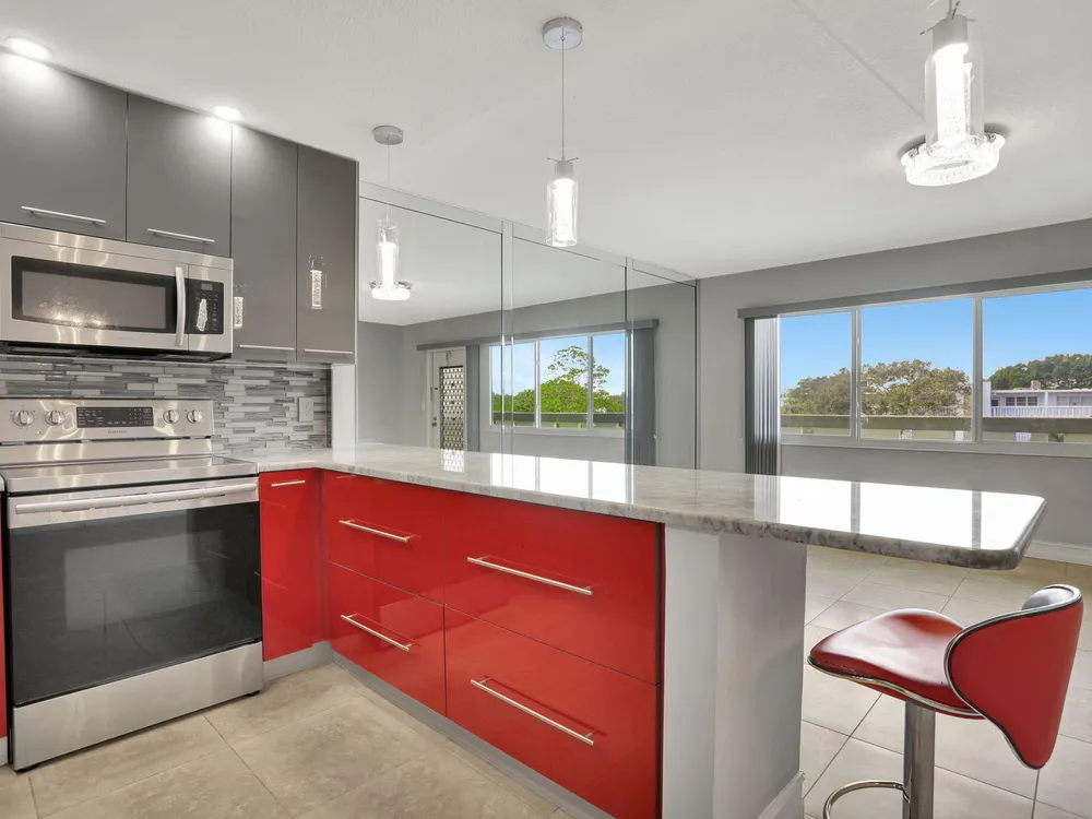 Welcome to CVE - Century Village East, one of the best, gated, 55+ communities in Florida. This unit is a dream come true, 1BR, 1.5 Baths, 700 sq ft + oversized patio unit, fully renovated with high-end finishes, located 5 min walking distance to the clubhouse. Open concept custom kitchen, with gorgeous granite island, backsplash, spotlights in ceiling, decorative lighting for the island, new plumbing and stainless steal appliances. ($50k value). Fully tiled bathrooms/showers with custom vanities. Custom plumbing, furniture and quartz countertops in both bathrooms ($20,000 value). All windows, front and back are Impact ($25k value). Custom vertical blinds in patio ($2,000 value). Mirror closet doors ($1,500 value). No popcorn ceiling, each lighting fixture is a work of art ($5,000 value).