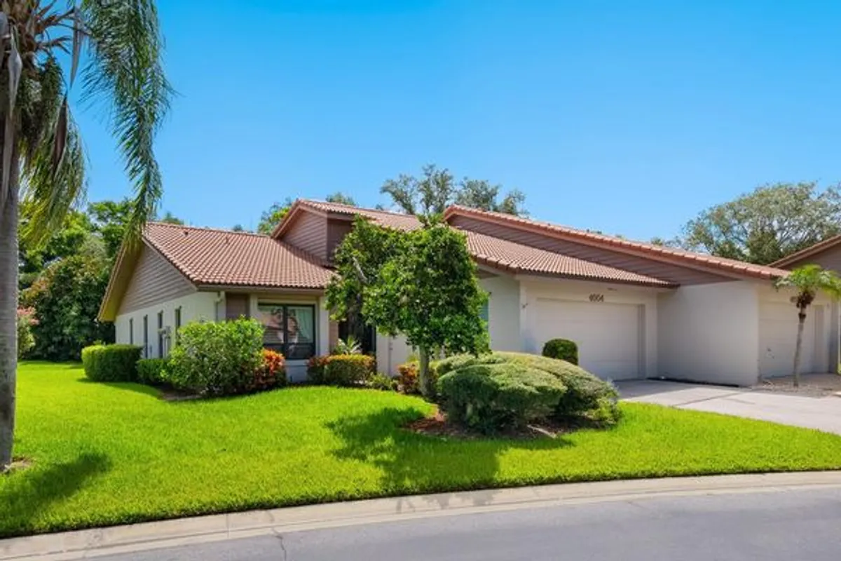 Welcome to your new home in one of Sarasota's most sought-after 55+ communities, offering resort-style amenities including clubhouse, tennis courts, pickleball courts, several serene lakes-all centrally located just minutes from shopping, dining, and a world class beach. Step inside to discover high-quality Cherry Bronze laminate flooring in the living and dining areas, giving the warm look and feel of hardwood. The vaulted ceiling in the rooms, enhanced by skylights, flood the space with natural light, creating a bright and airy atmosphere. Enjoy the expanded living area with a cozy Florida room, which was enclosed and tile floor raised, and impact-rated sliding glass doors installed showcasing peaceful views of a park-like backyard. The updated kitchen features wood cabinetry, granite countertops, stainless steel appliances, and a sunny eat-in nook. A large pass-through with granite ledge overlooking the dining room is ideal for entertaining and serving buffet-style meals. The spacious primary bedroom includes a charming nook, ideal for a quiet reading corner or small office. A large picture window frames the tranquil, private backyard, and a 5'X16' walk-in closet provides generous storage. The primary bath has been tastefully remodeled with new cabinetry, granite counters, and a walk-in shower with pebble type flooring. Additional features of the villa are Plantation shutters throughout(except Primary Bedroom), impact-rated windows and doors for peace of mind, electric hurricane shutter in the Florida Room, epoxy-coated garage floor, New AC in 2021, and hot water heater in 2025. The exterior of the villa was freshly painted in April 2025. This move-in ready villa combines modern updates and style in a maintenance-free community designed for active adults. Please note: this is a pet-free community.