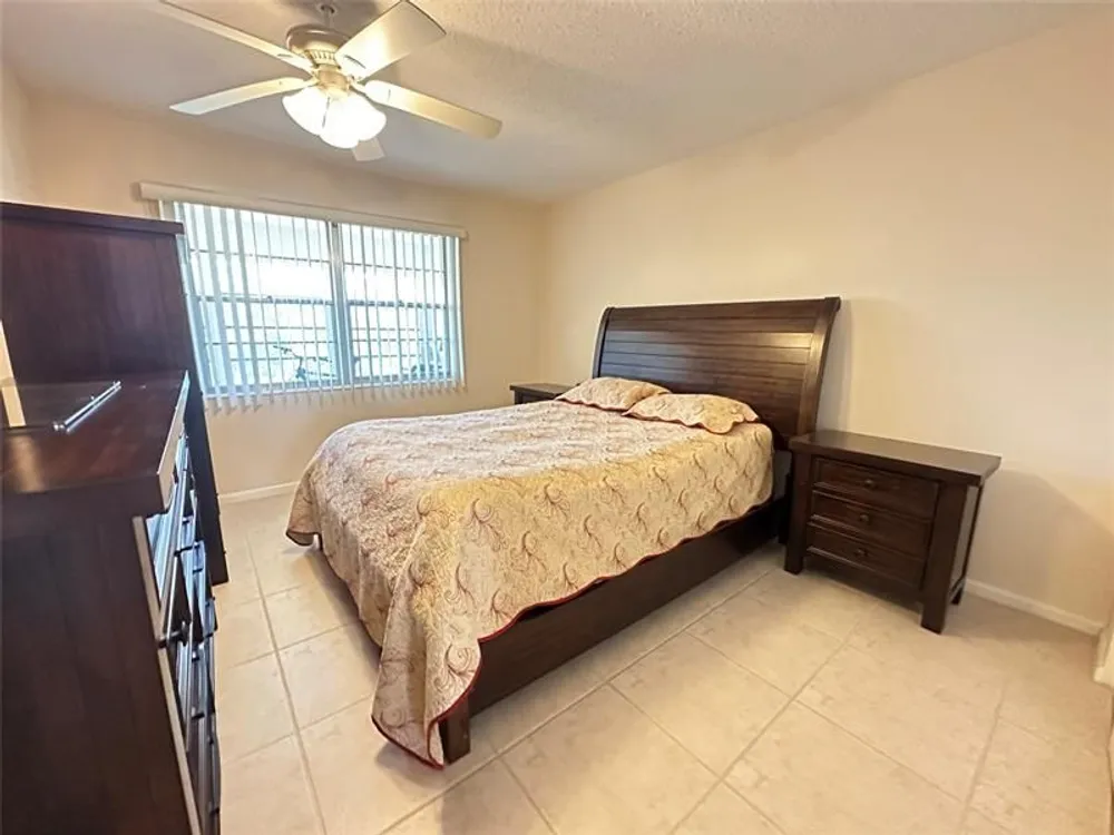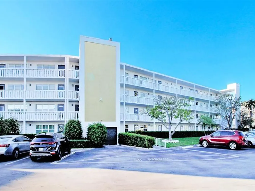 BEAUTIFUL vast garden view from this 4th flr, 2 bedroom, 1.5 bath condo! PRICED TO SELL! Charming OPEN CONCEPT floor plan w/updated kit, tile flrs thru-out, remodeled bathrooms w/shower stall & glass shower doors in primary & ceiling fans in every rm! Lg. Florida room offers you a sheltered space for add't seating, dining or entertaining! QUALITY NEW FURNISHINGS incl a MURPHY BED for overnight guests, new sleeper sofa & flat screen TV in liv rm! Conveniently located close to laundry & elevator & pkg close to elevator. YOU DON'T WANT TO MISS THIS ONE! Century Village is a gated comm w/24 hr sec, free bus service, Clubhouse w/gym, theater, clubs, indoor/outdoor pools, billiards, tennis, pickleball, putting green, classes, movies & more! Close to dining, shopping & BEACH! Assoc. Claims 55+