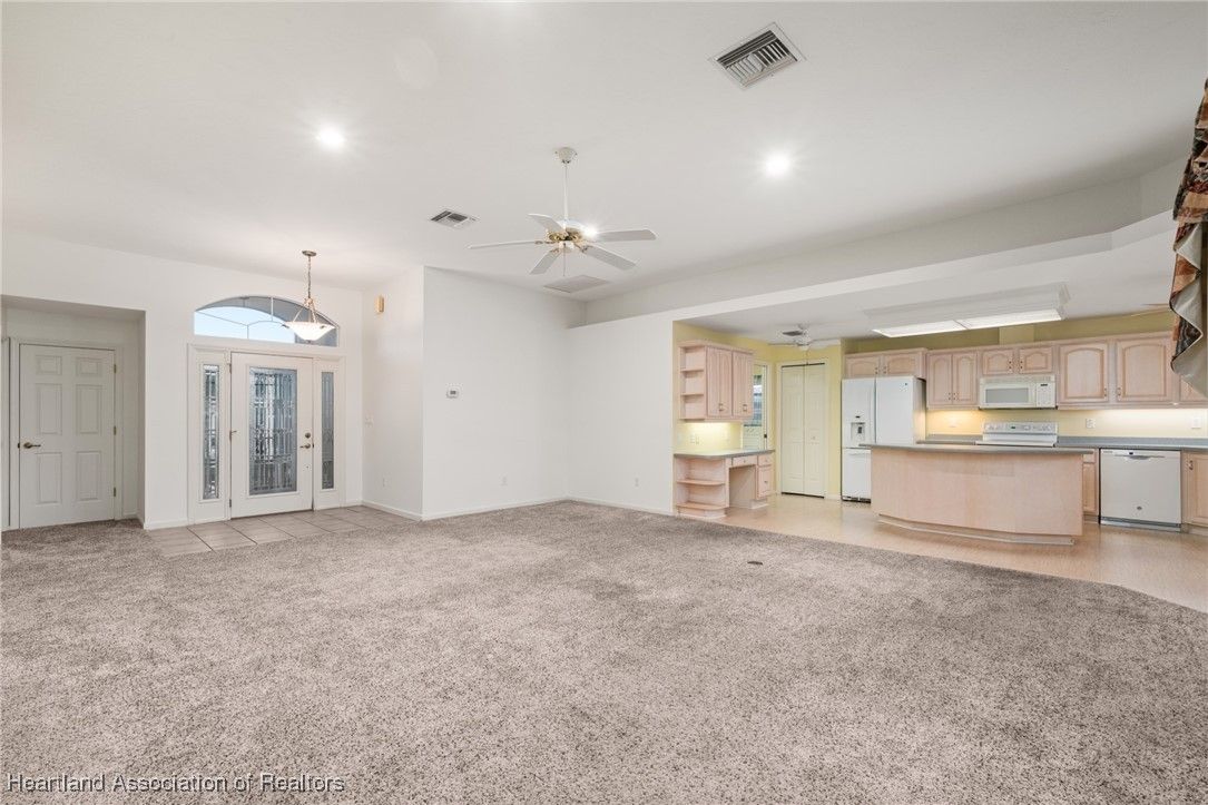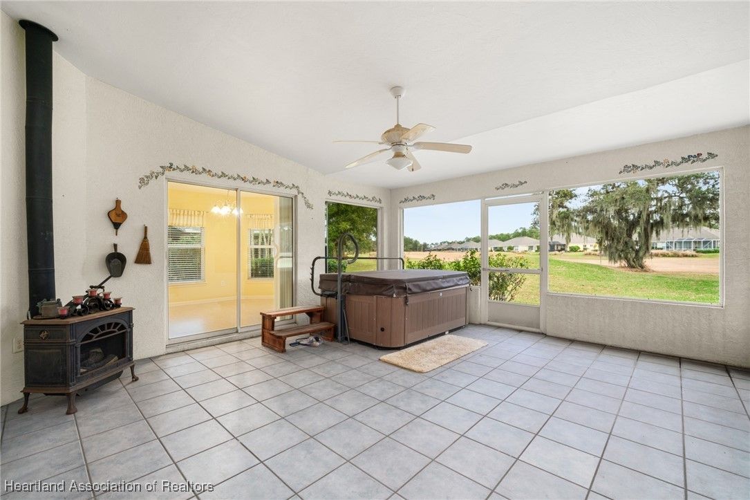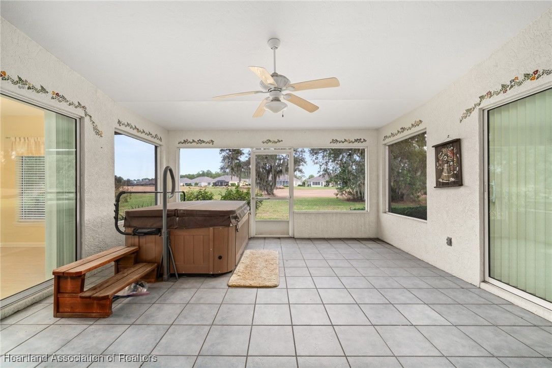 This home is located in the beautiful, fun, and active community of Highlands Ridge! You will be delighted the moment you pull into the paver driveway; the curb appeal is lush, clean, and gorgeous! Upon entering the home, you will appreciate the openness and natural light. The spacious living area boasts 10-foot ceilings and serves as the focal point of the home and leads into the ample kitchen, which features plenty of counter space, an island, loads of cabinets, and a built-in desk area, as well as a breakfast nook that overlooks the golf course viewing the 9th hole. Conveniently located off the kitchen is the expansive indoor laundry room that provides easy access to the garage. The master bedroom is spacious and includes a walk-in closet, while the master bath boasts double vanity sinks and a walk-in shower. The two guest rooms are also very spacious. You will love the large screened-in lanai, which is enhanced by a hot tub for your enjoyment. Come and experience all that this home and community have to offer! This is conveniently located to the heart of Avon Park and the Sebring Circle..Roof is 2018 with a water heater replaced in 2023.. *** SELLER WILL GIVE AN ALLOWANCE FOR FLOORING***
