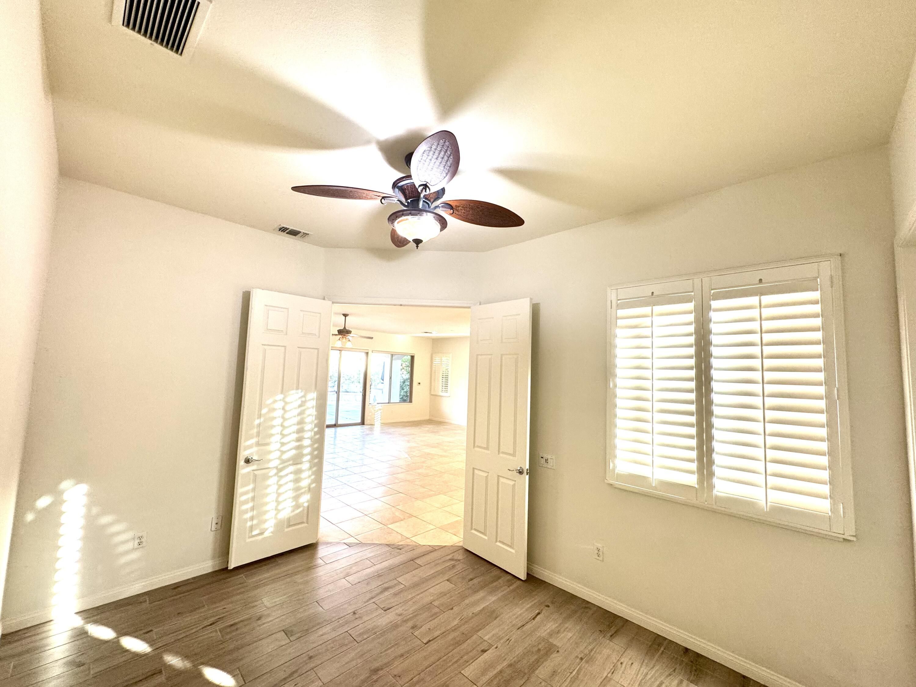 PRICED TO SELL NOW!!! One of the BEST Priced SAN BENITO Model in SCSH. This beautiful,NEWLY PAINTED 2 bedroom, 2 bath, Plus DEN, Plus Separate Office (or can be a small bedroom for Gkids). 2.5 car garage (Golf Cart space), home also includes a custom private pool w/cascading spa and additional large boulder/rock waterfall located on a premium lot in a quiet Cul D Sac. This SAN BENITO offers a wide open floor-plan with a great room facing the kitchen, which includes a breakfast bar, solid granite countertops, many cabinets and a breakfast nook to boot. The wood shutters give it the elegant touch. The flooring throughout is an 18x18 tile floor and the rooms have NEW CARPET. The spacious Master bedroom has a view to the pool area and an exit to the stucco covered patio. The Master bath includes a double vanity, bathtub and separate shower and a large walk-in closet. SCSH is the best kept secret in the Coachella Valley for the amount of amenities you get w/such a low HOA. SCSH residence get to enjoy a PGA style regulation immaculate golf course with MILLION DOLLAR VIEWS, as well as a PAR-3 course which is rated top 10 in the country and don't forget the 18 hole putting course for you and friends enjoyment. In addition there are two well equipped fitness Centers, including one with an interior walking track. There are several tennis courts and a strong Tennis Club, as well as large Pickle Ball community, Bocce Ball, Billiards, Social Clubs, and so much more. Sun City Shadow Hills has easy freeway access a short drive to the Palm Springs Airport and close to lots of shops and restaurants. For more information on the amenities for the development go to....www.SCSHCA.Com Don't delay Call your preferred REALTOR Now and START PACKING! This home is PRICED TO SELL NOW!!!