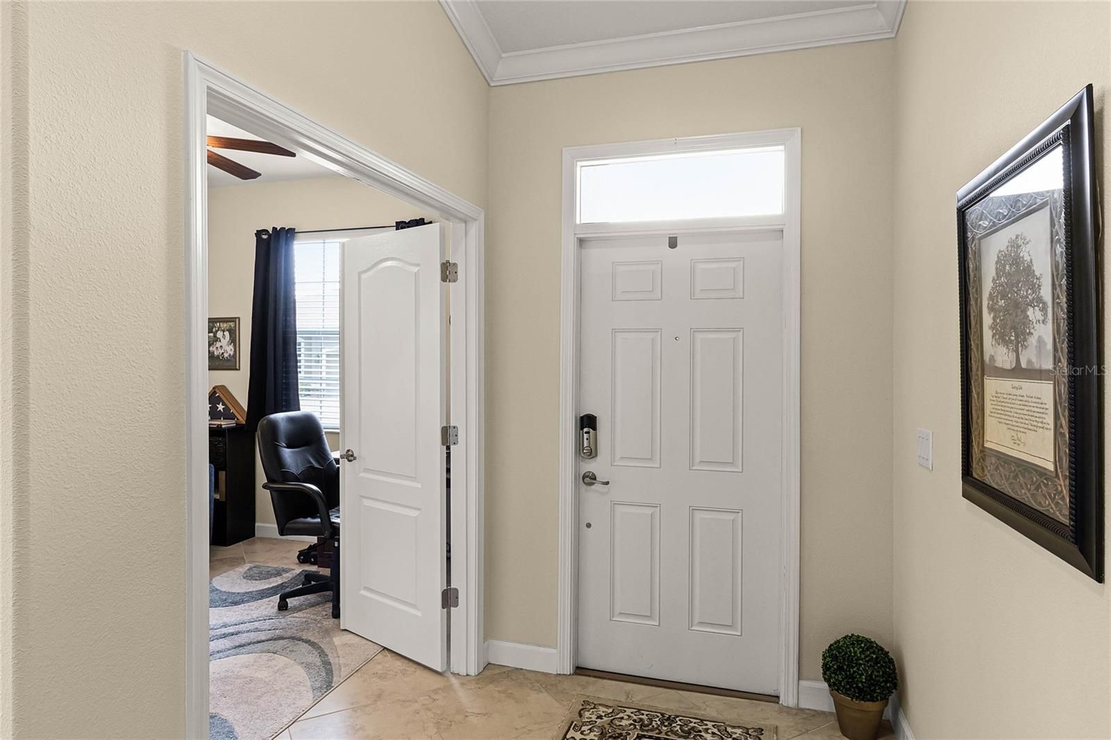 - Ceiling Fan(s), Crown Molding, Eat-in Kitchen, High Ceilings, In-Wall Pest Control, Open Floorplan, Main Level Primary, Smart Home, Solid-Wood Cabinets, Split Bedrooms, Stone Counters, Tray Ceiling(s), Walk-In Closet(s)