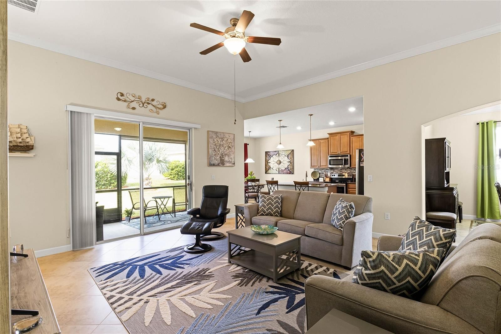 This fabulous Eco-Smart home is nestled in the highly desirable, maintenance-free, gated community of Traditions at Lake Ruby. Upon arrival, you’ll be welcomed by a charming front patio adorned with pavers, setting the stage for this beautifully maintained residence. Inside, the spacious great room boasts diagonally set tile flooring, crown molding, and oversized glass sliding doors that open to a screened-in lanai—perfect for indoor-outdoor living. The eat-in kitchen is a chef’s dream, featuring pecan-stained cabinetry with pull-out shelves, brushed nickel hardware, and elegant crown molding trim. A quartz-adorned center island with pendant lighting, a walk-in pantry, and a stainless steel appliance package ensure both style and functionality. The primary bedroom suite is a serene retreat, offering tray ceilings and a large walk-in closet. The ensuite bathroom includes a comfort-height dual-sink vanity with a granite countertop and a handicap-accessible tiled shower for ultimate convenience. This well-appointed home also features: Formal dining room & breakfast nook, Laundry room with washer & dryer, Foyer with transom window, Den for additional living space or a 3rd bedroom, In-wall pest system & termite bond with Total Pest Control, Screened lanai with retractable solar blinds, Double-pane Low-E windows for energy efficiency, Keyless smart entry lock, Whole-house surge protector, Gutters & an irrigation system, AC system with UV light sanitizer, Walkway & driveway with decorative pavers, Architectural shingles 2015 with a radiant heat barrier & Greenguard Max house wrap, 2-car garage with new garage door and exterior entrance pad. Conveniently located near shopping, dining, medical facilities, and Legoland, this home offers an easy commute to Orlando and Tampa. The active adult community of Traditions provides resort-style amenities, including a lakefront clubhouse with a heated pool & spa, a dog park, fitness center, aerobic studio, craft room, tennis & bocce ball courts, billiards, computer room, library, ballroom, dock, boat ramp, and a full schedule of community activities. This stunning home is the perfect blend of comfort, convenience, and luxury—schedule your showing today. Motivated sellers, immediate occupancy available.
