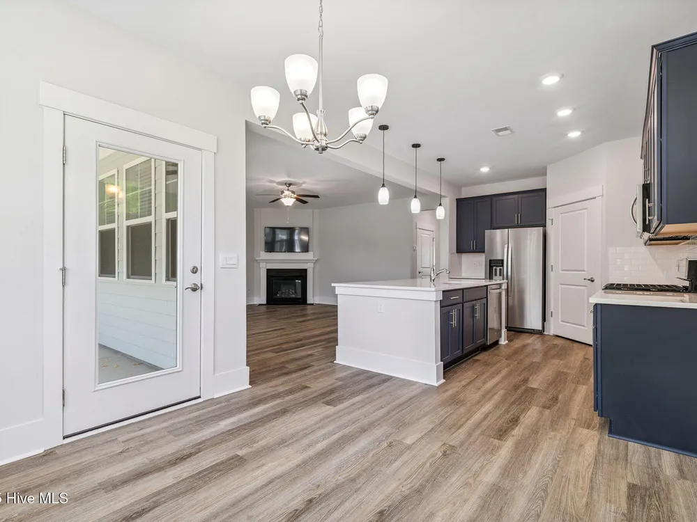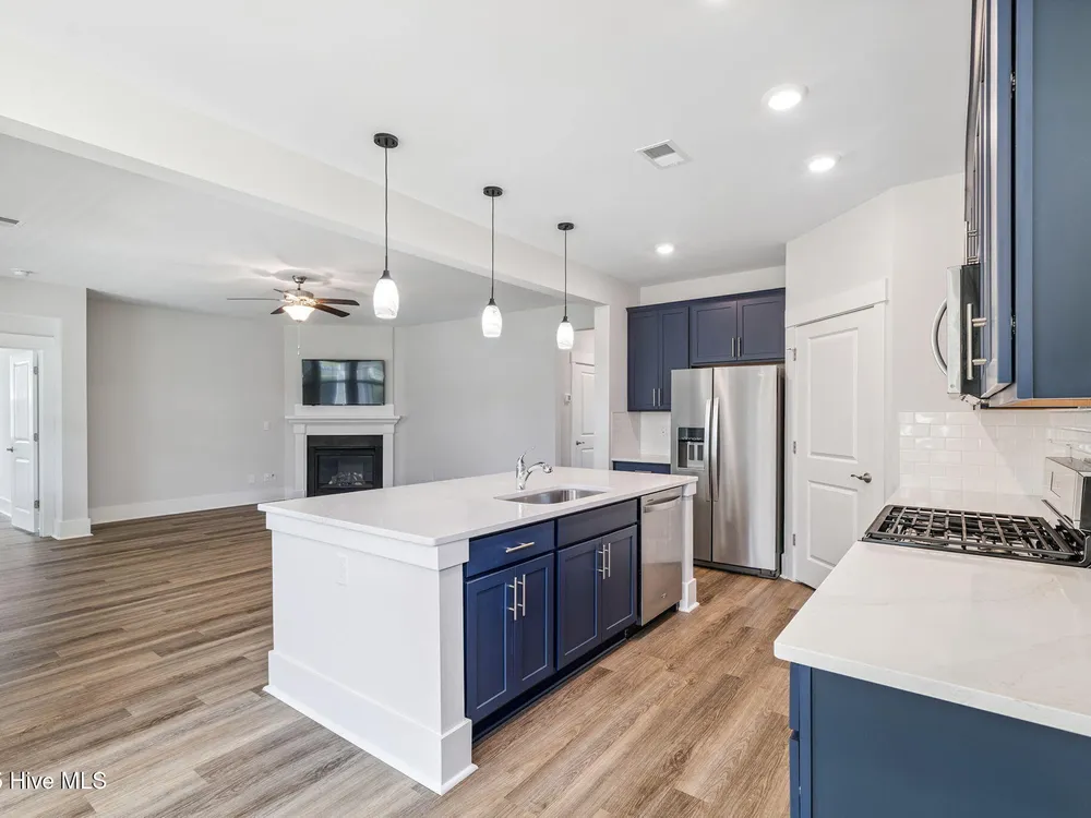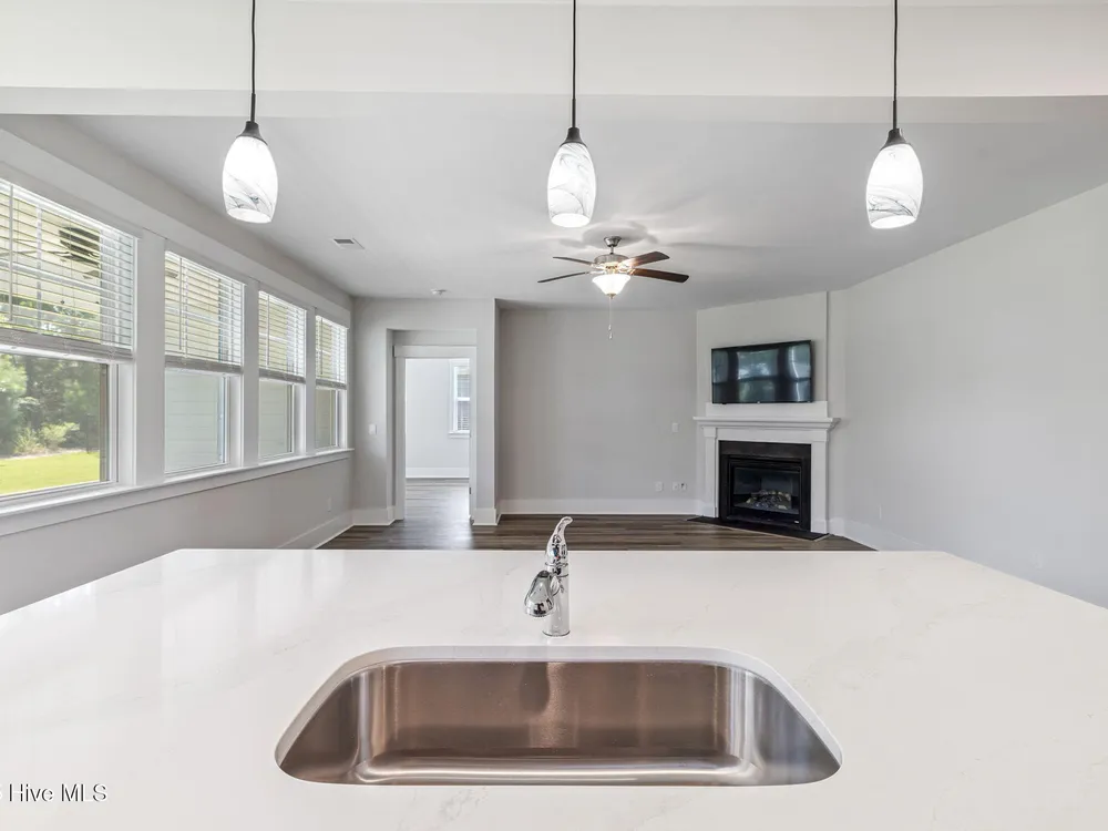 - Ceiling Fan(s), Walk-in Shower, Walk-In Closet(s), Gas Log, Pantry, Kitchen Island