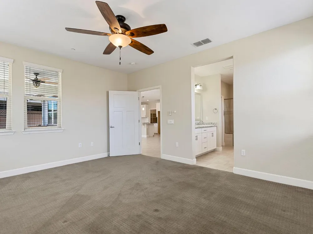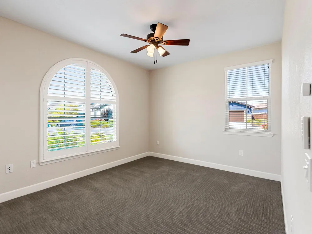 Welcome to Heritage, where resort-style living meets everyday comfort. This desirable Carmel model sits proudly on a corner lot and has been impeccably maintained from top to bottom. Step inside to the spacious entryway with tile floors that flow throughout the high-traffic areas. The light-filled kitchen features a massive island, granite countertops, SS appliances, double ovens, and a large walk-in pantry. Gather in the great room, complete with a fireplace and views of the covered patio. The primary suite offers double sinks, a soaking tub, a walk-in shower, and an expansive closet. Guests will appreciate their own private bedroom and full bath wing. The flexible office/den is ready for your personal touches. Out back, enjoy the low-maintenance yard with a crushed granite pad w/ two dedicated spigots perfect for raised garden/flower beds. Additional highlights: owned solar, tankless water heater, oversized linen closet, 2+ car garage, and garden shed. Residents enjoy exclusive access to The Retreat and The Resort clubhouses, offering endless amenities: indoor pool, fitness center, bocce ball, pickleball courts, social events, engaging classes, and more.