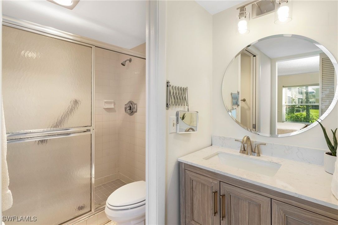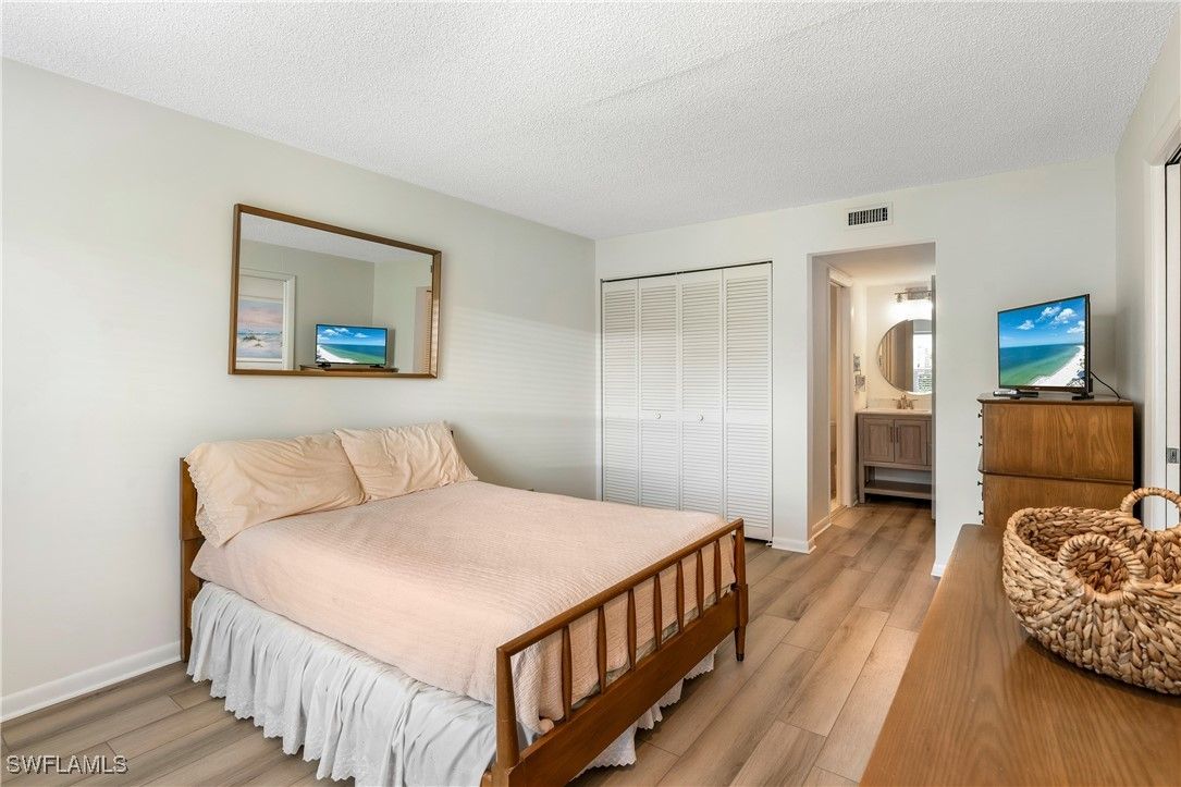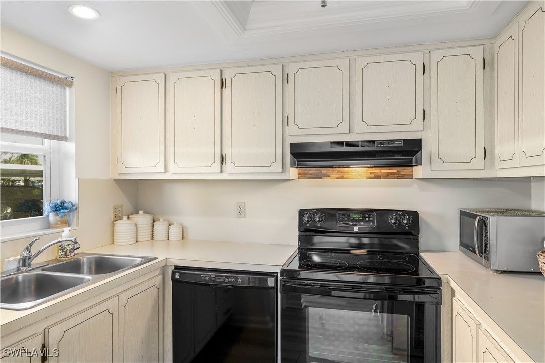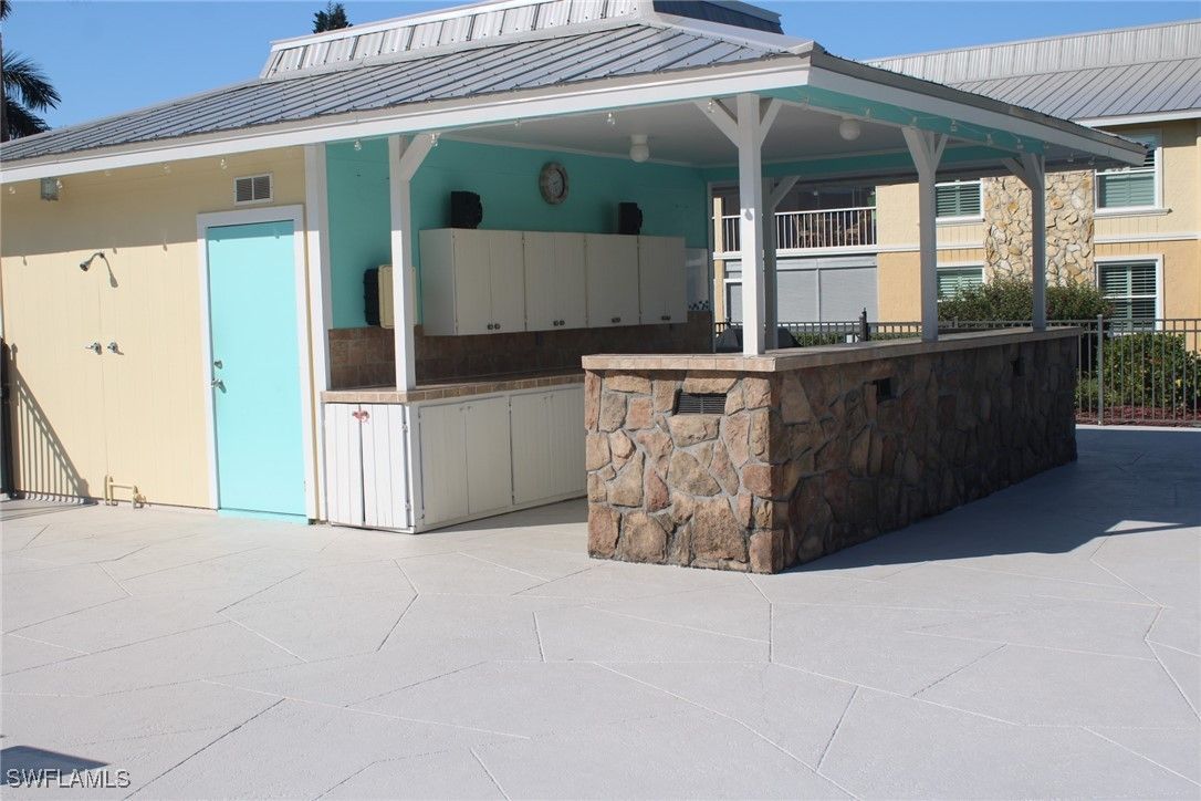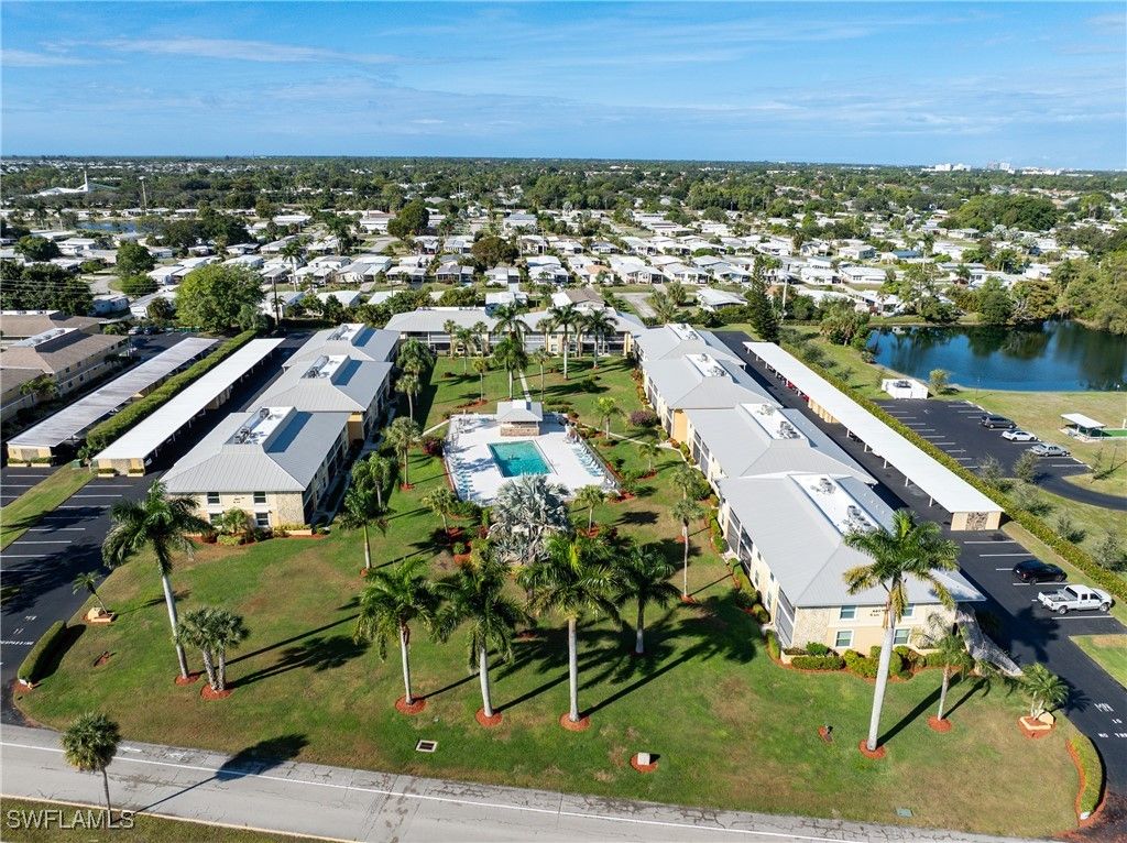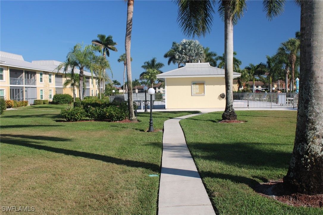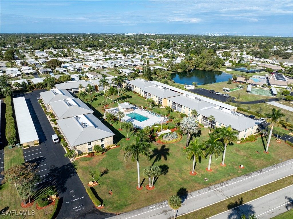 Priced to sell! This light and bright end unit is freshly painted throughout, with brand new LVP floors in all living areas. Bathrooms are both newly updated with modern vanities, mirrors, lighting, and new tile floors. This stylish condo is a much sought after first floor end unit, with covered assigned parking and guest parking steps from the front door. The lanai gives direct access to the pool, grill, and cheeky bar and comes with a power shutter for added shade/ storm/rain protection. Windows are hurricane rated and there is a brand new roof! Enjoy this vibrant community with regular "happy hours" for those who like to socialize, and plenty of places to walk or ride bikes. It is also just minutes to pristene Naples beaches, 5th Ave S, shopping, restaurants, groceries, and so much more. Affordable HOA fees with an extensive list of inclusions, and located in Flood Zone X500. This is a mostly 55+ community, no pets. Professional photos to come after recent updates!