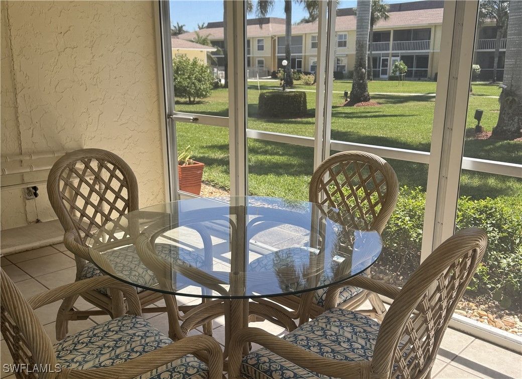 Welcome to Florida living!! Relax in this bright 2 bedroom, 2 bath ground level condo with the perfect sized lanai and serene courtyard view. You will enjoy your own covered parking spot right out your front door and ample guest parking. It is located just minutes from the grocery store, pharmacy, hardware store, and a variety of restaurants. A quick 10 minute drive and you are at the finest beaches in the country! This community is everything you expect from Florida living, including lush landscaping, community pool, and many exciting extras like Bingo nights, happy hour at the chickee bar, and many more community events. This condo offers storm protected windows and a power hurricane shutter on the lanai. The surrounding neighborhood gives ample space for walks and bike rides. Brand new roof just completeted, updated mechanicals, and is ready for all your design finish ideas!