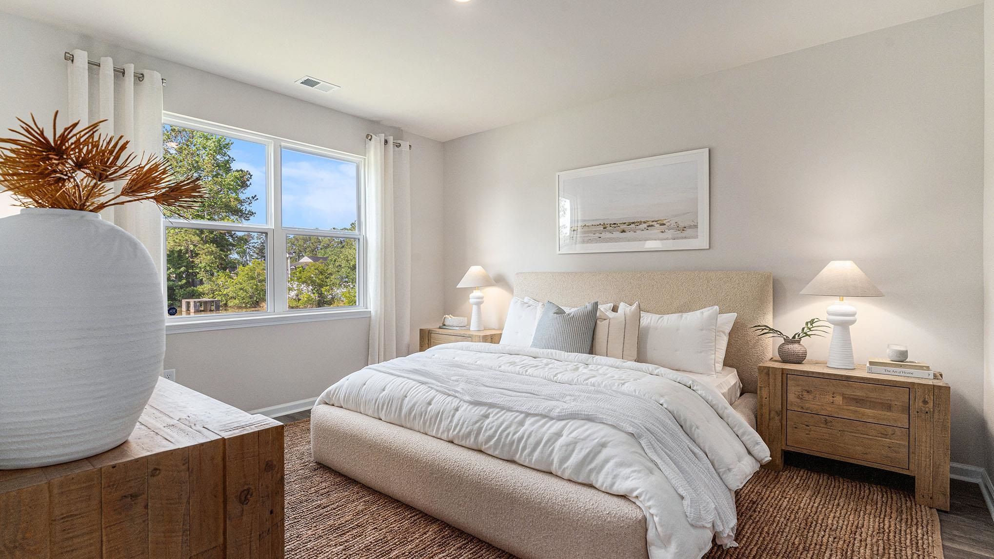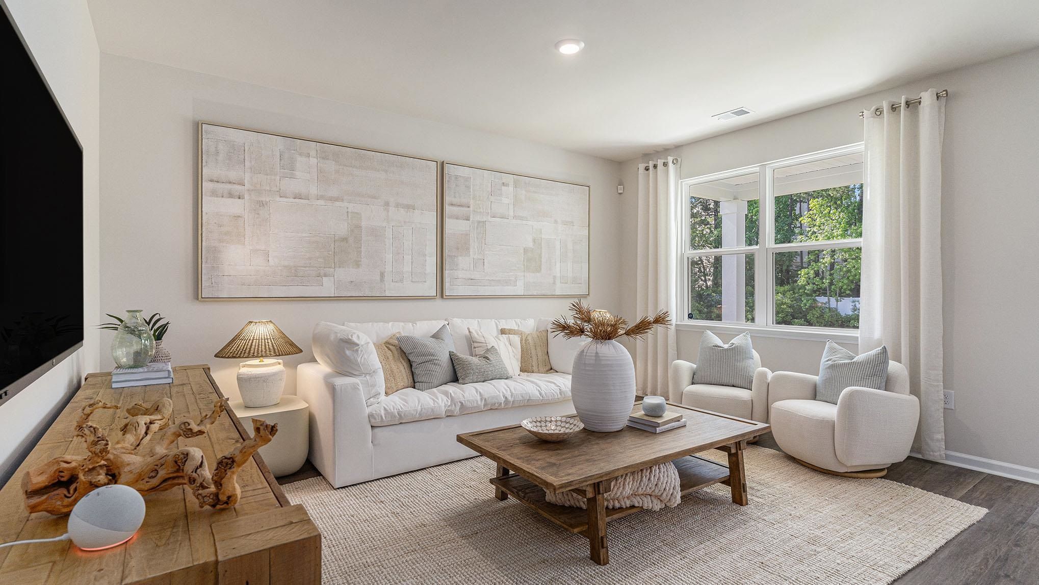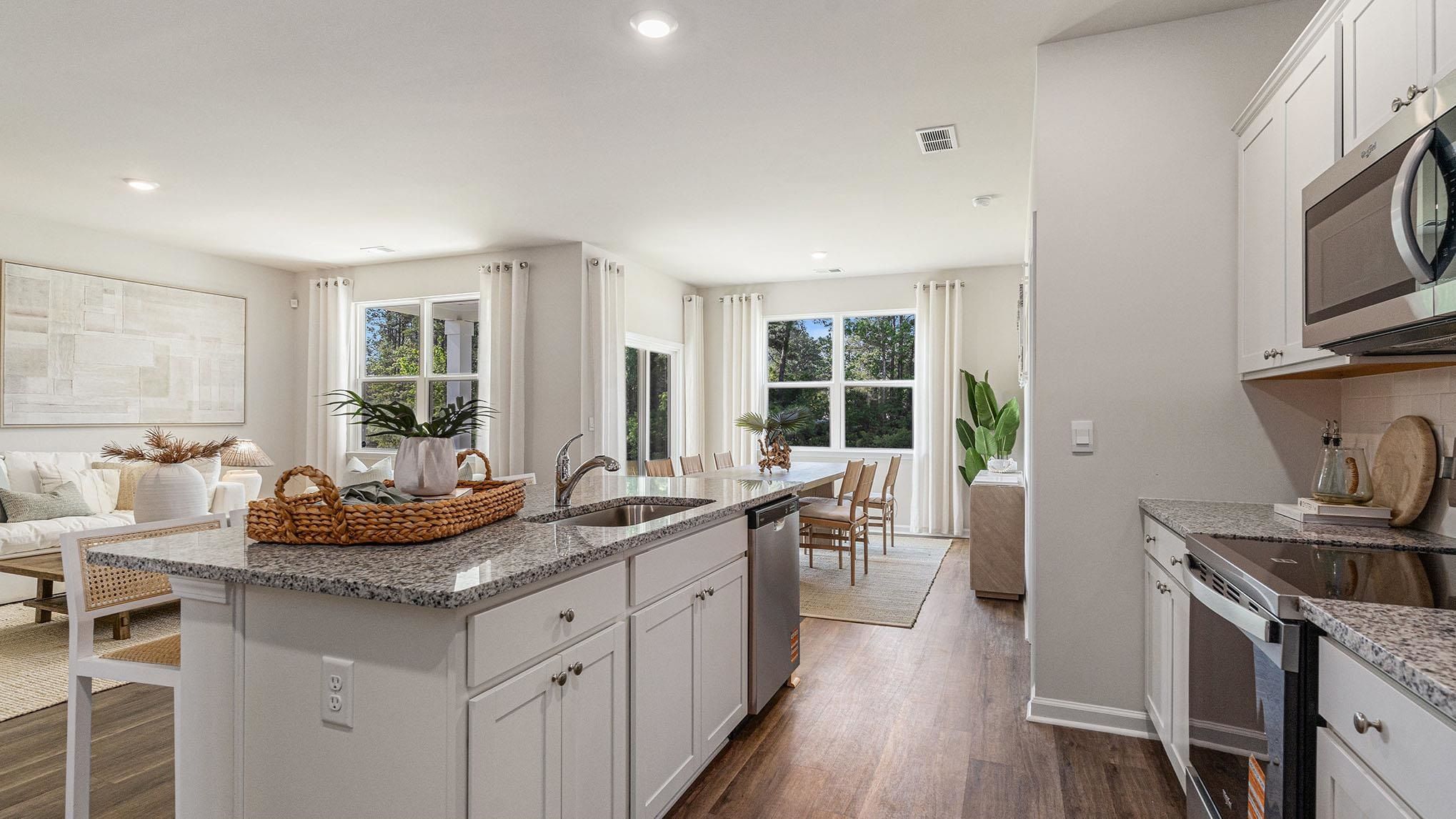 This thoughtfully designed one level home is one of our most popular floor plans! With an open concept living room, dining room and kitchen, this home is bright, spacious, and designed for entertaining guest or comfortably interacting with family. The kitchen features granite countertops, a tile backsplash, 36" cabinets, a spacious pantry, stainless steel appliances including a refrigerator, and island with breakfast bar! Your primary suite awaits off the back of the home with a spacious walk-in closet and master bath with double sinks, a linen closet and 5' shower. Two secondary bedrooms are at the front of the home providing separation from the primary suite. Enjoy the coastal air from the covered back porch as you wind down in the evening! This is America's Smart Home! Each of our homes comes with an industry leading smart home technology package that will allow you to control the thermostat, front door light and lock, and video doorbell from your smartphone. *Photos are of a similar Aria home. Pictures, photographs, colors, features, and sizes are for illustration purposes only and will vary from the homes as built. Home and community information, including pricing, included features, terms, availability and amenities, are subject to change and prior sale at any time without notice or obligation. Square footage dimensions are approximate. Equal housing opportunity builder.