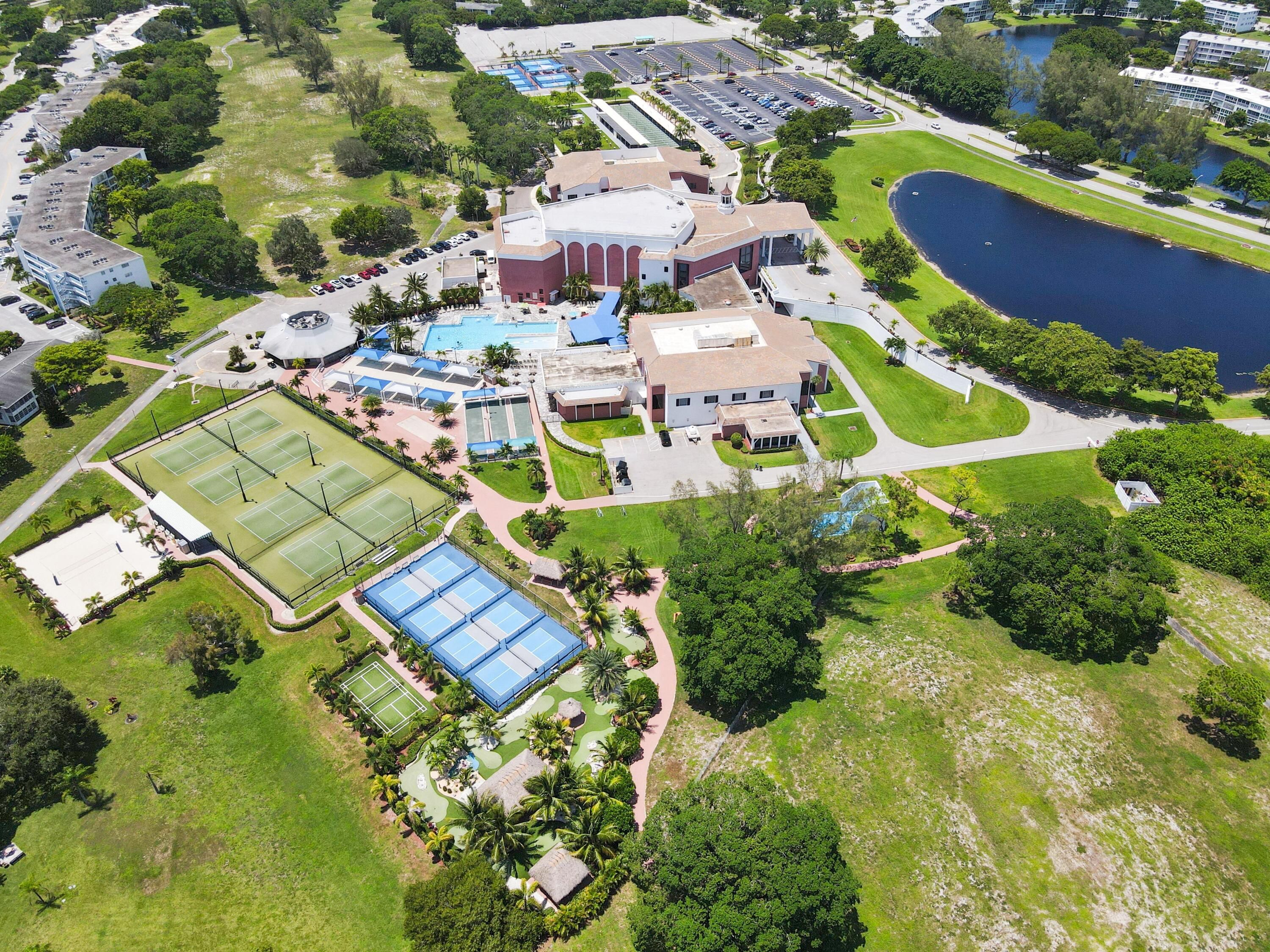 - Basketball Court, Billiard Room, Clubhouse, Laundry, Community Bus, Fitness Center, Pickleball, Pool, Shuffleboard, Sidewalks, Street Lights, Tennis Court(s), Trash Chute