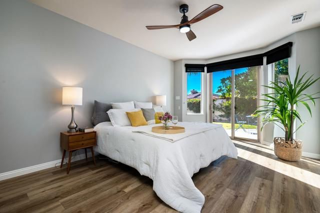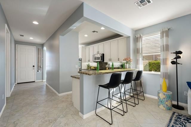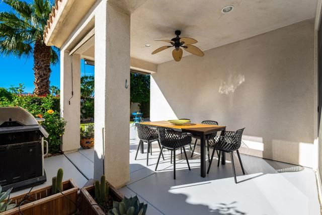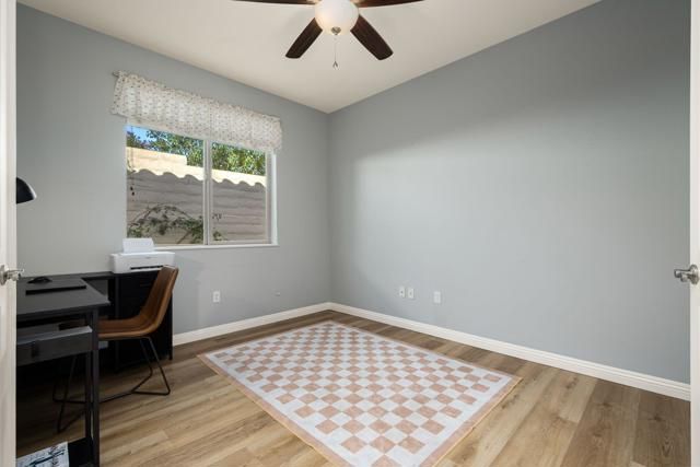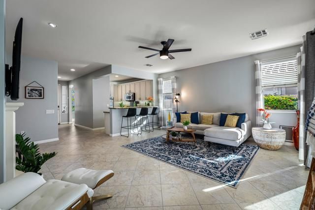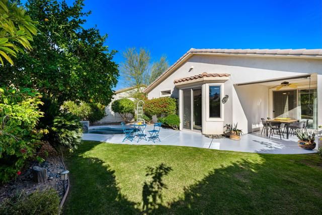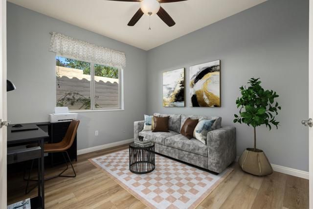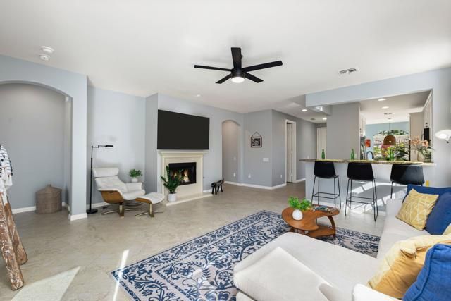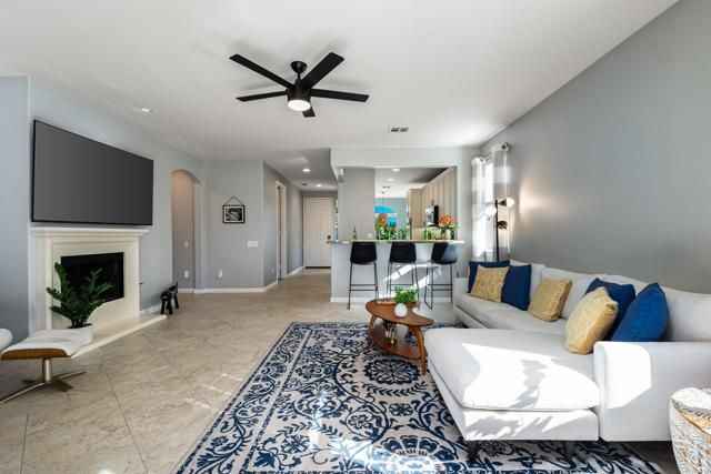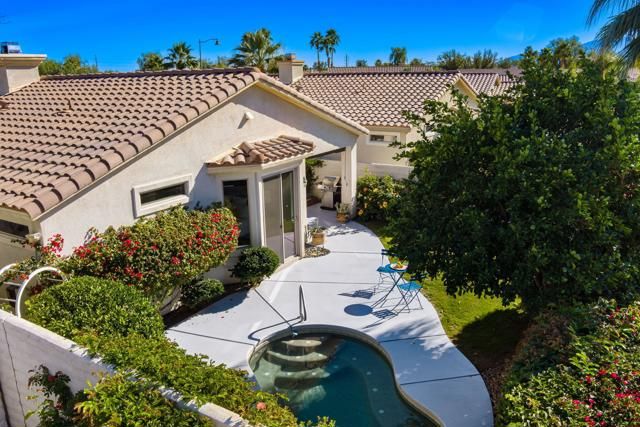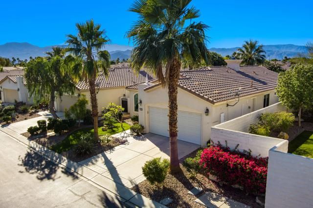 Sun City Shadow Hills - Highly Desirable San Vicente Model. Owner financing available! This beautifully maintained San Vicente model offers 2 bedrooms, 2 bathrooms, plus a versatile den--perfect as a home office or easily converted into a third bedroom. The home is filled with natural light and features an open, airy floor plan in a quiet interior location, ideal for relaxed desert living. Interior Highlights;spacious primary suite privately separated from guest bedroom and bath. Den/office with double-door entry. Charming arched doorways and windows. Bay window in the primary bedroom looks out to the pool and garden. Cozy fireplace in the living area. Ample storage throughout. Garage equipped with a mini-split air conditioner. Exterior Features; phase one quality construction with 6-inch thick walls, provides exceptional insulation from both heat and cold. Classic Spanish tile roof. Timeless white stucco exterior. Private backyard retreat; step into a lush tropical oasis, perfect for entertaining or unwinding under the stars. Refreshing salt water spool with waterfall feature. Covered outdoor seating and grilling area with fans and lighting. Mature landscaping featuring lemon, grapefruit, and orange trees, along with bougainvillea and hibiscus. Resort-Style Living at Sun City Shadow Hills. Enjoy one of the Coachella Valley's premier 55+ communities, offering:60+ clubs and social activities, 3 swimming pools (including an indoor pool), 2 state-of-the-art fitness centers, 2 world-class golf courses, outdoor concerts, comedy nights, and diverse fitness classes, library, expansive billiards/pool room, tennis courts and 12 pickleball courts!Low HOA monthly fee of $398.00 includes social membership, WIFI, guard gate and garbage. Imperial Irrigation District equals lower electric cost! Desert Living at Its Best! You will love this house!