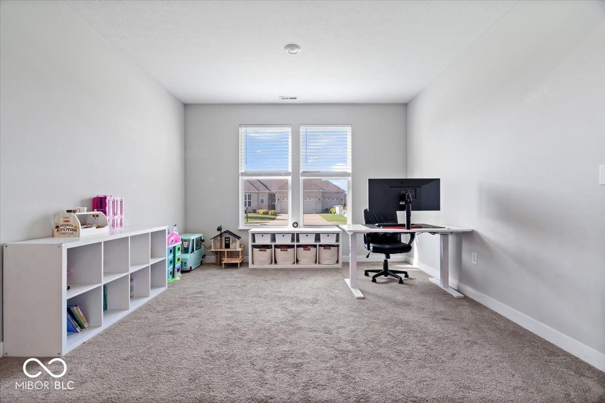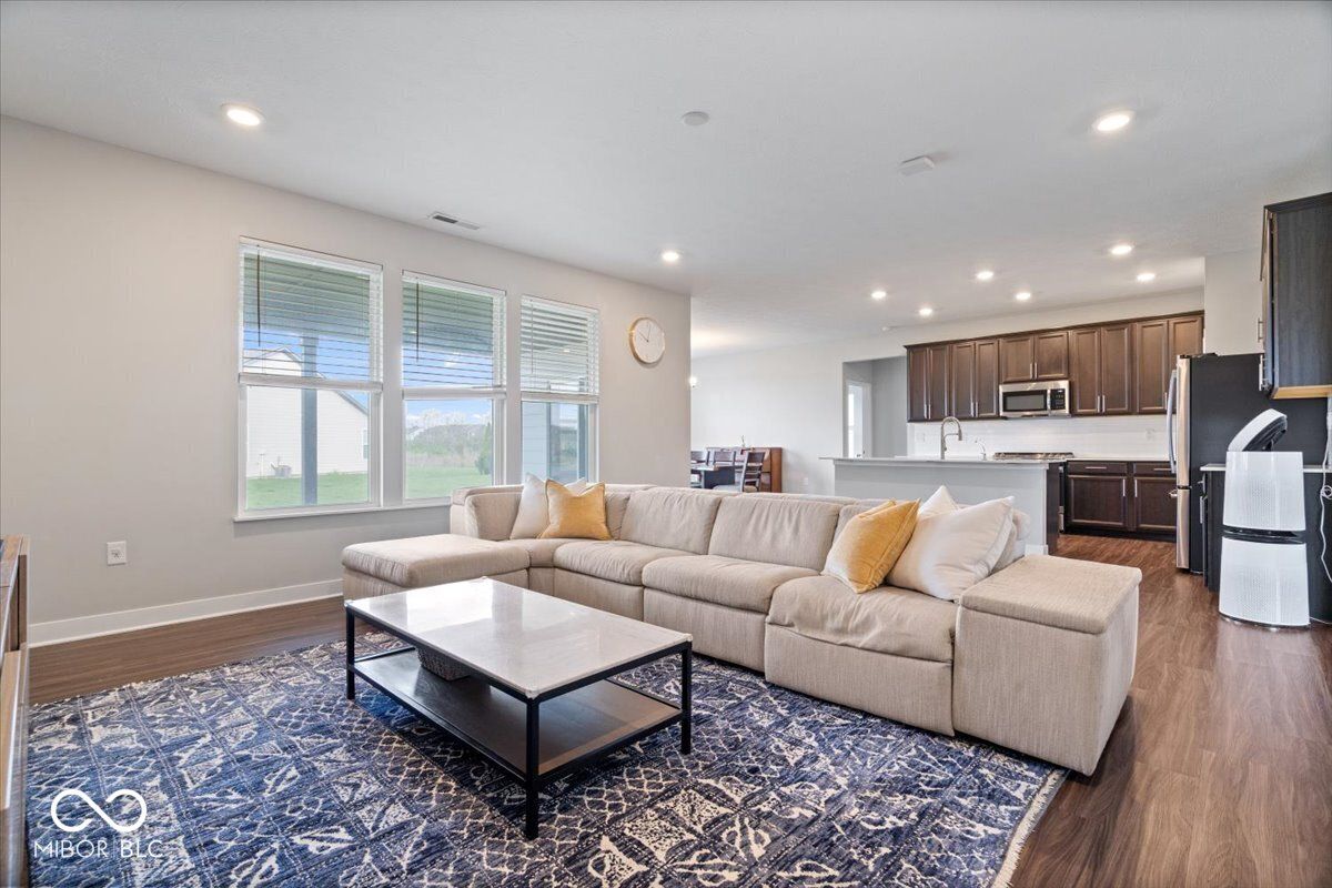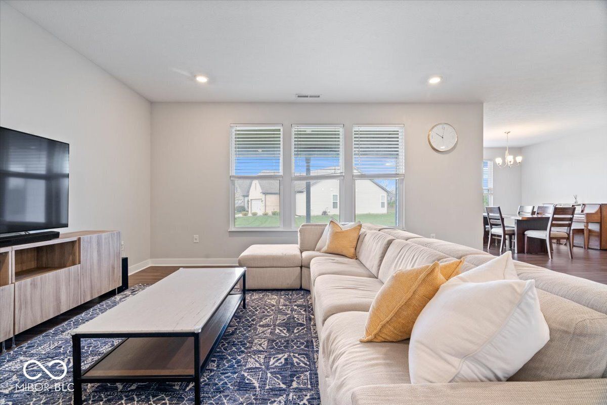 Welcome home to this beautifully maintained single-level gem in the heart of Bargersville! Featuring 3 bedrooms, 3 full bathrooms, and a spacious 3-car garage, all nestled in a sought-after community! The kitchen features a large center island, quartz countertops, stainless steel appliances (gas range), and an inviting eat-in dining area. It flows effortlessly into the living space and overlooks the covered back patio and backyard, perfect for relaxing evenings or hosting guests. A versatile flex space adds even more functionality, whether you need a home office, playroom, or additional living area. The spacious primary suite feels like a retreat with tray ceilings, a large double vanity, and a generously sized walk-in closet. With a 3-car garage, meticulous upkeep, and a prime location just a short walk to downtown Bargersville and Kephart Park, this home truly checks all the boxes!