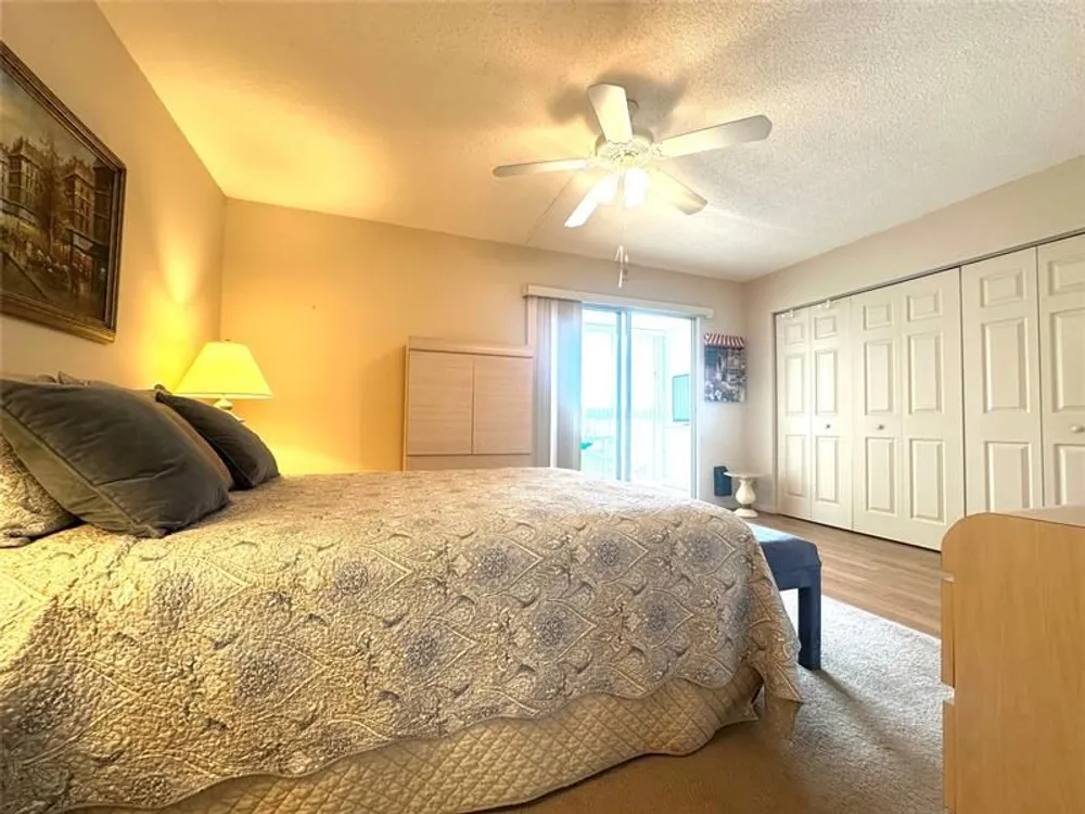 SPECTAULAR LAKE VIEW! FANTASTIC LOCATION... just steps to the pool this 1 bedroom, 1.5 bath condo on the top flr comes fully furnished & equipped incl. a sleeper sofa in liv rm, 2 flat screen TV's & more.. ready for you to start enjoying the fabulous Florida lifestyle! The HURRICANE IMPACT FRONT DOOR & WINDOWS give you added security! Lovely lam flrs in liv areas & carpet in the bedrm. Watch the beautiful sunsets from your encl patio w/sliding glass windows! Enjoy the comm BBQ/Picnic area for entertaining guests! Resort style liv in this 24/7 gated comm, free busses, pools, tennis, pickleball, shuffleboard, 5 Star World Class Clubhouse w/fitness center, sauna, billiards, movies, theater, classes, clubs, cafe, indr/outdr pools & more! Min to beach, shopping & restaurants. Assoc. Claims 55+