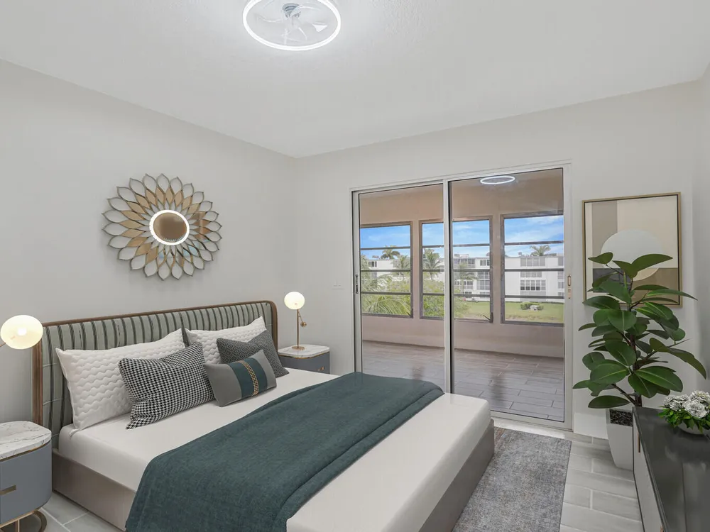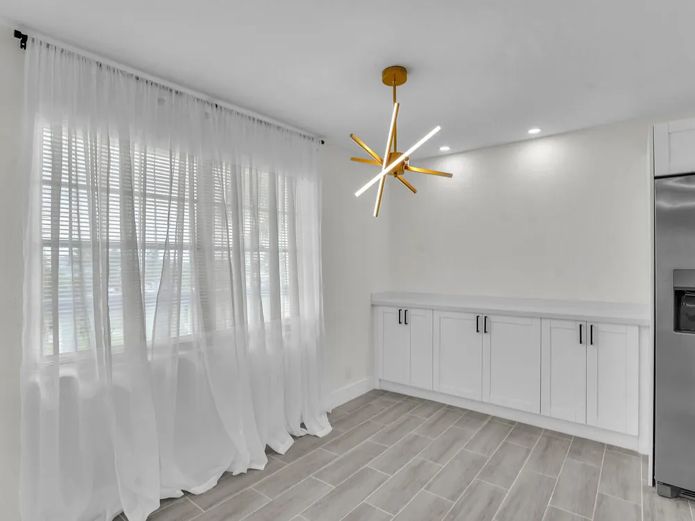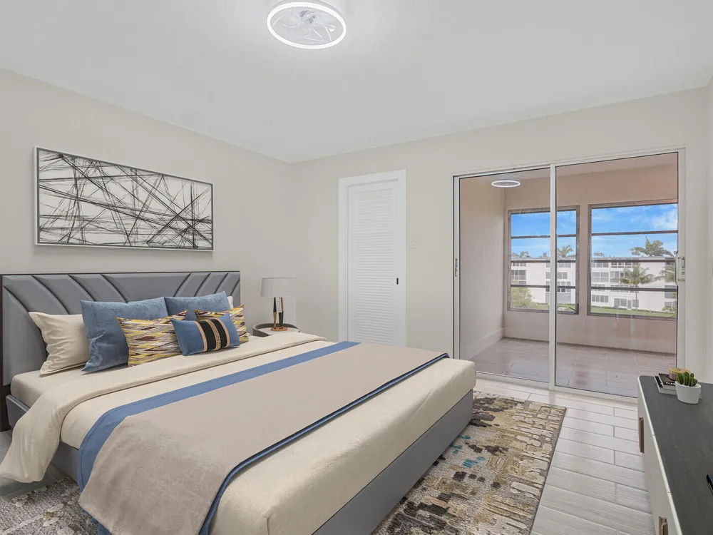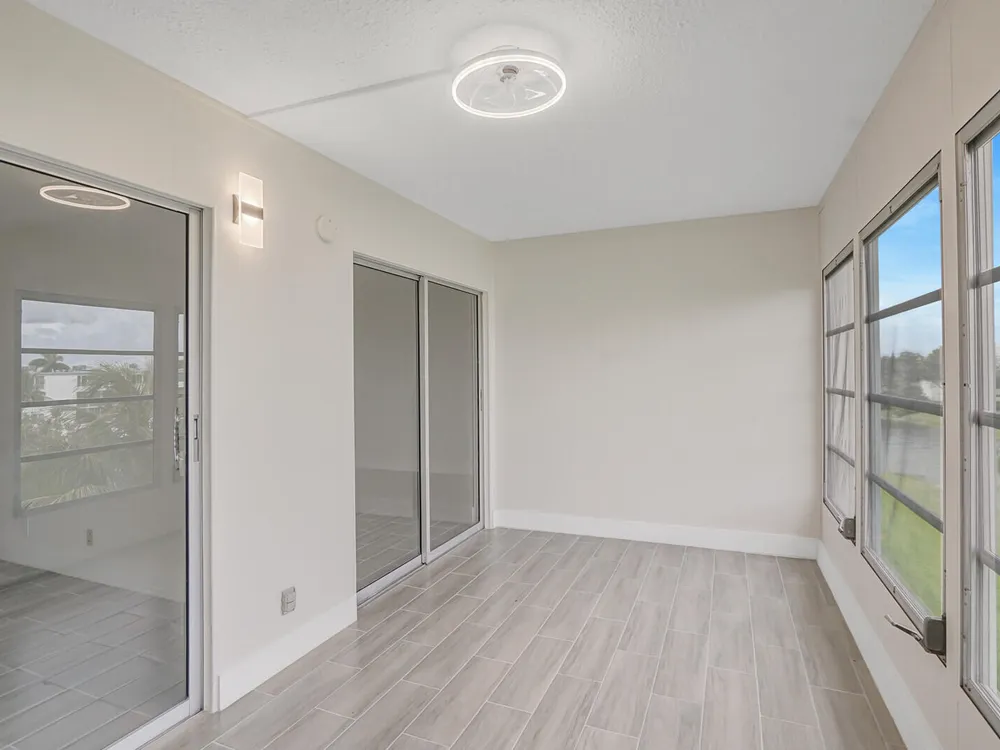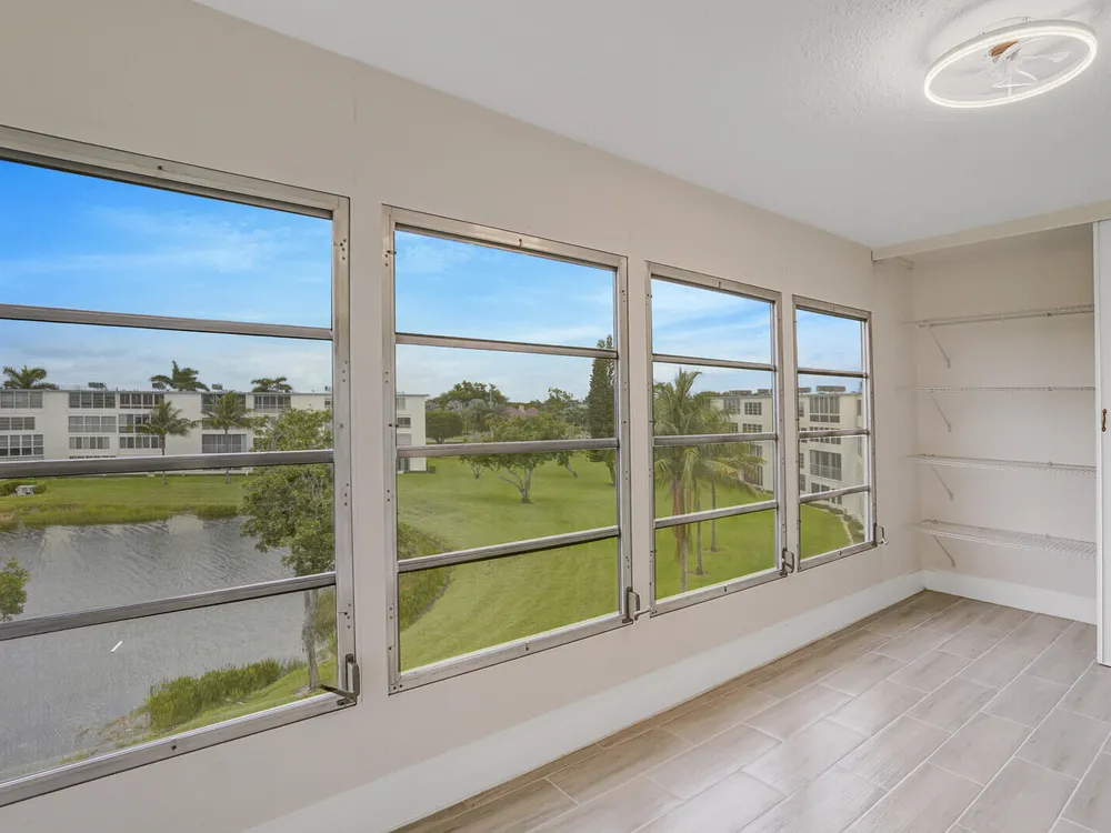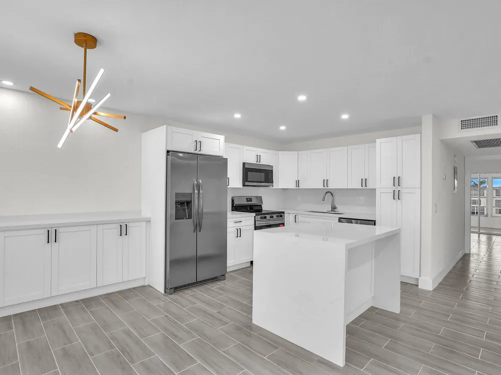 Welcome to this stunningly renovated 2BR/2BA top-floor condo in the desirable Yarmouth section of Century Village Boca Raton. From the moment you enter, you'll be captivated by the light wood-look tile flooring that flows seamlessly throughout the home, creating a bright and modern aesthetic. The chef's kitchen is a showstopper, boasting never-used stainless-steel appliances, double sinks, a double dishwasher, and gleaming Carrara quartz countertops. A large center island offers ample workspace, ideal for preparing meals or entertaining guests. A newly installed electric panel adds peace of mind and efficiency to this already updated home. The spacious living and dining area opens to a lanai with spectacular water views, creating a tranquil backdrop for daily living. The guest bedroom