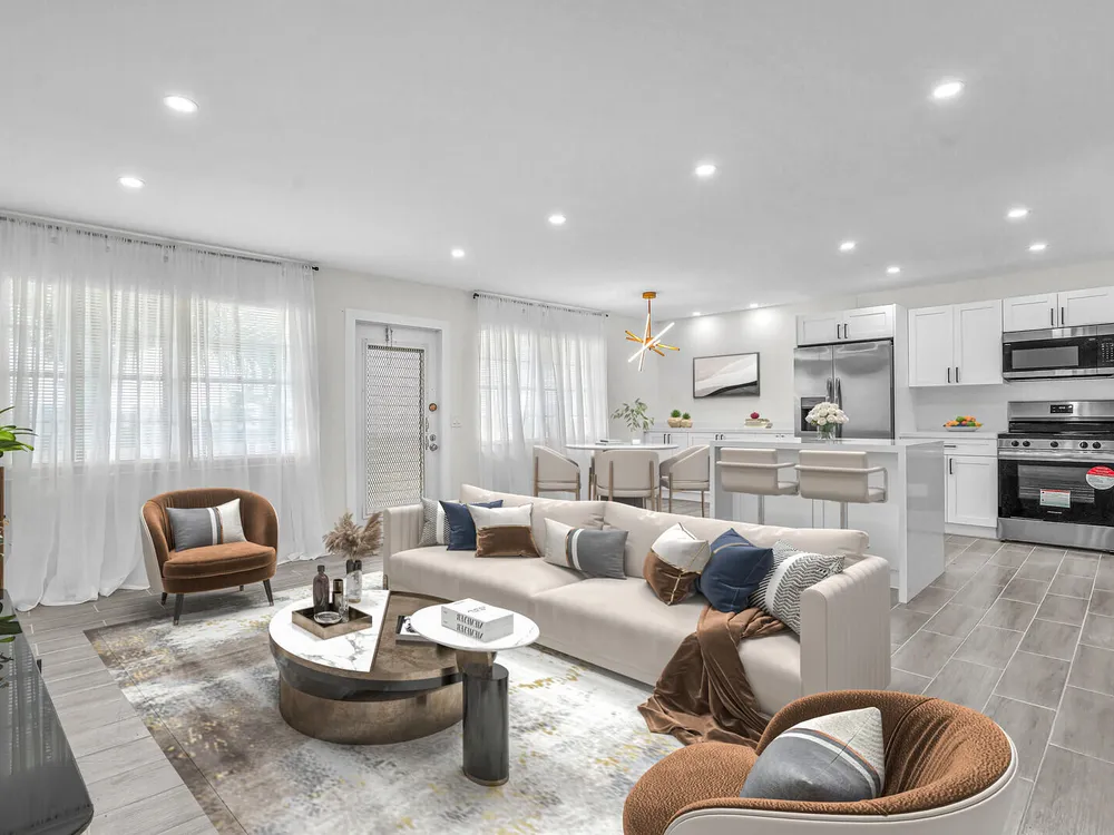 - Kitchen Island, Florida Room, Storage, Living/Dining Room, Kitchen/Dining Combo, Blinds, Tub Shower