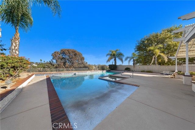 YOUR OWN PERSONAL RESORT with a large PRIVATE POOL, SPA & MAGNIFICENT VIEW OVER THE GOLF COURSE to the MOUNTAINS. This beautiful single-story home on a LARGE PREMIUM LOT is ideal for family gatherings with a SPACIOUS COVERED PATIO, ramped easy-entry pool + a spa with directional jets for relaxing. This lovely home sparkles with FRESH INTERIOR PAINT and laminate & tile flooring. The living area is light & airy with vaulted ceilings & lots of natural light. Kitchen has a double oven & stainless-steel cooktop, dishwasher & refrigerator and there is a casual dining nook. The primary retreat offers plenty of space for your bedroom plus a sitting area. Primary bath is UPGRADED with easy-care MARBLE COMPOSITE SHOWER, RIMLESS GLASS DOORS, soaking tub, dual sinks and a large walk-in closet with custom built-ins by Closet World. Bedroom 2 could be a SECOND PRIMARY BEDROOM boasting a walk-in closet with shelving & storage + an in-suite bath. Bedroom 3 is used as an office with a built-in desk, storage and file drawers by Closet World. There is a convenient half bath for guests and an indoor laundry room with a sink and storage. The exterior is so inviting with a private entry courtyard, concrete walkways on both sides & lots of brick-lined planters. You will love the energy efficiency of QUIET COOL FANS in 4 areas with individual controls to cool the home & the attic. Your garage has room for 2 cars + a golf cart or work area with built-in storage, finished floor and attic ladder. This spectacular home is centrally located on beautiful Colony Drive, nestled in The Colony, a vibrant 55+ GATED COMMUNITY. This stunning residence grants access to a RESORT STYLE CLUBHOUSE with an array of amenities for an unparalleled lifestyle. You will love the year-round community pool, 2 spas, lighted pickle ball/paddle tennis & tennis courts. You can enjoy the gym, library, ping pong, billiards, hair/nail salon. There are groups & activities for all interests with an auditorium for shows, dances, banquets, concerts, movies, bingo & parties for all occasions. A privately owned 18-hole golf course is inside the gate. The HOA waters & maintains all front landscaping. Guard gated entry and 24-hour security patrol give you peace of mind. In the safe city of Murrieta, you are close to stores, restaurants, medical, casinos and wineries. Enjoy the friendly neighbors and sense of community for TRUE RESORT STYLE SENIOR LIVING in The Colony.