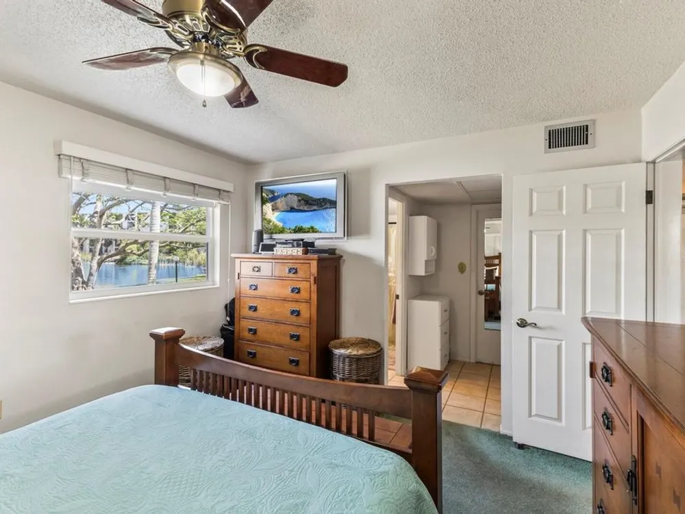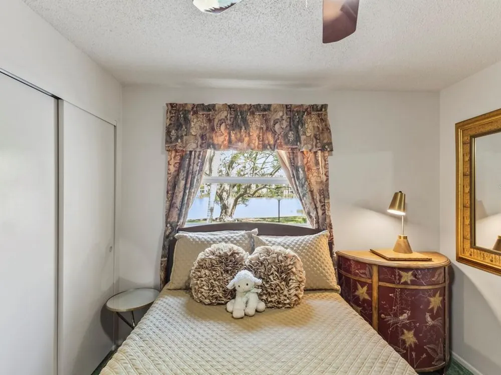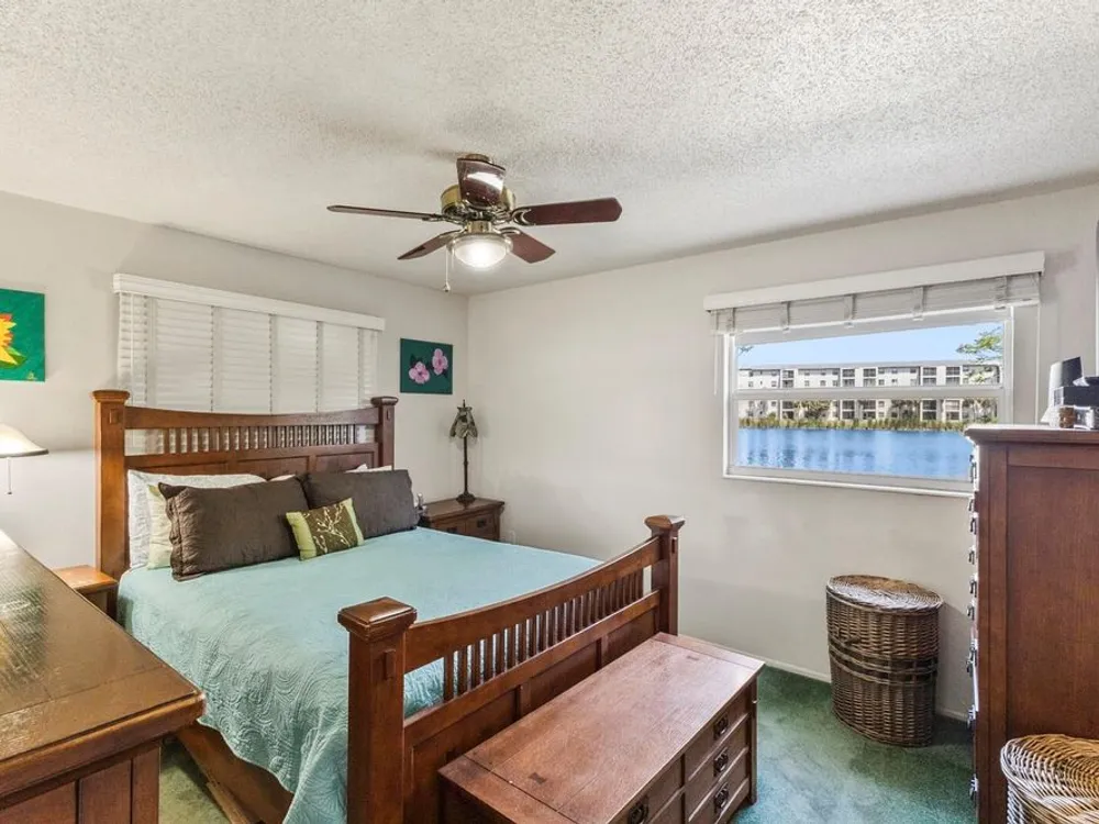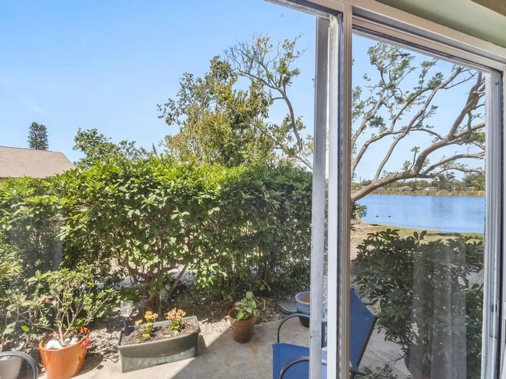 NO HURRICANE DAMAGE TO BUILDING!!!! Welcome to Bayshore on the Lakes!! This beautifully maintained 2-bedroom, 2-bath ground-floor end unit offers peaceful water views and no age restrictions. Step inside to an open-concept layout with a spacious living and dining area—ideal for entertaining. The kitchen features abundant storage, high-quality Kraftmaid wood cabinets and drawers, as well as new countertops. Impact windows throughout (except the rear slider) offers added comfort and protection. The primary bedroom overlooks serene water and greenery, featuring a spacious walk-in closet with ample storage. A bright Florida room provides the perfect space for reading or relaxing, while the rear patio is ideal for grilling and enjoying the lush landscaping. Just a short walk to the community pool, this condo combines convenience, comfort, and scenic charm. Don’t miss this opportunity! SELLERS MOTIVATED!!