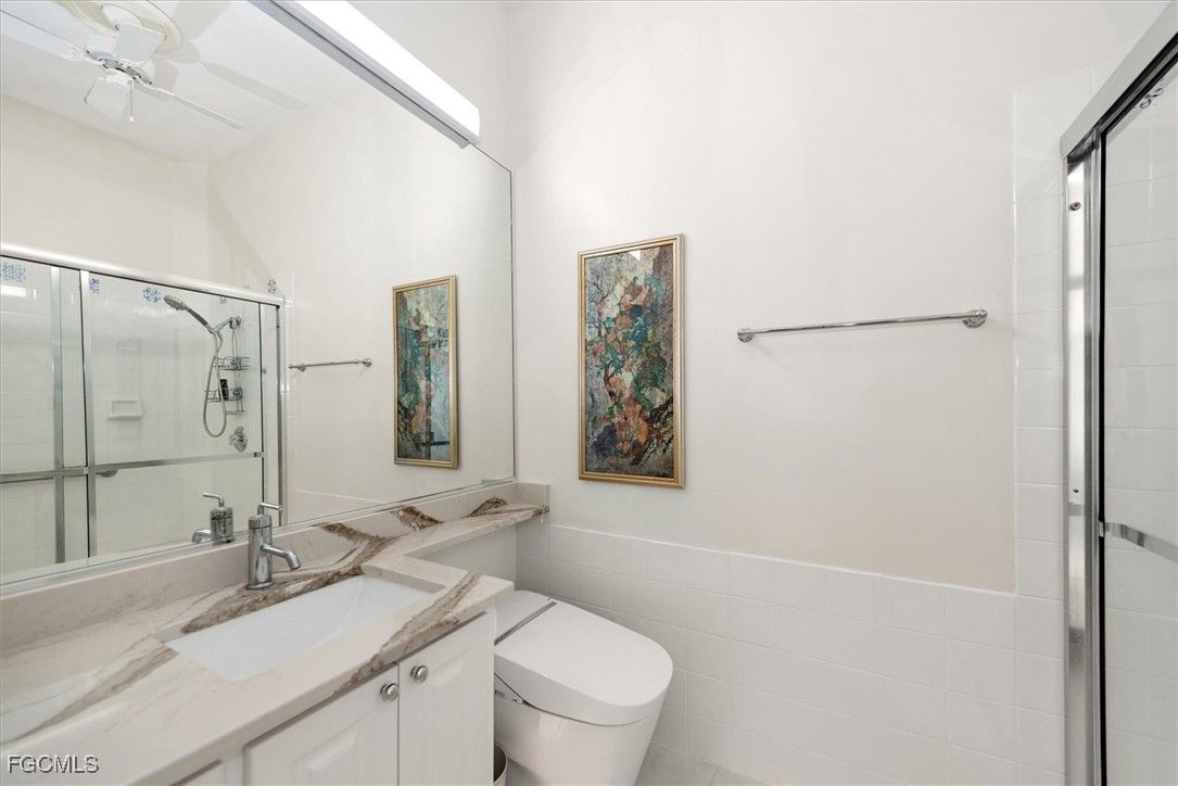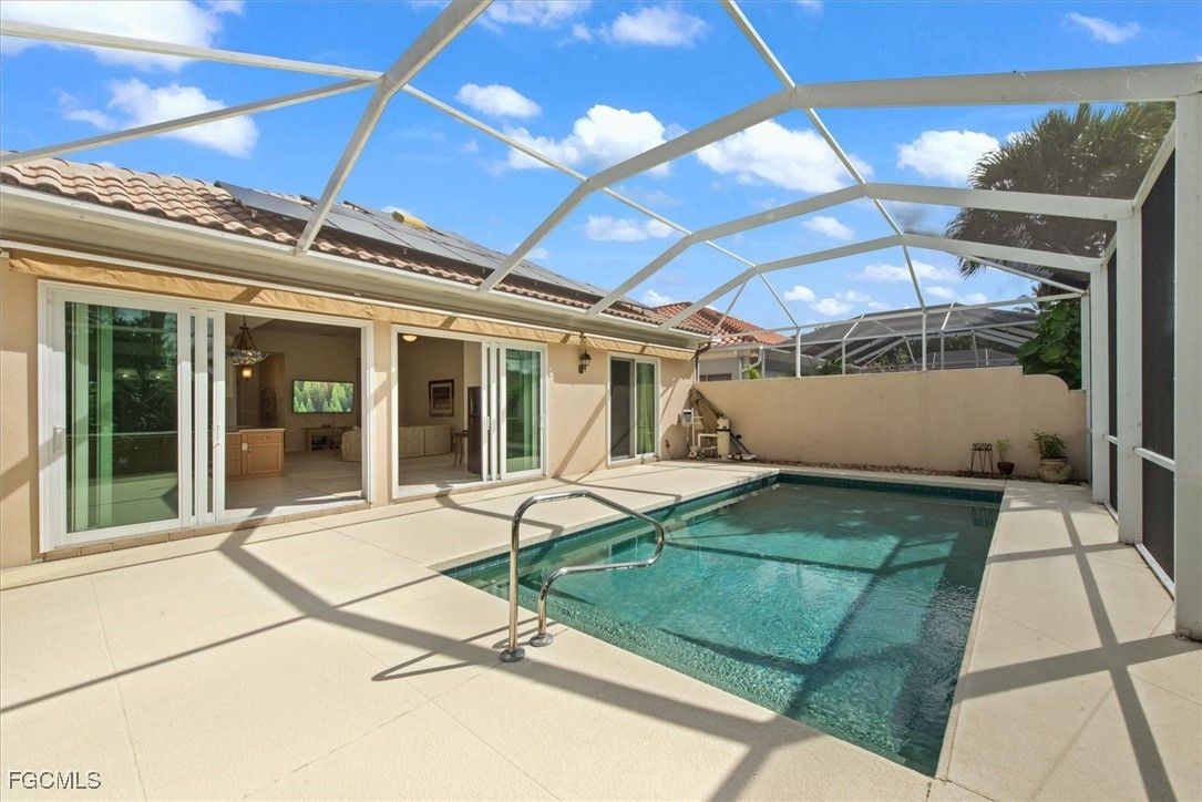 ISLAND WALK is one of the most highly sought after, full amenity communities Naples has to offer. This beautifully upgraded Oakmont model spreads over 2,181 square feet of living space with three bedrooms plus a den, three bathrooms, and an inviting saltwater pool overlooking the lake, where you can sit under the retractable awnings and enjoy your favorite beverage. It sits on the 2nd shortest cul-de-sac in the community to which is less traffic for you. The home features OVER $100,000 in UPGRADES, including a PAID-OFF SOLAR SYSTEM that keeps the electric bill around $25 per month, with some months generating a credit from FPL. When you step inside, you’re greeted by the spacious living room, as your eyes are drawn to the serene lake view. High ceilings and natural light welcomes you home. The quality this home exudes is impressive. The kitchen is designed for those who love to cook, bake, and entertain, showcasing a custom designed oversized baker’s bar, wine cooler, double ovens, stainless steel appliances, slide-outs in the cabinetry, and ample counter space. There’s room for more than one chef in this kitchen. The primary suite features a unique bathroom layout with two separate bathrooms sharing a large walk-through shower, along with an upgraded Toto toilet, a large soaker tub, updated counters & fixtures and a separate vanity for her. The walk-in closet is spacious, but the hall is lined with closet space as well offering plenty of room for his clothes too. The den provides flexibility for an office or hobby room, while the laundry room includes built-in cabinets, a sink, and added storage. The guest quarters have their own wing of the house and include an updated bathroom as well. Additional upgrades include hurricane-rated windows and doors, smart locks on all doors, fleck painted flooring in the two-car garage with a built-in air compressor, a commercial-size water heater, and a full-house water filtration system, retractable awnings over the pool, and so much more. The home is located on the hospital electric grid which provides quick restoration of power during outages. Enjoy the screened saltwater pool with heater and pump replaced in 2020, perfect for relaxing with tranquil water views. 1-YEAR HOME WARRANTY INCLUDED for your peace of mind. Island Walk is a gated community known for its beautifully landscaped surroundings and resort-style amenities, including a Town Center with a restaurant, Casa Cotzelli, gas station, nail salon, hair salon, car wash, post office, fitness center, tennis and pickleball courts, bocce, lap pool, resort pool, and Venetian style scenic walking bridges throughout the neighborhood. Plus planned community activities to choose your level of socialization and activity. This ranks as one of the most desirable places to live in the country! Lawn maintenance, cable, and internet are all included in the low HOA fees, allowing residents to fully enjoy the Naples lifestyle.